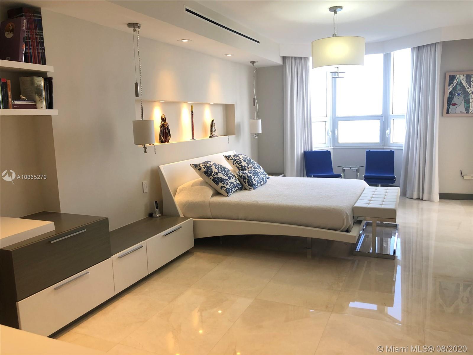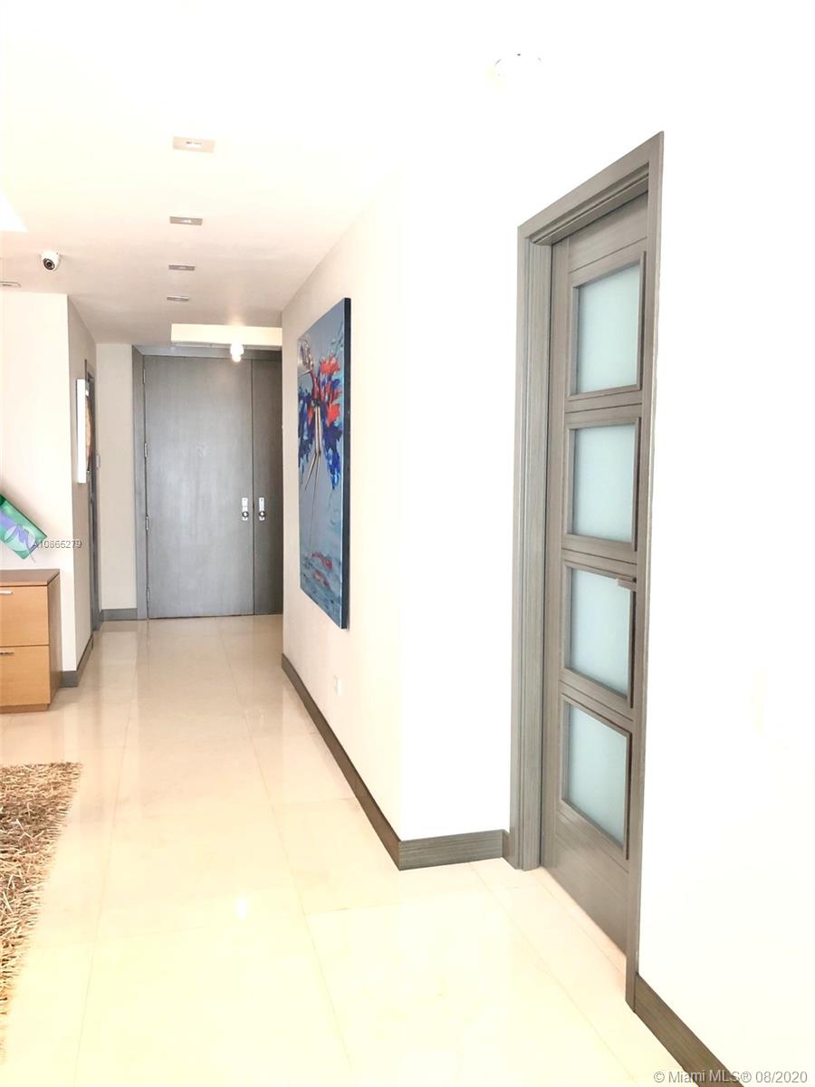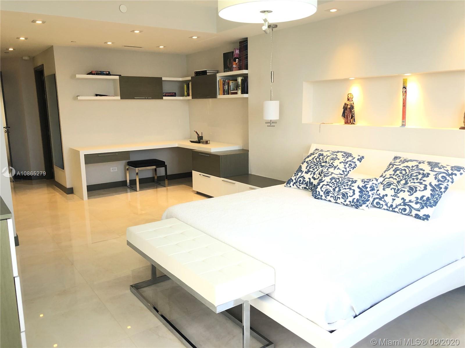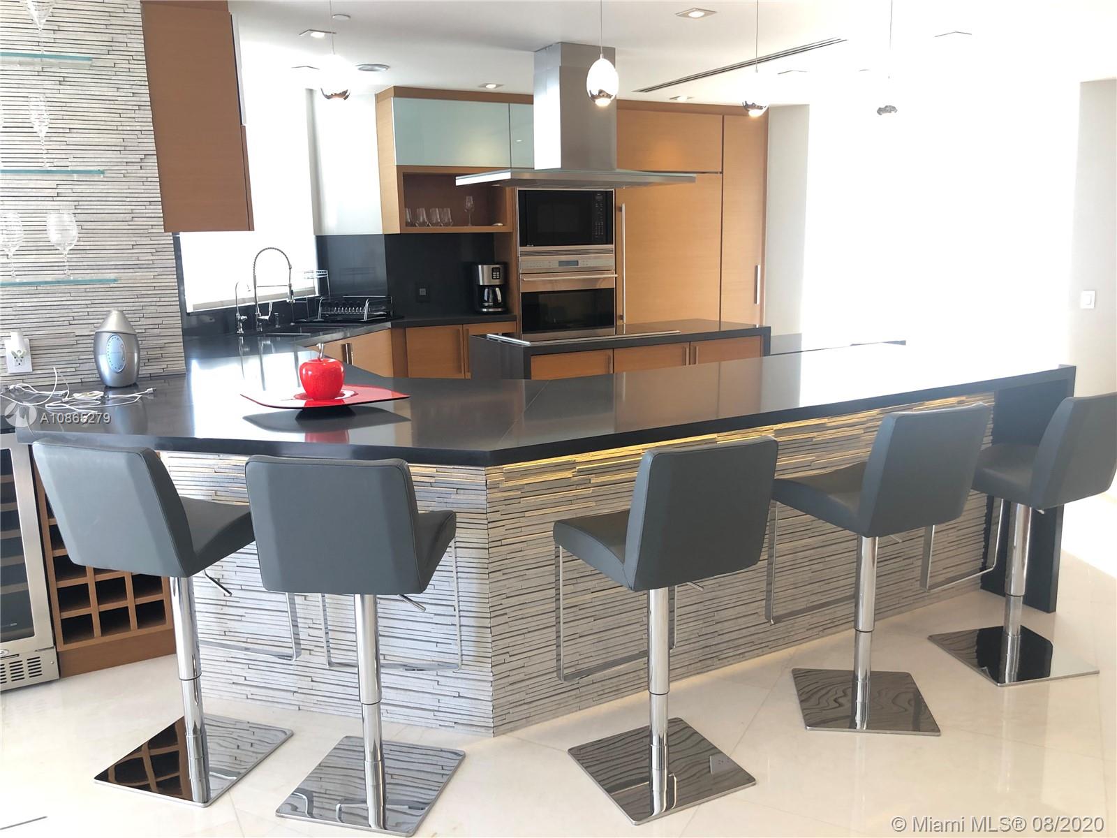 Completely Renovated Corner Unit, 2 bedrooms, 2.5 bath with amazing views of the Bay and Skyline. Apartment was fully remodel including new bathrooms, doors, open kitchen with top of the line appliances, counter-tops, bar, electrical blinds through the apartment, surround sound system, 2 parking spaces, and much more. Building in the prestigious Brickell Key, Two Tequesta recently updated excellent 2 floor gym, barbeque area, pool, tennis court and more. Must see