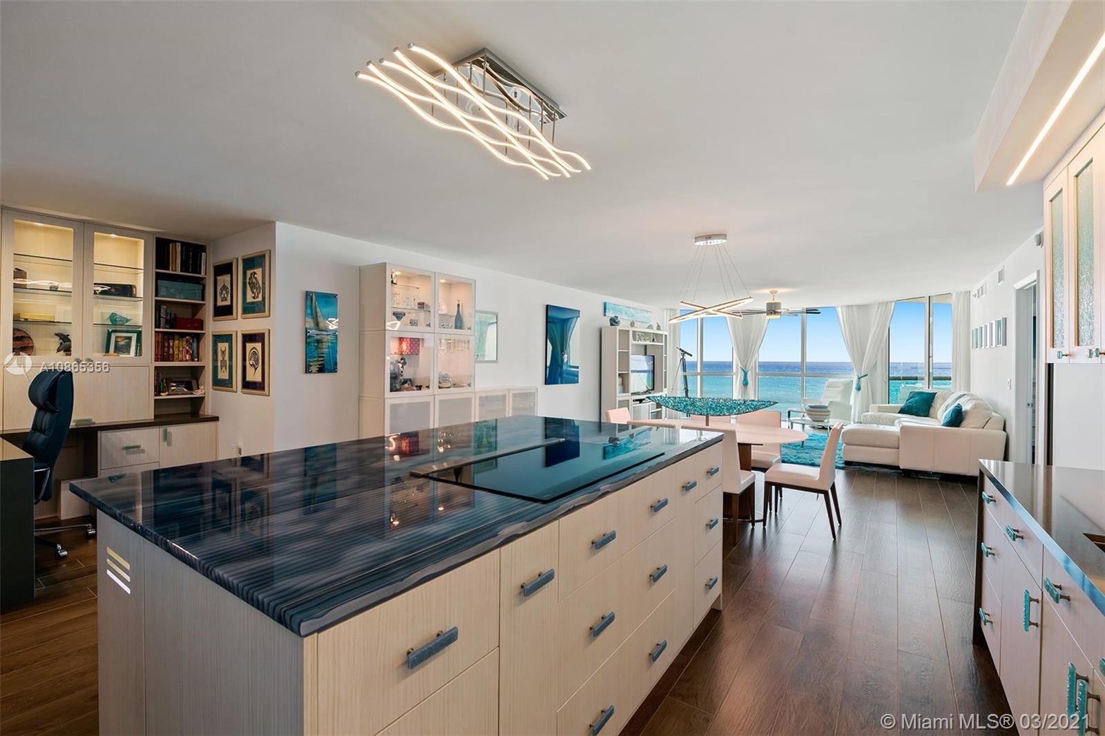 Turn-key & Move in ready! Take a semi-private elevator to a private foyer & enter a completely re-imagined, coastal inspired residence. Over half a million dollars spent thoughtfully & beautifully recreating this oceanfront home. Details include: Designer wood grain tile throughout living areas & bamboo flooring in bedrooms. Kitchen centerpiece is massive 56" x 94" Island with custom "Ribbon Glass" top & Cabinetry with innovative storage. Wolf Convection Oven, Steam Oven, & Induction Cook-top. Sub Zero panel refrigerator & Freezer, & Sub Zero 59 bottle panel wine cooler. Breathtaking ocean views from living room & master bedroom. Master bath has a one of a kind "Beach" walk-in shower, Kohler Real Rain showerhead & Kohler Papion cast stone soaking tub.