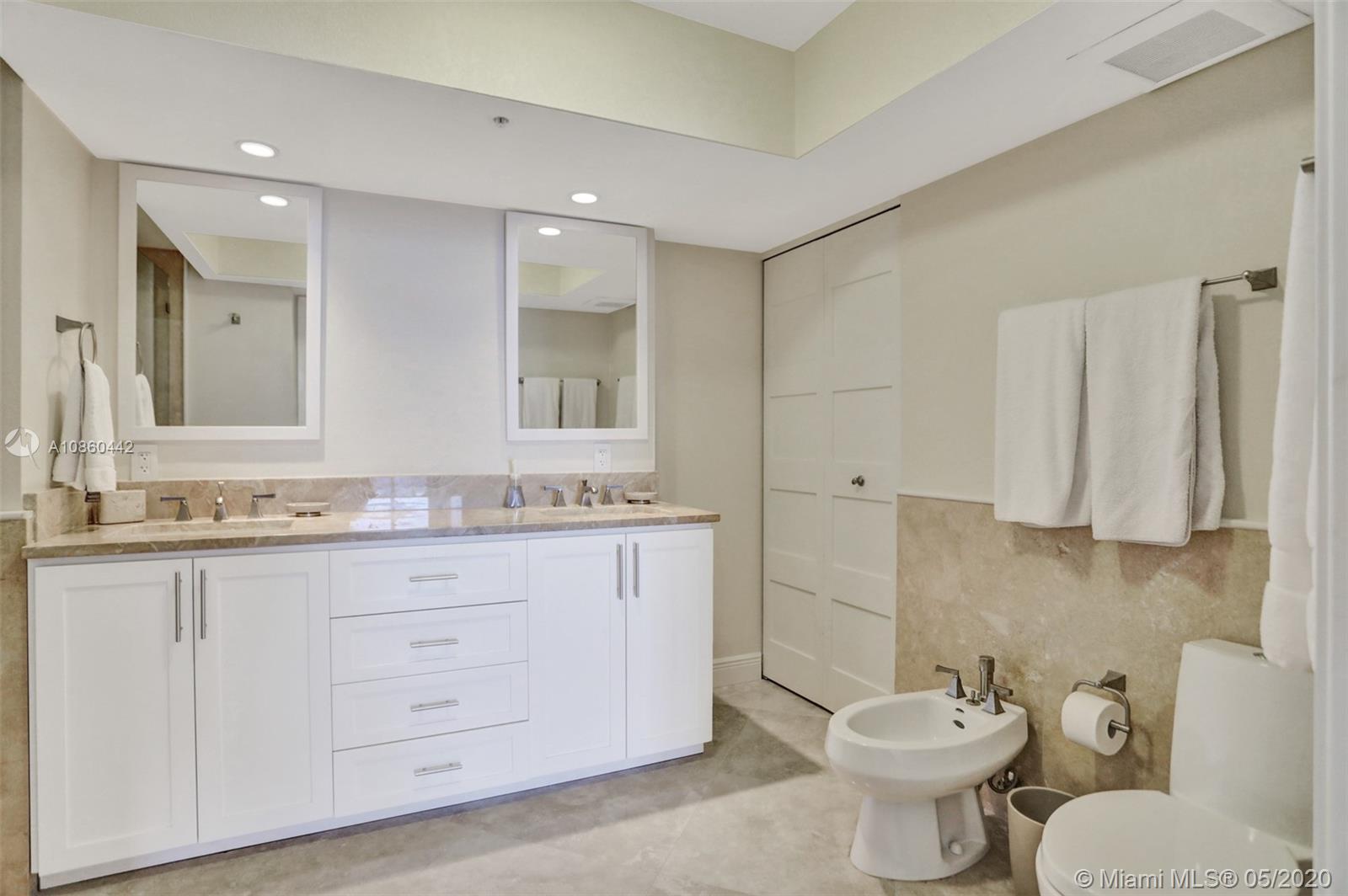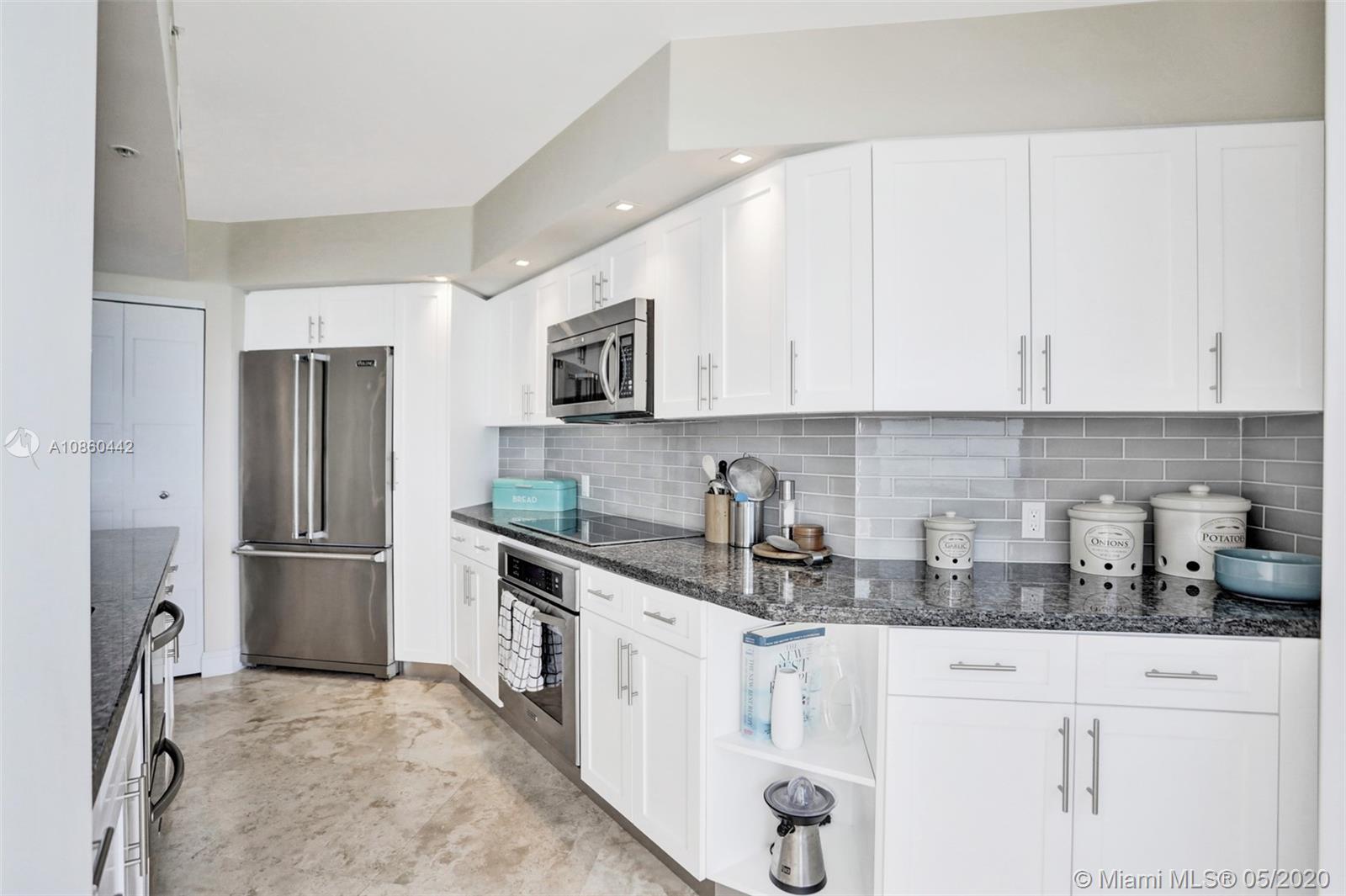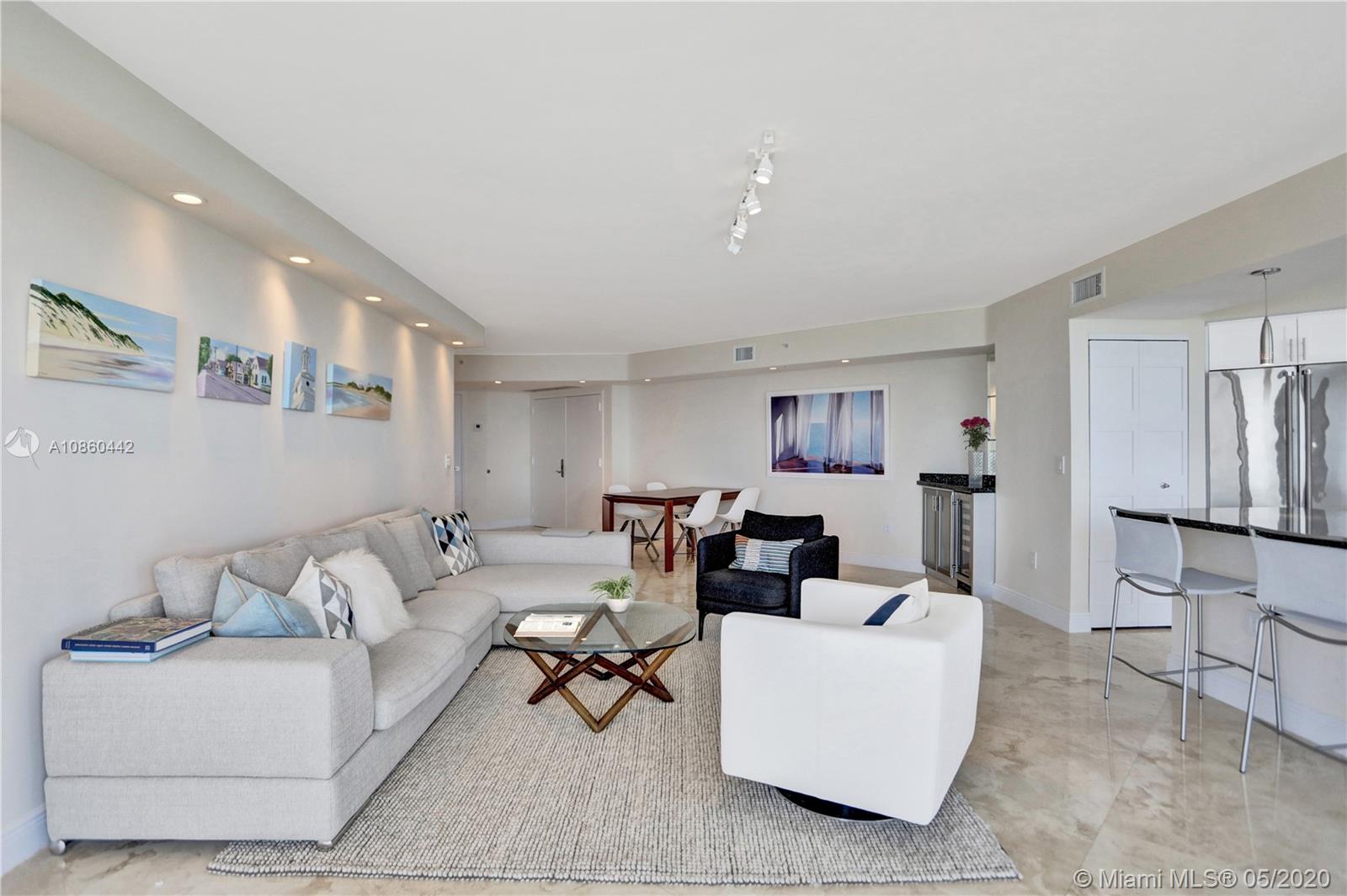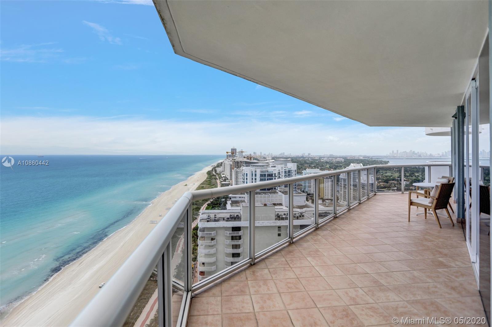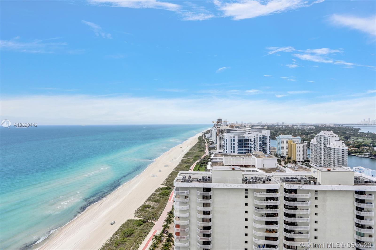 Unbelievable high floor direct SE views of the ocean, downtown Miami skyline, and miles of white beach. This beautiful 2bed/2bath residence is tastefully remodeled and decorated with marble floors and baths, electric shades in the living area, recessed lighting, built-in bar +wine cooler, and a huge terrace the length of the apartment with access from every room. The open kitchen has tons of cabinets, subway tiled backsplash, granite countertops, and stainless-steel appliances. The master suite has a walk-in closet, large master bath with double sinks, marble shower, and bidet. Offered fully furnished with 2 parking spaces. Just bring your clothes, move to Miami, and enjoy the ocean and great weather! La Gorce condo is a boutique high-rise on the ocean with full services and amenities.