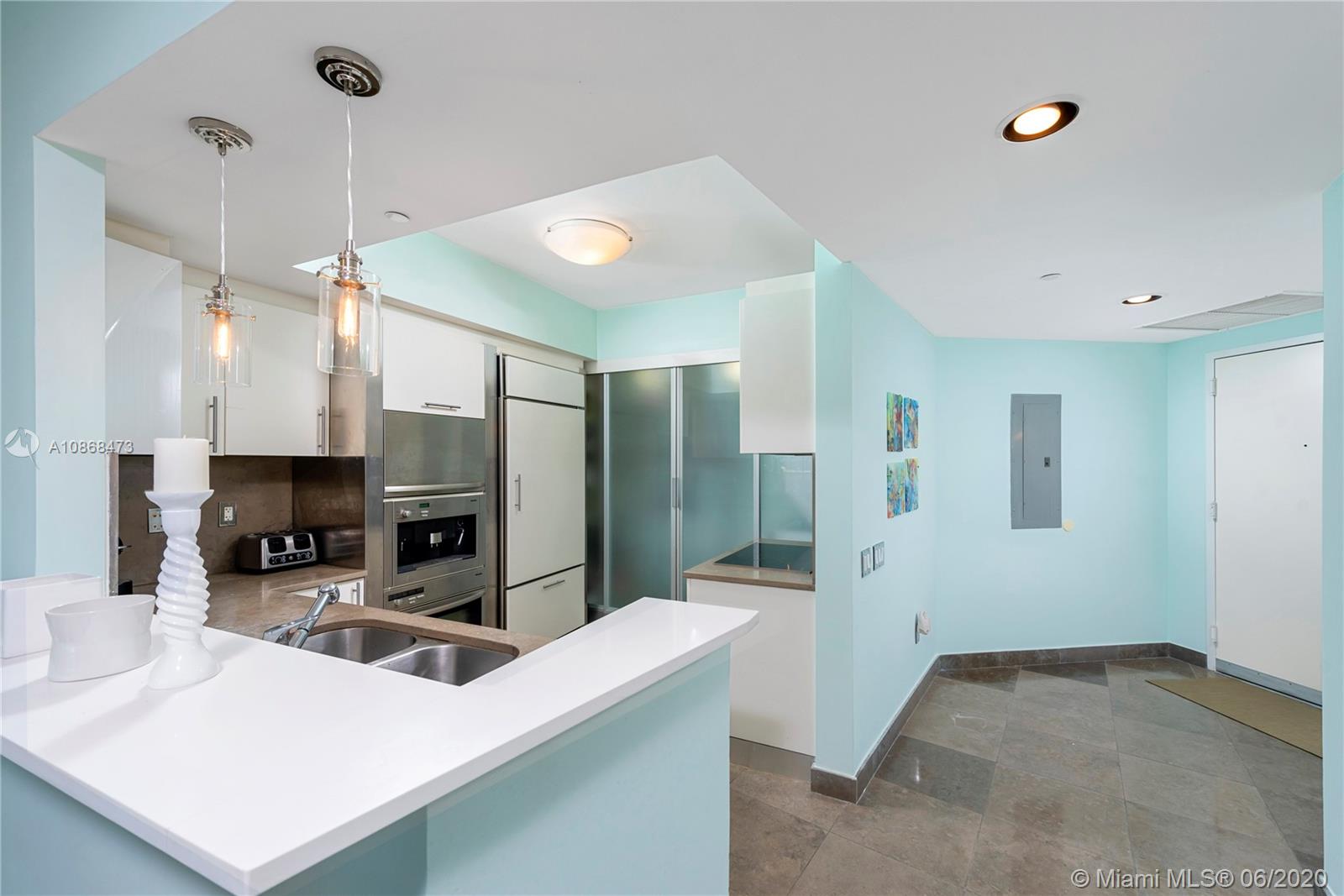 Views! Waterfront high floor 2 bedroom + Den condo at the ICON South Beach on the Miami Beach Marina. Beautiful direct bay and Miami skyline views from every room. Watch the cruise ships and Miami's famous sunsets every day from your condo in the sky. Interior features include an open kitchen with Miele and Subzero appliances, grey limestone floors, and roller shades. The den features custom sliding glass doors that transform the room from an entertaining space into a 3rd bedroom or office. The ICON is a 5 star building located in the South of Fifth neighborhood. The building amenities include a 24 hour security, a world class gym/spa, private restaurant, valet, library, and infinity pools. The ICON recently renovated the gym and pool common areas. Easy to show.