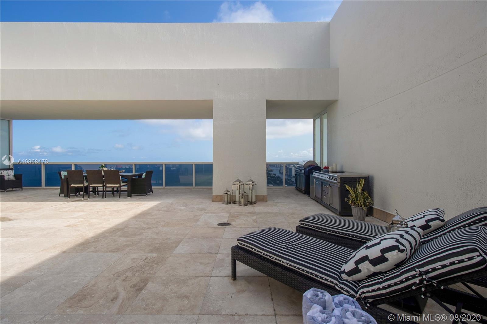 Stunning two story penthouse with 2,566 sq. ft. Private rooftop terrace. Magnificent South East exposure with stunning Ocean and Intracoastal views from this 51st floor. Marble floors throughout unit and motorized blinds, fire place in living room and bathroom, hardwood custom doors. Professionally decorated unit. Completely remodeled kitchen with, built-in closets, 3 bedrooms and 4 bathrooms with separate shower & Jacuzzi in master suite. This unit features European style kitchen with Catarata marble and Miele built-in coffee maker and wine cooler. 5-star resort-style condominium with full time concierge, 24 hour valet parking & security.