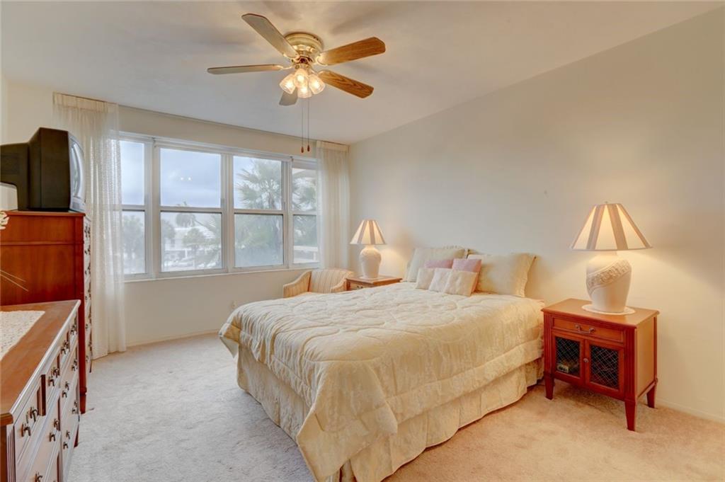 2 bedroom, 2 bathroom looking over the tree tops with nothing blocking your view for miles on a 5 acre co-op resort next to the beach. Hurricane windows, updated A/C, newer floors, well maintained. Heated pool on south side of building, gets sun all day. Clubhouse directly on the intracoastal only for owners in this building. Clubhouse has an 80 person capacity with industrial size kitchen and bbq grills. Watch the boats go by at sunset in this private clubhouse. 5 acres grounds contain Bocce Ball, gym, shuffleboard, bike storage, extra storage, 24 hour manned security, beautiful lobby, community room, walking paths dotted with orchids and palm trees. Bingo nights, playing card nights, morning water exercise classes and much more. 55+ community, min 700 credit score.
