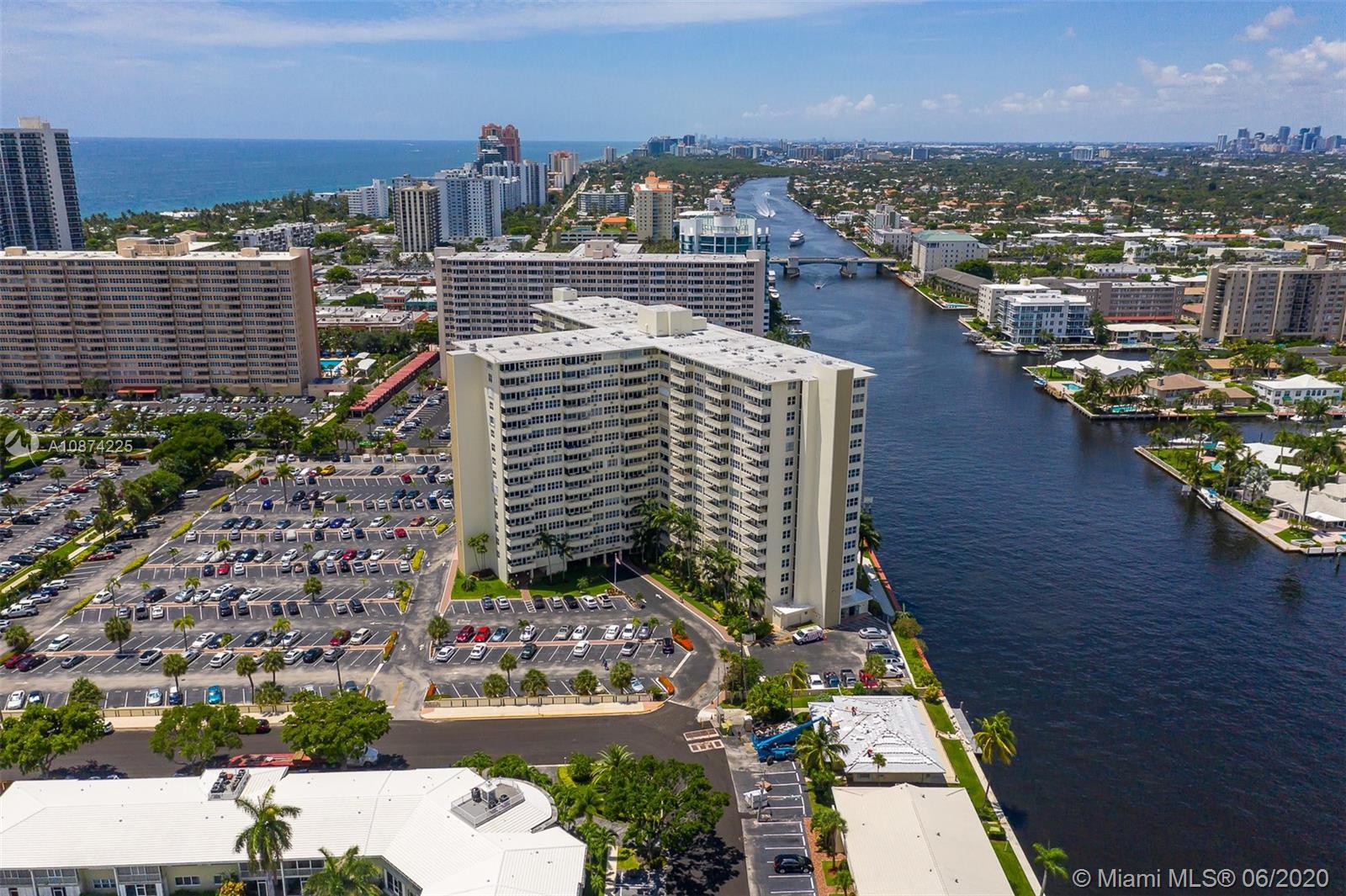 Amazing intracoastal & ocean views! Watch the boats go by while relaxing in this extremely spacious 1 bed, 1 bath residence located in the prestigious Coral Ridge towers. Remodeled kitchen features granite countertops, tile backsplash, stainless steel appliances, & an open concept with a breakfast bar. All windows & doors are hurricane impact resistant. Tile flooring throughout all the main living areas & carpeting in the bedroom. Conveniently located near many shops, restaurants, & walking distance to the beach! Coral Ridge offers a ton of amenities which include a heated pool, recreation room, fitness center, shuffleboard, BBQ area, 24-hour security, car vacuum, & a library! 55+ community - no renting & no pets. Association requires a minimum of 50% down.