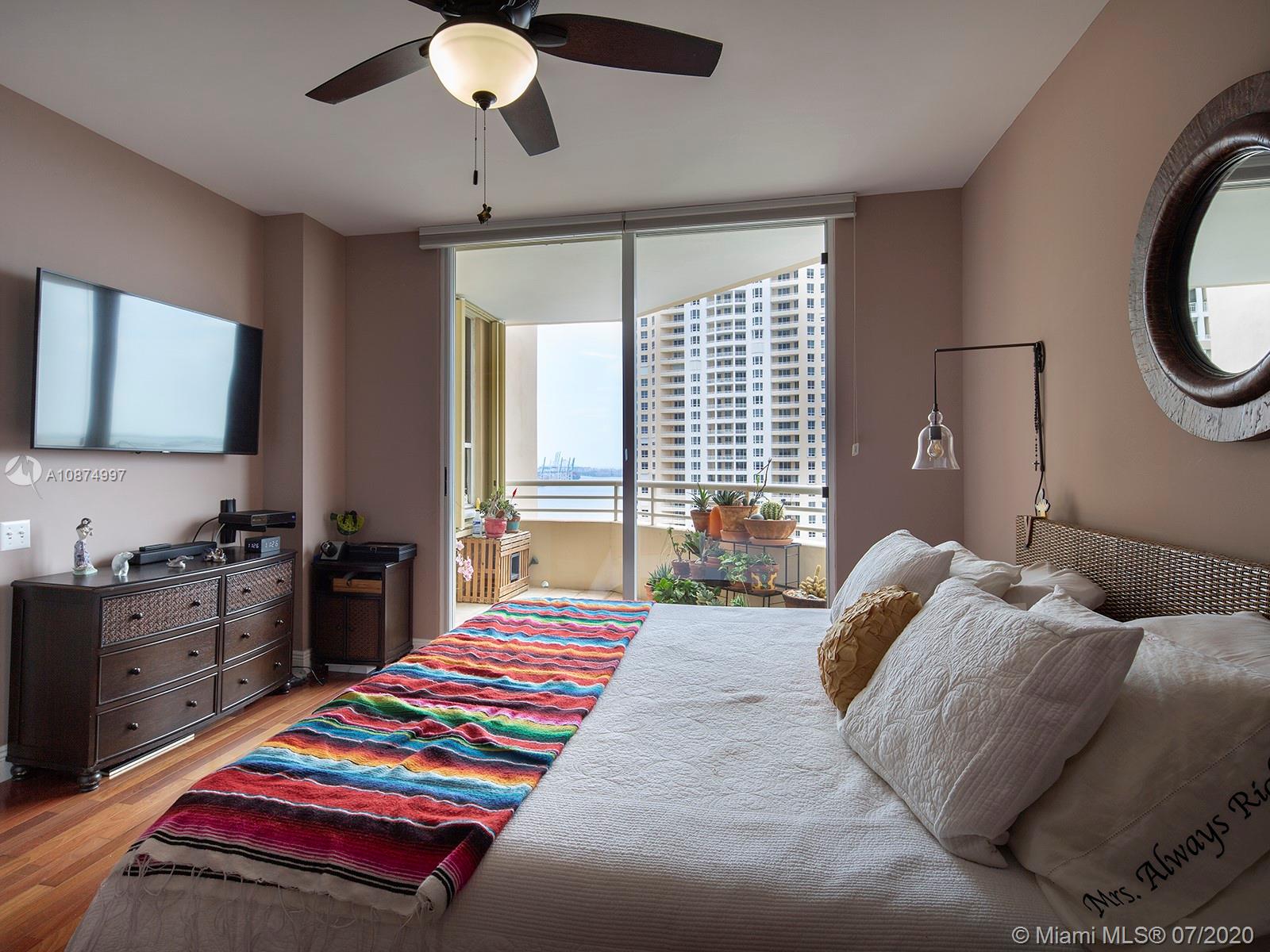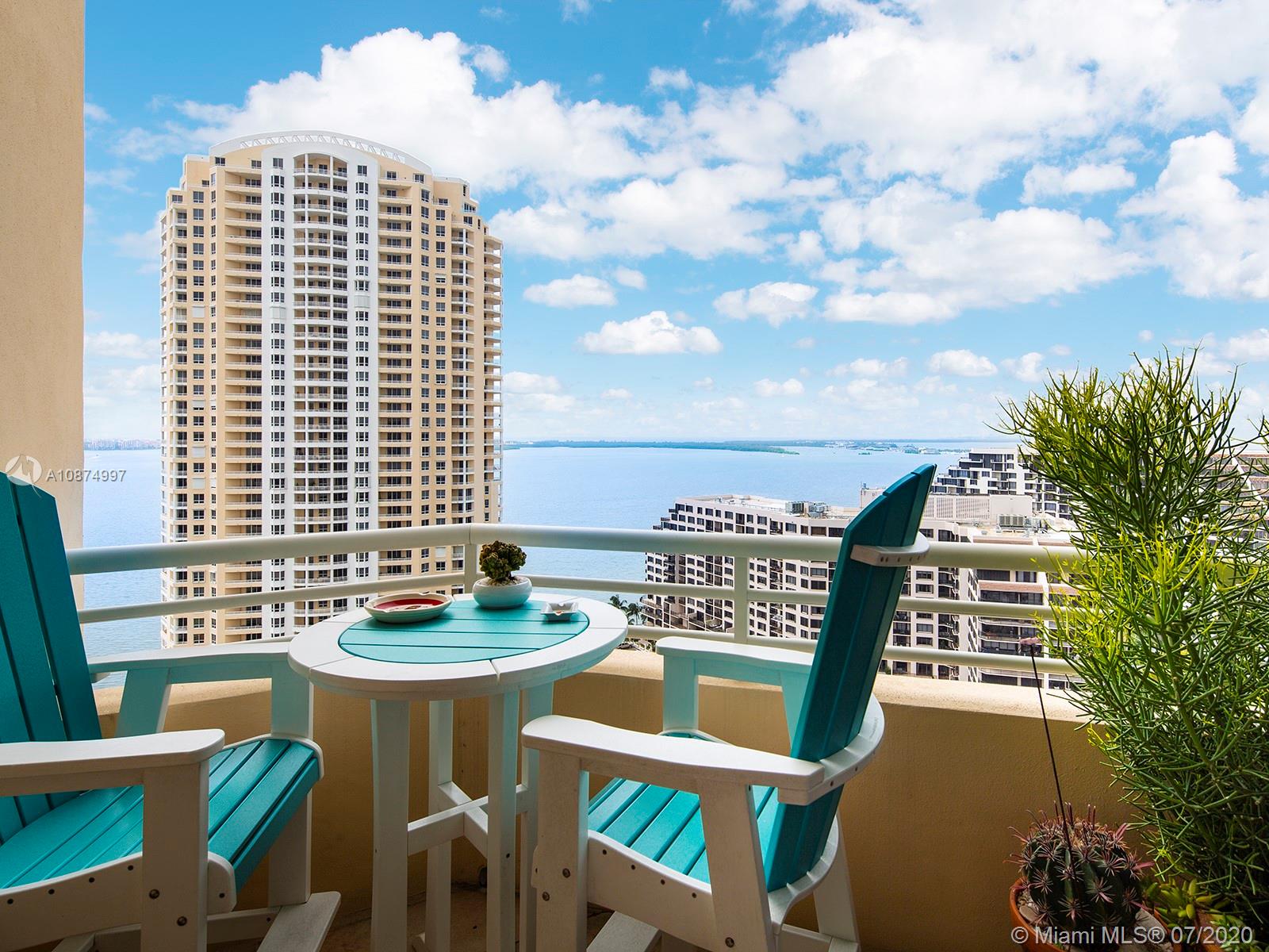 Enjoy the water views of Biscayne Bay, from this 2 bed 2 bath condo at One Tequesta Point in Brickell Key. Boasting an open kitchen, wood floors throughout, & a split floorplan spread over 1,310 sqft, plus 3 balconies, all with wide open water views. The master bed includes walk in closets and its bath comes with dual sinks, a shower, & separate bath. The unit comes with 1 parking space, a 2nd parking space leased from the association, and a large storage unit. One Tequesta Point meticulously maintains an array of amenities, including a 24-hour security, pool, spa, racquetball, fitness center, & much more. Additionally, Brickell Key offers, recreational parks, which are perfect for families, a 1 mile walking path that surrounds the island, and its high-end restaurants and local markets.