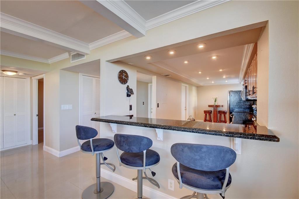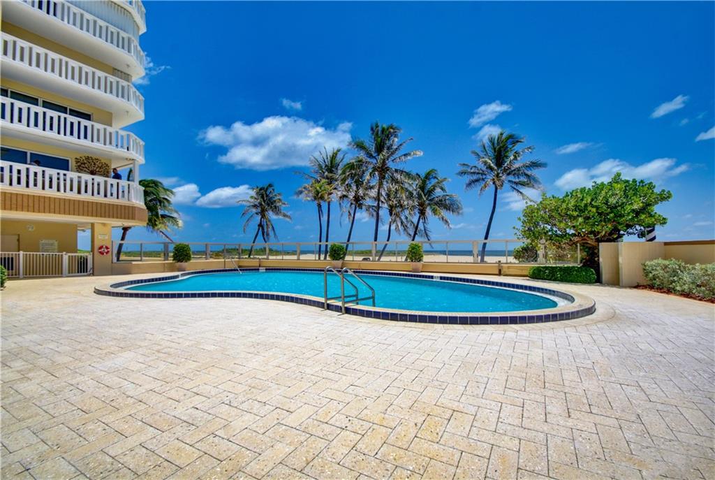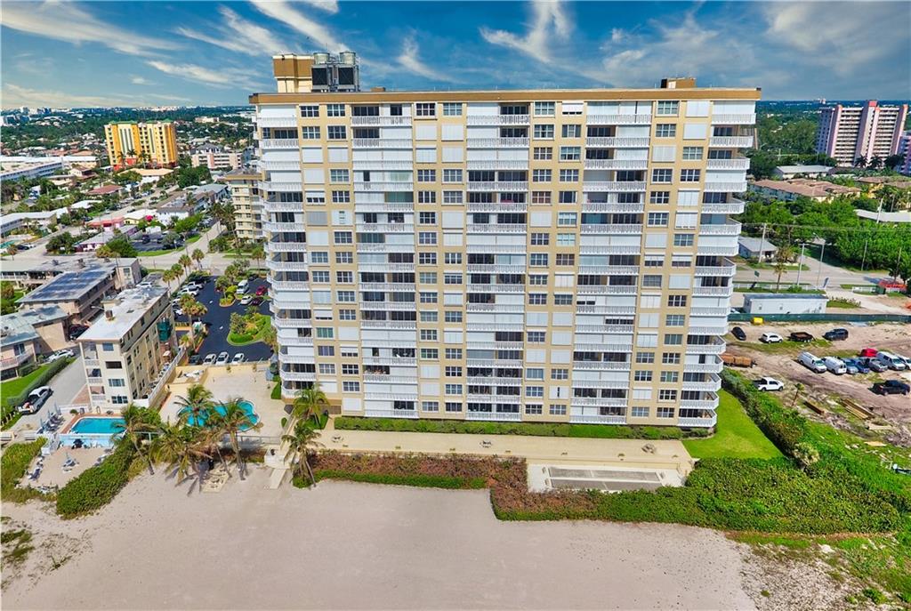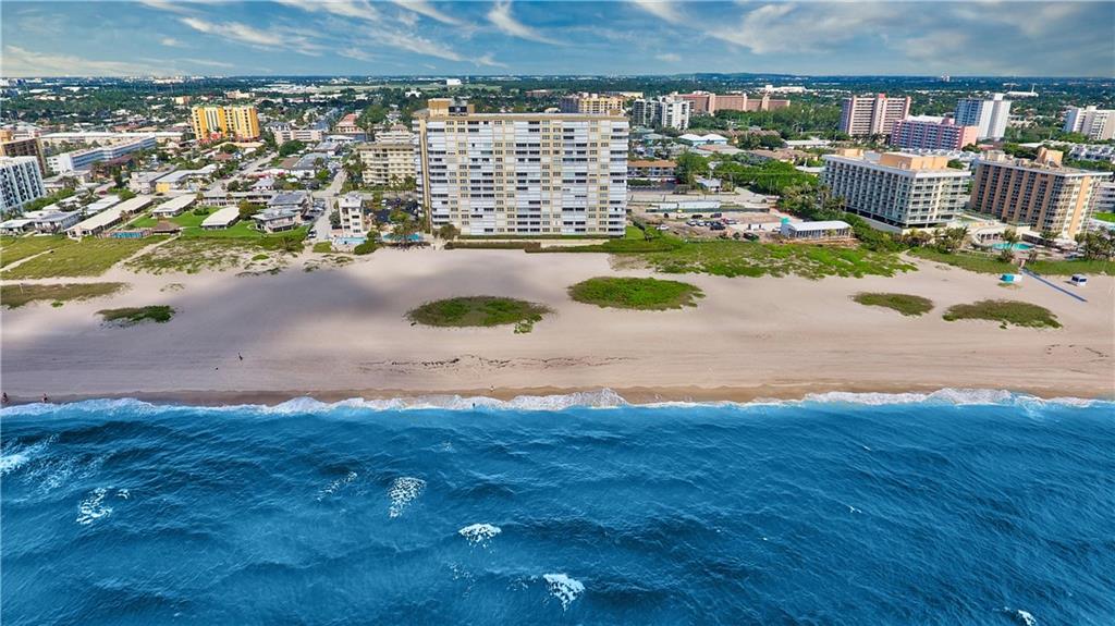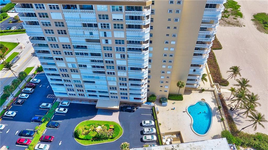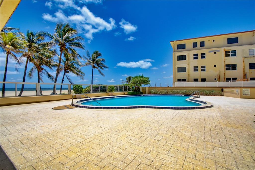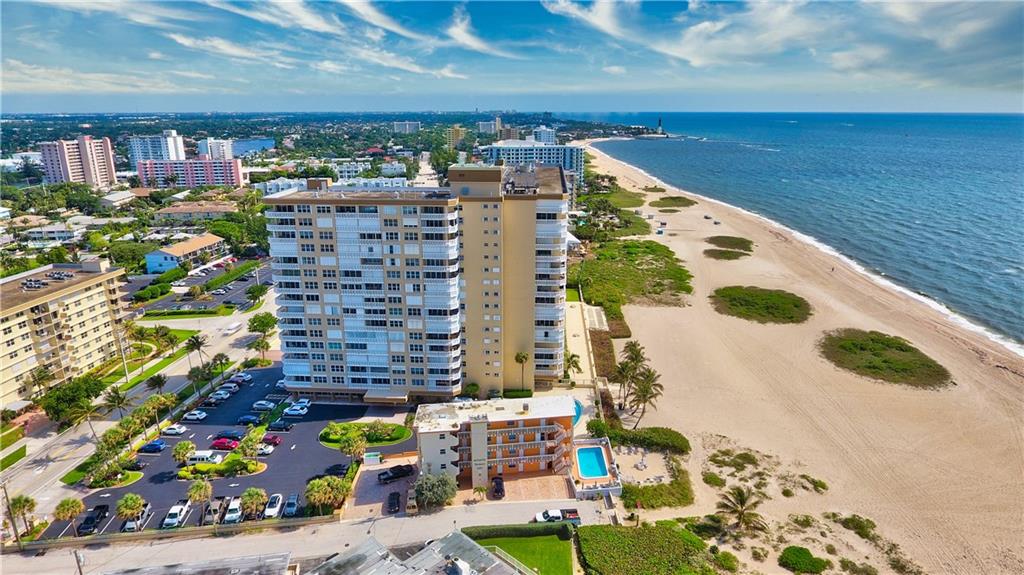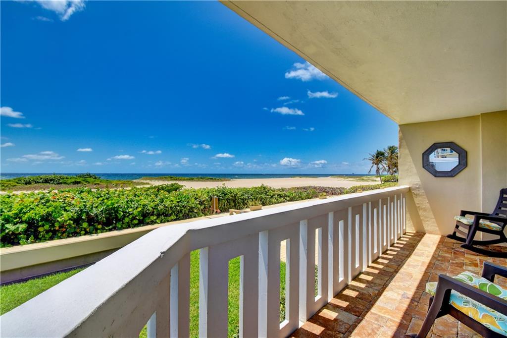 Completely updated turnkey northeast corner unit with unobstructed direct ocean views and large wrap around balcony. This raised first floor unit with private entry is perfect to park outside your door and walk right into your beachfront slice of paradise. No need to walk through the lobby. Eat in kitchen with granite counters, breakfast bar, stainless steel appliances, full size washer and dryer inside the unit, hurricane impact windows and doors and coffered ceilings. Both ac and water heater newer. Oceanside heated pool, fitness center, 24 hour concierge, community room, BBQ grills, car wash and extra storage. Shuffleboard. Views of the brand new Pompano Pier. 55 and older building- low monthly maintenance. Turnkey
