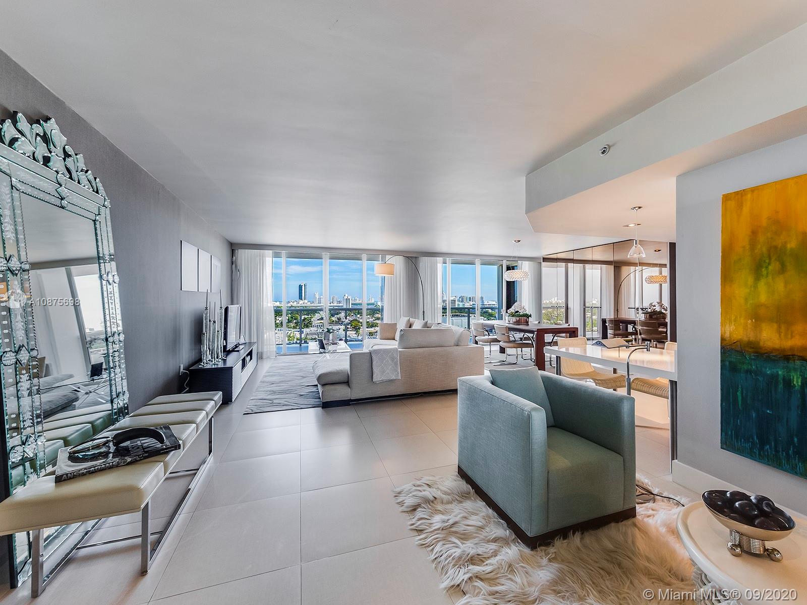 Open the front door and you will feel happy and relaxed in this turn-key 2 bed 2 bath unit transformed into a stunning very spacious 1 bed 2 bath. Unique floor-plan as it was fully remodeled by current owner who hired a professional interior designer with the task of delivering a spacious and comfortable unit, with lots of natural light, plenty of closet space, and a casual and relaxed elegance to be enjoyed by residents and to accommodate plenty of friends when entertaining. High end materials throughout, custom made closets in master suite and living area, custom made vanities for both bathrooms, motorized blackout shades and linen drapes, oversized terrace. Easily convert back to 2 bedroom if desired. Trendy Sunset Harbour is not just an address is a lifestyle!