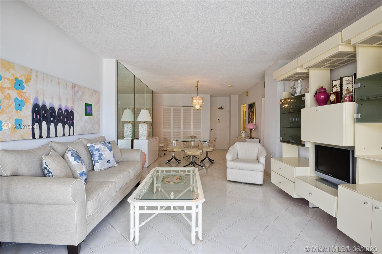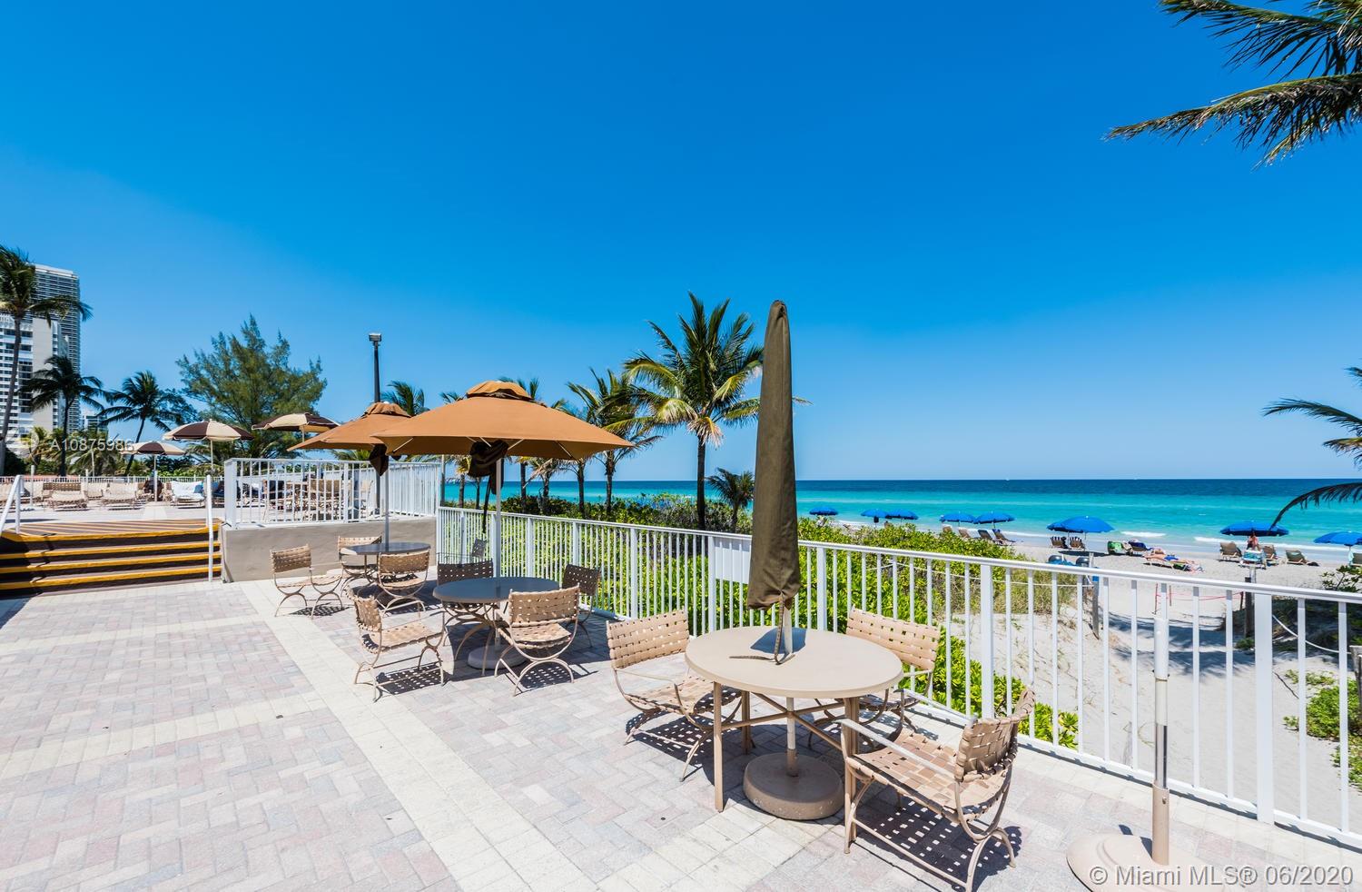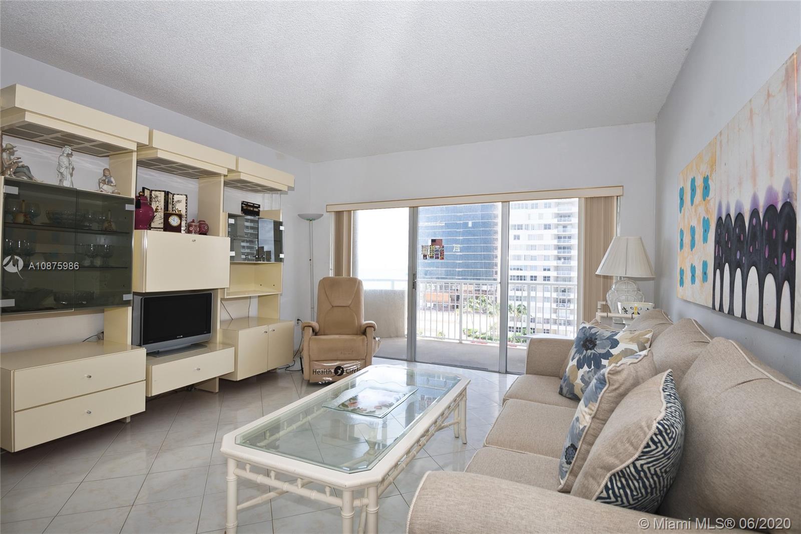 1 BR 1.5 BATHS OCEAN NORTH* FACING SOUTH. GREAT OCEAN AND POOL VIEW! MOST DESIRABLE LOCATION AND VIEWS! WARM, SUNNY EXP. GREAT TERRACE FOR SUN BATHING,RELAXING,OR JUST ENJOYING LIFE ON THE BEACH! MAINT INC A/C,CABLE,HOT WATER,PARKING,24HR SECURITY, PLUS MORE2 POOLS, BEACH SERVICE, 2 REST'S, SNACK BAR,2 GYMS,TENNIS,BBQ,DOCKS,SALON, CONV STORE,BASKETBALL,GREAT COMPLEX FOR FULL TIME OR VACATION LIVING. MAINTENANCE A/C,CABLE,HOT WATER, PARKING, 24 HR SECURITY AND MORE! GREAT FRIENDLY COMPLEX. 2 POOLS, BEACH SERVICE, 2 REST'S, SNACK BAR,2 GYMS,TENNIS,BBQ,BOAT DOCKS,SALON, CONV STORE, BILLIARDS,CARD,BASKETBALL, CLOSE TO ALL MAJOR SHOPPING AND HIGHWAYS . GREAT FOR FULL TIME OR VACATION LIVING