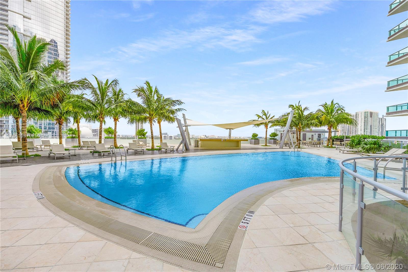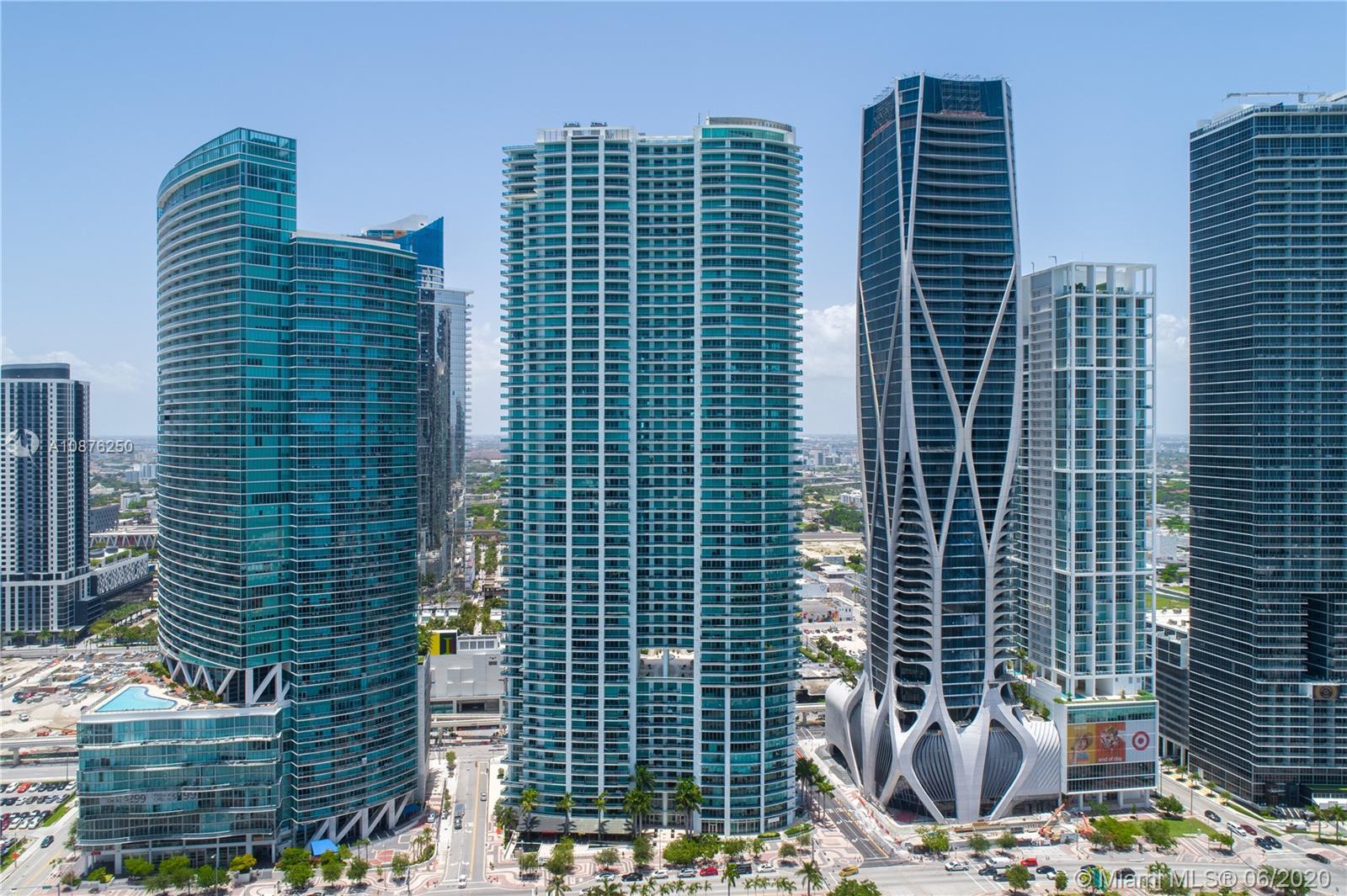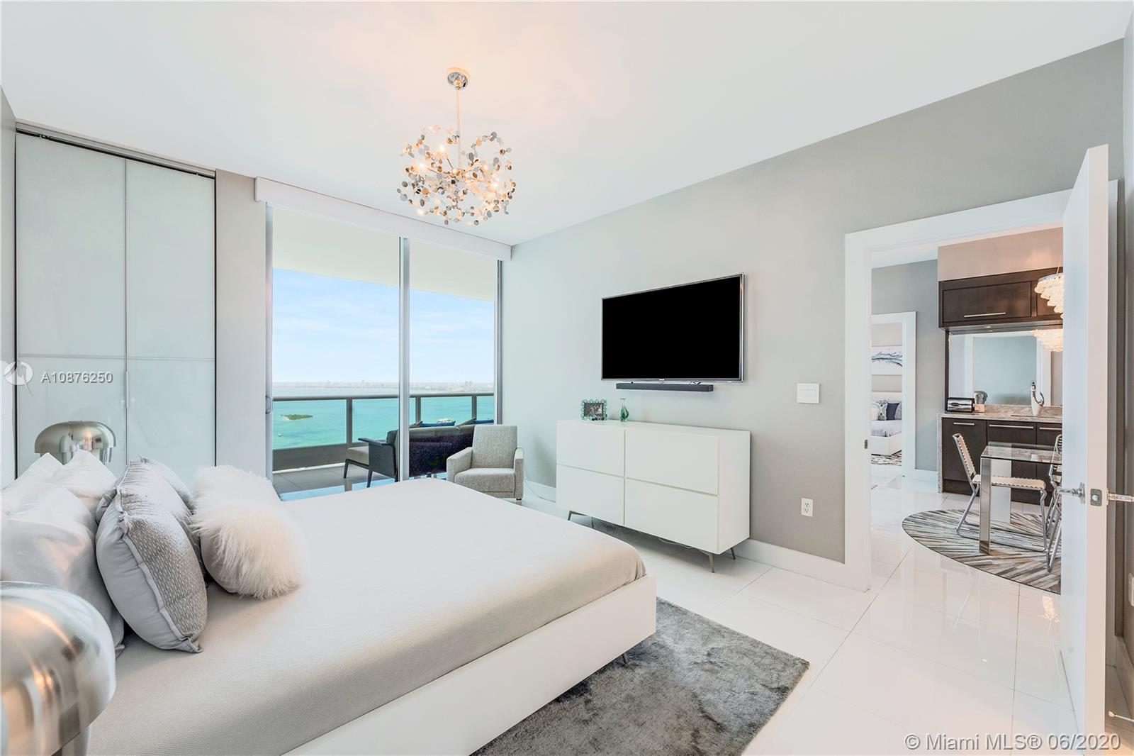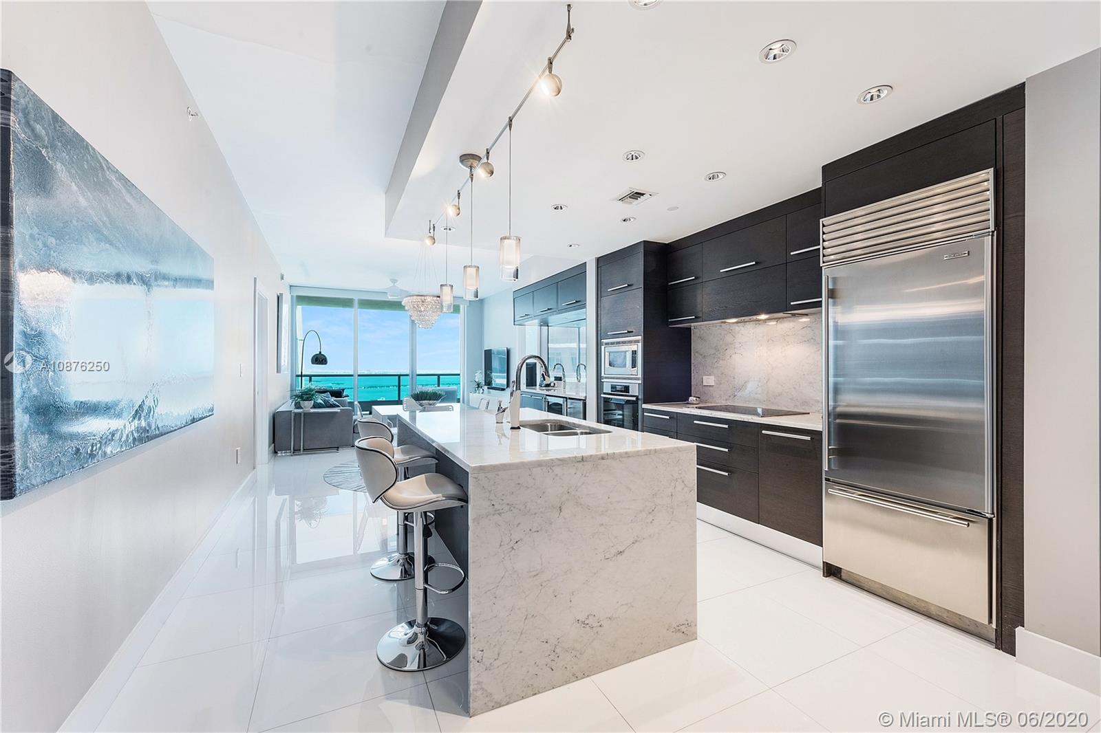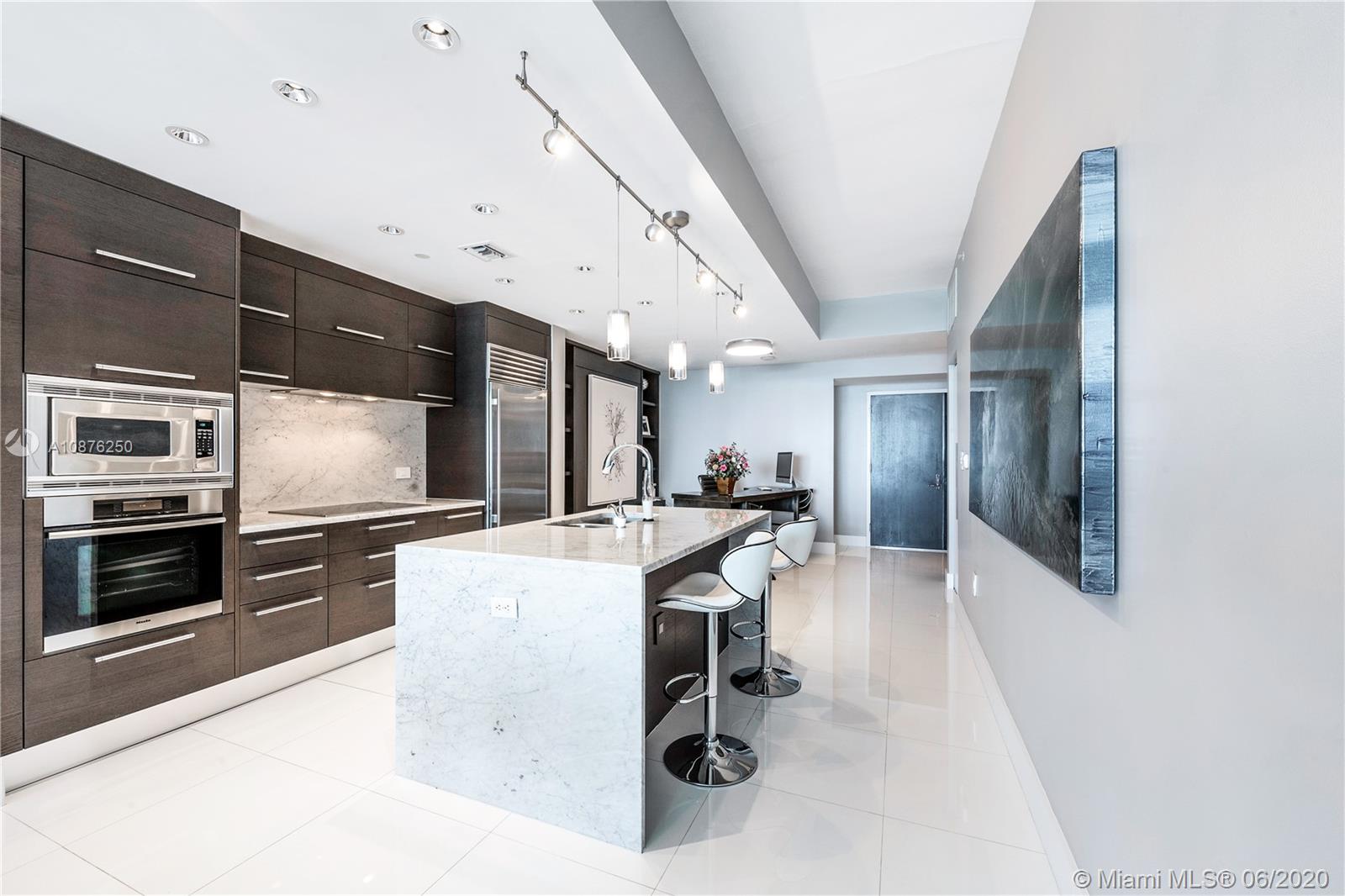 Beautiful 2-Bed + Den with built-in Murphy Bed, 3-Bath condo at 900 Biscayne Bay in Downtown Miami offering private 10-ft-deep terrace overlooking Biscayne Bay, Museum Park & the Miami Beach Skyline. This unit offers a private elevator foyer leading into 1,576 SF of interior space with 10-ft ceilings, floor-to-ceiling impact windows, custom lighting, white glass floors, custom closets, modern kitchen with chef's island, marble countertops & Miele/Sub-Zero appliances, custom-built wet bar, master bath with soaking tub & glass-enclosed shower & in-unit laundry. Private amenities include new resort-style pool deck with lap pool, swimming pool, hot tub, hammocks, covered bar, BBQ, high-tech fitness center, full-service spa, club room, kid's room, business center, cinema & 24-hr valet/security.