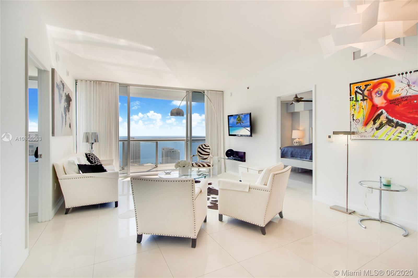 Live at the Best address in Brickell! Icon Brickell #3303 Back on the market!. BEST PRICED (O3 LINE) ON 33RD FLOOR! Immaculate 2 bedroom/ 2 full bath plus den/office space in the hottest building in Brickell...Icon Brickell! A must see! White porcelain tile throughout. Direct ocean views from every room in the unit and expansive balcony. 5 Star Amenities!! Live at the best address in the booming Brickell area! Largest pool in US, indoor spa, Walk to Mary Brickell & more!