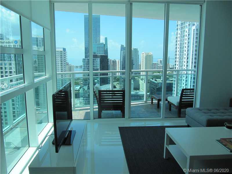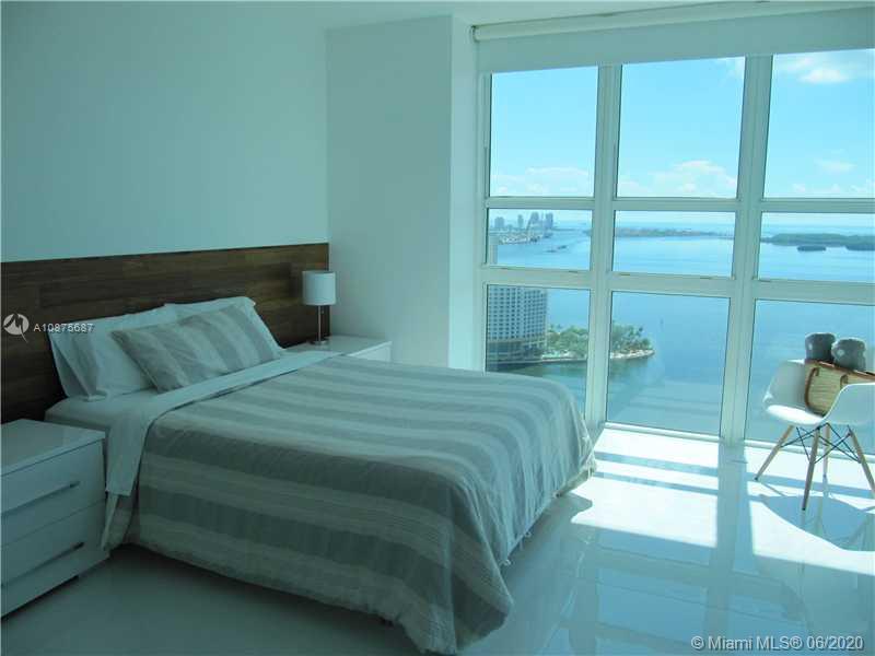 Panoramic unobstructed Biscayne Bay & Miami's skyline views from every room of this corner unit. High ceilings, views with astonishing light from floor to ceiling windows. 2 beds 2.5 bths. Wrap around balconies, porcelain floors throughout , contemporary kitchen. 2 heated infinity pools, fitness center, club room,theater room, business center, billiard room. Pet friendly building. Centrally located, with proximity to Miami's fine dining,plush hotels, with quick access to the beaches, Mary Brickell Village.