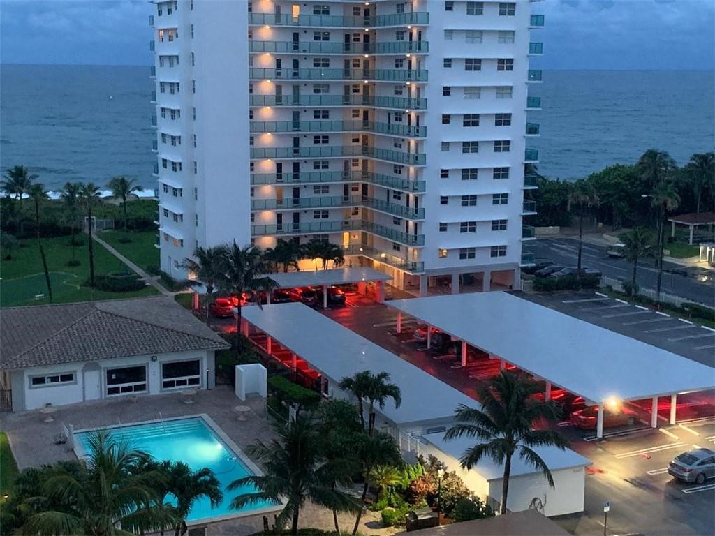 Opportunity Awaits You! 2/2 8th Floor Corner Unit w/ Balcony facing south with good views of the intercoastal & partial views of the Ocean looking out from your Balcony. Enjoy Western Sunsets every night as the west side of the unit has a bank of windows for your enjoyment. Windows on 3 sides of the unit. It does have impact windows sliding glass door but not entrance doors. It needs paint. There is a locker (#815) for your beach chairs in the Storage Area on the ground floor.