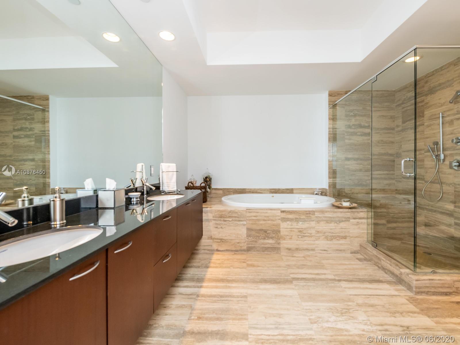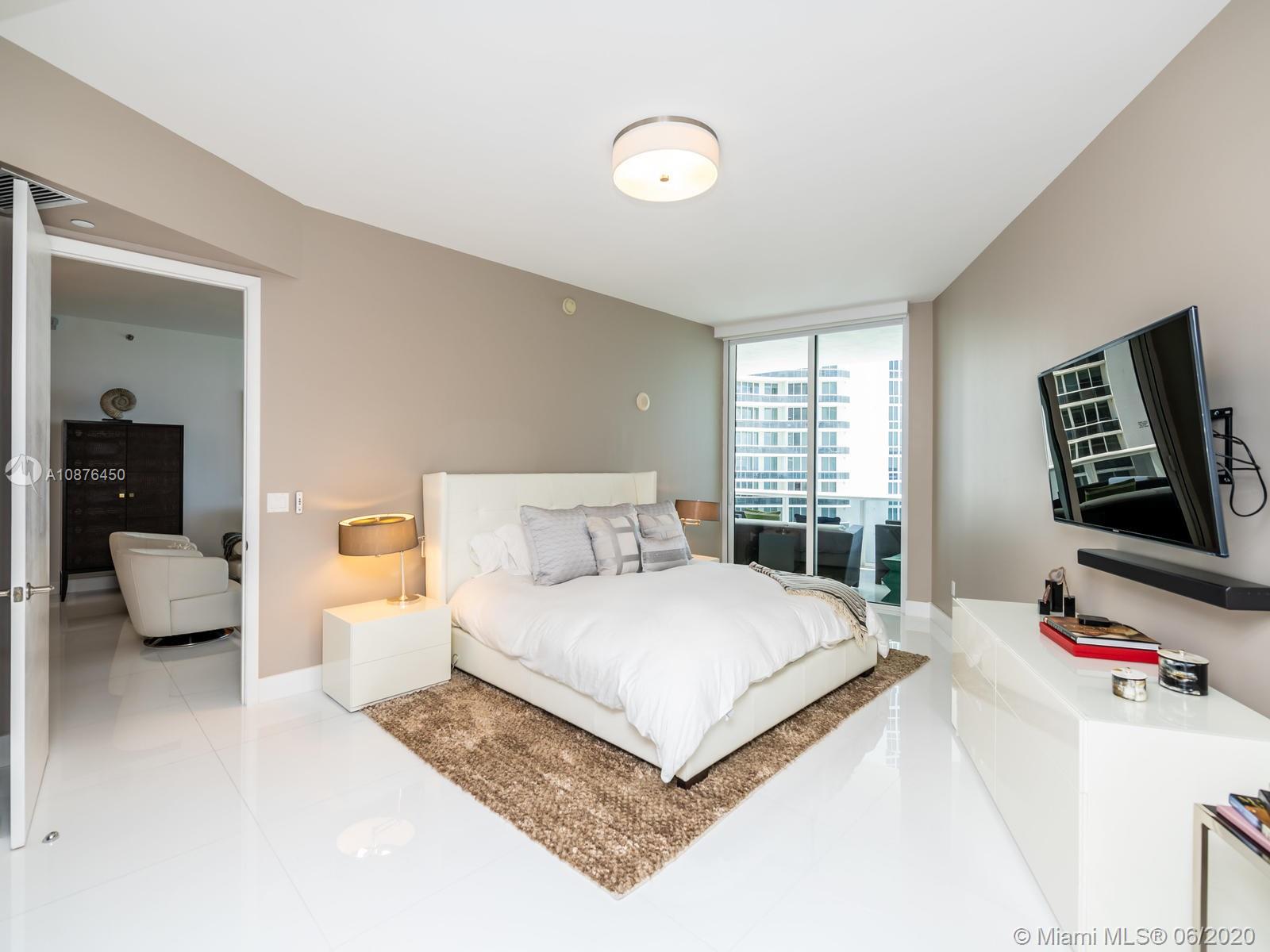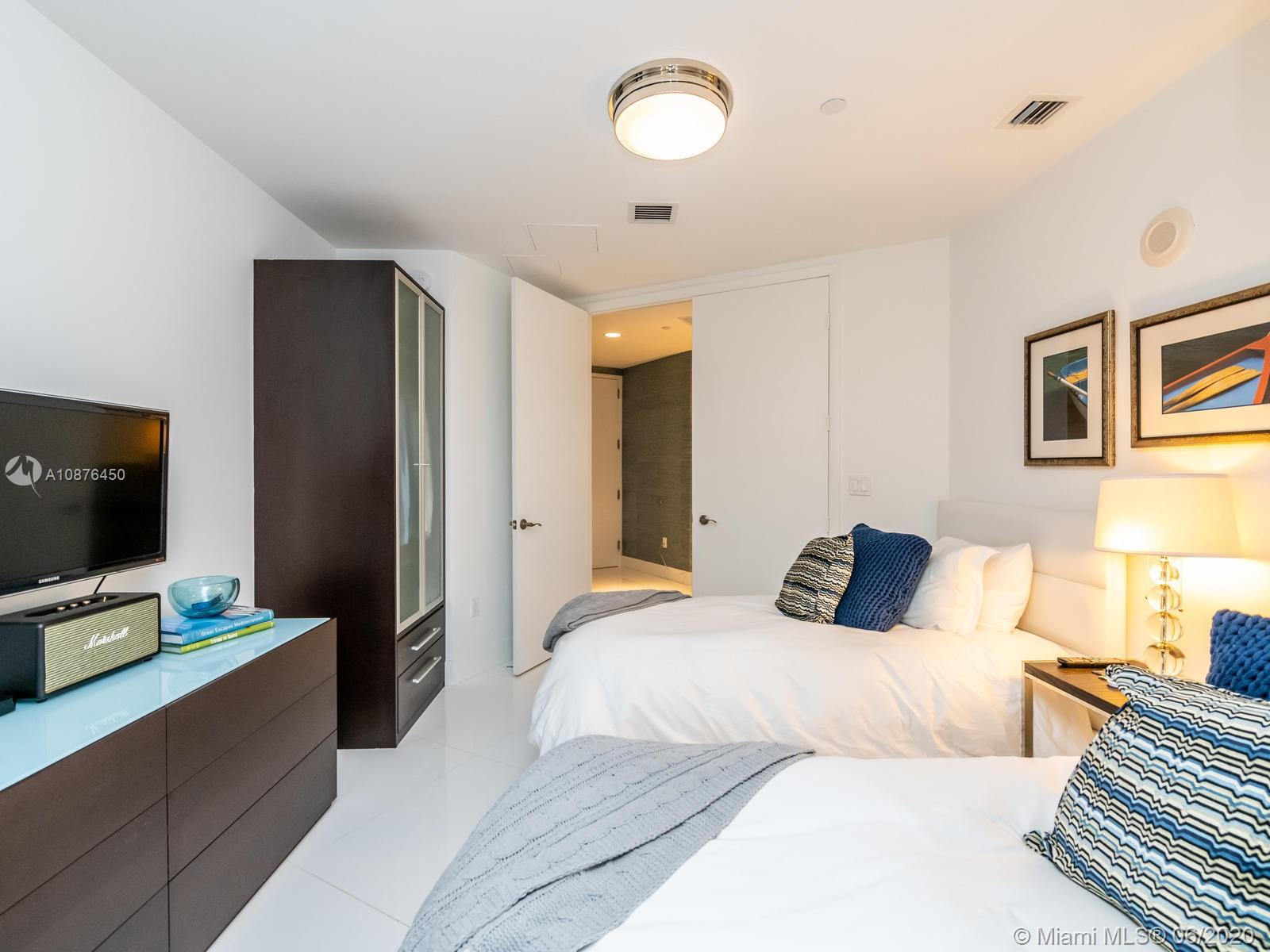 Elegant beach retreat in a sophisticated condo! Exquisitely appointed 2 bedrooms + den (now a third bedroom), 3 bath home. Floor to ceiling impact glass, with endless bay views . Electrical blinds/blackouts throughout. Gourmet kitchen with Bosch appliances, Subzero refrigerator & built-in cappuccino maker. Stunning and carefree bianco glass stone floors. Smart thermostat. This condo has only been used for the owner’s vacations. Ride your elevator to the white sands of Biscayne Bay and enjoy the resort amenities of TDR Towers. Excellent location to Miami Int'l and Ft Lauderdale Int'l Airport.