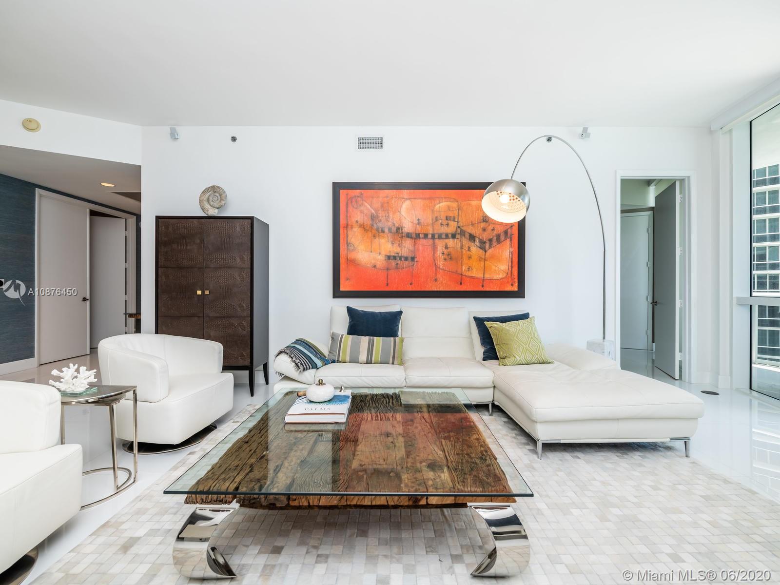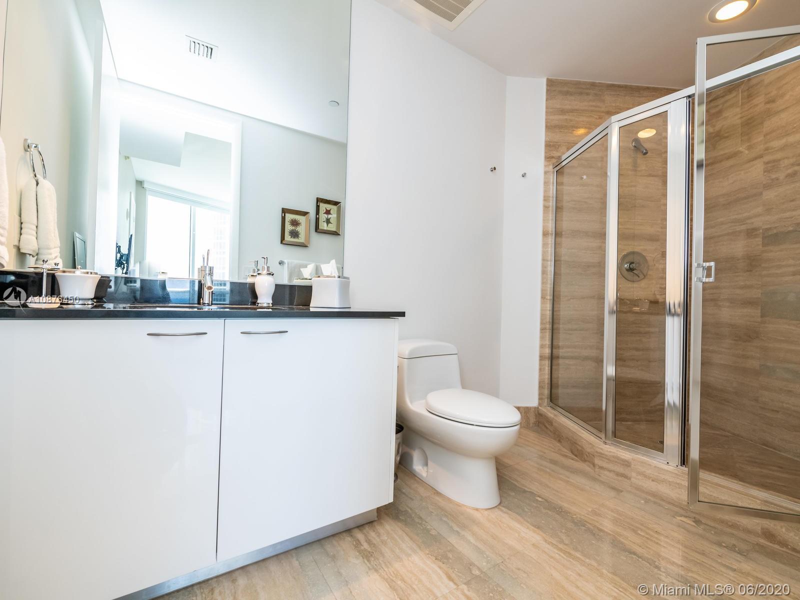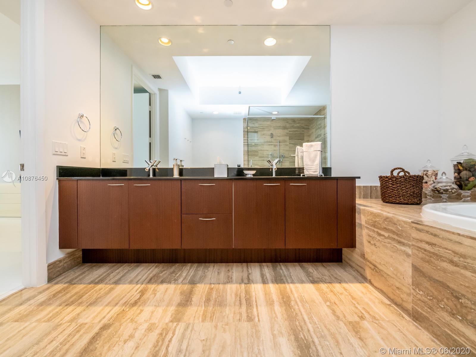 Elegant beach retreat in a sophisticated condo! Exquisitely appointed 2 bedrooms + den (now a third bedroom), 3 bath home. Floor to ceiling impact glass, with endless bay views . Electrical blinds/blackouts throughout. Gourmet kitchen with Bosch appliances, Subzero refrigerator & built-in cappuccino maker. Stunning and carefree bianco glass stone floors. Smart thermostat. This condo has only been used for the owner’s vacations. Ride your elevator to the white sands of Biscayne Bay and enjoy the resort amenities of TDR Towers. Excellent location to Miami Int'l and Ft Lauderdale Int'l Airport.