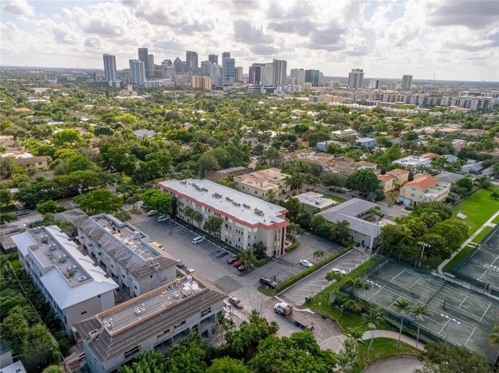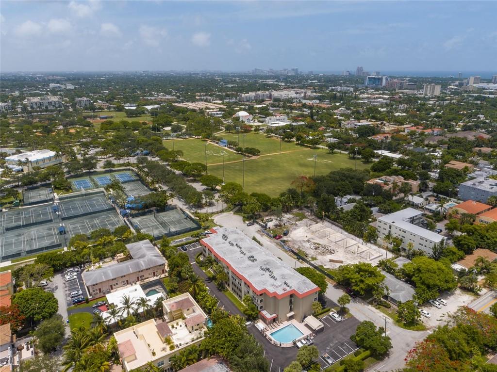 East of Downtown about a mile to the beach. Victoria Park's boutique park side condominium. Situated on a quiet cut-de-sac at Holiday Park and only steps to the tennis center. This well maintained 3rd Floor SE corner apartment offers an ideal split floor plan with updated kitchen granite counter tops and hardwood cabinetry, recent appliances and a pass-through Breakfast bar. Updated baths, a Master with walk-in closet, a formal dining area and impact windows and reasonable maintenance make this the ideal place to call home. Only 43 units total in this four story building with heated pool, covered terrace and barbecue area too. Minutes to Las Olas Bouldevard, restaurants, shopping and the beach!