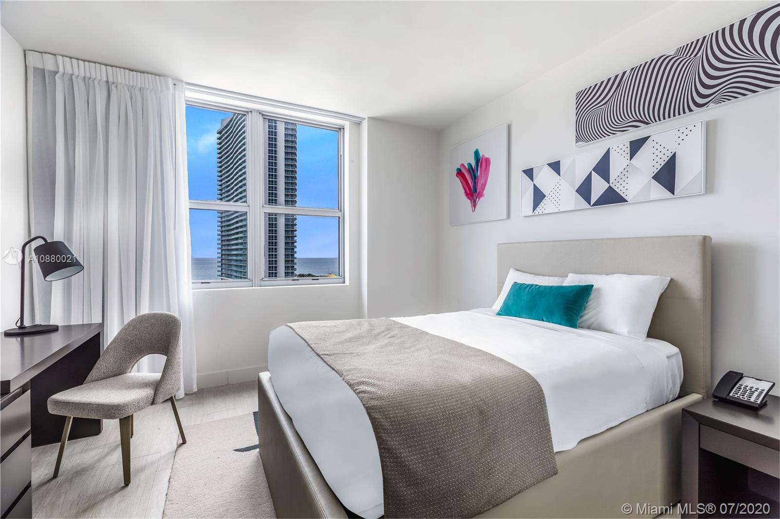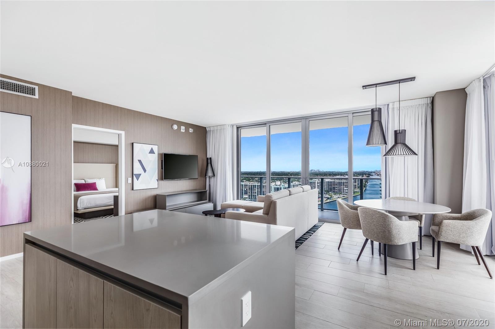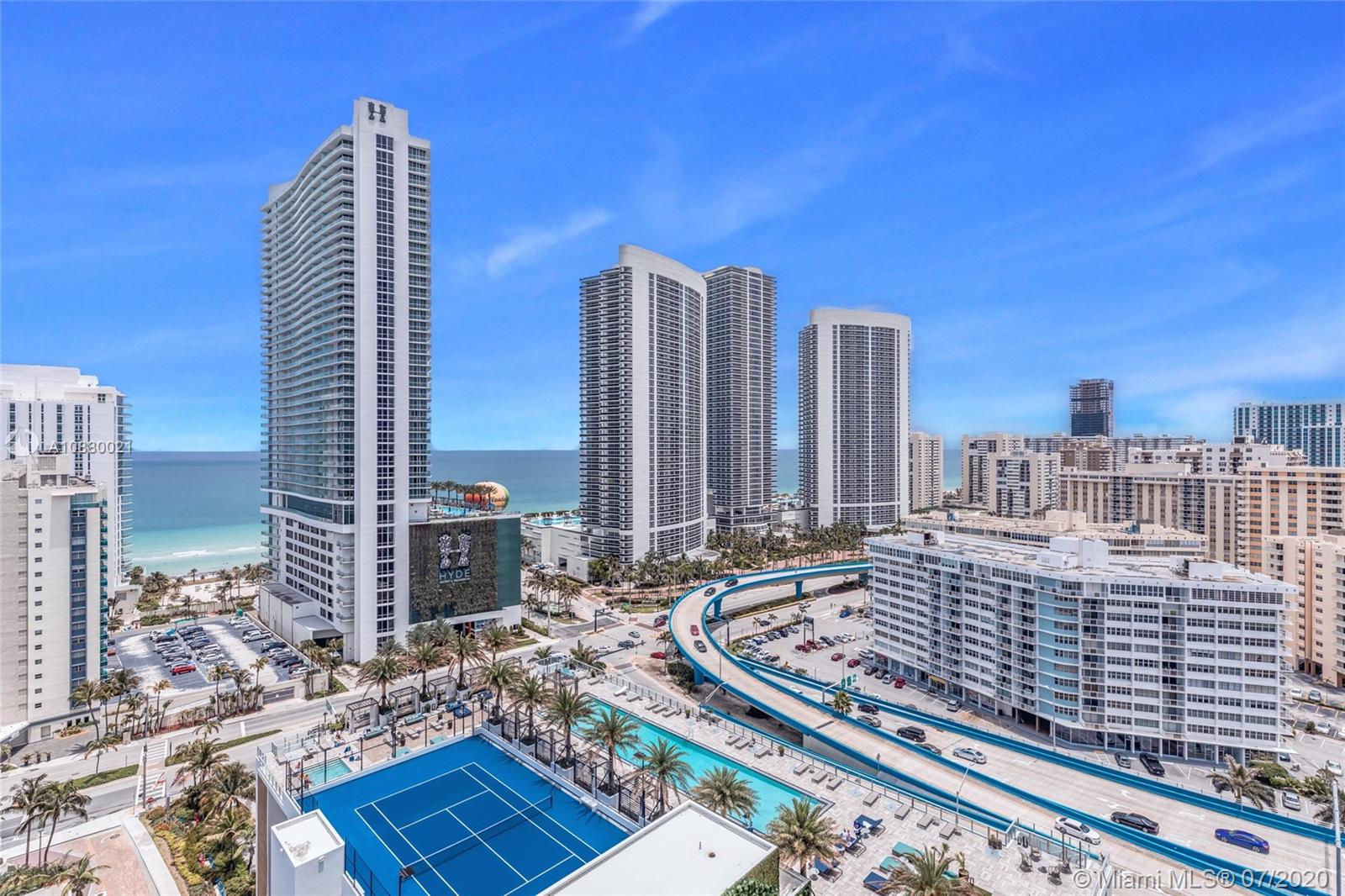 Bright Corner fully furnished condo at Hyde Beach House with Ocean & Intracoastal Views. Hyde a Chic & Modern Hotel, features the most favorable, restriction-free, Hotel Rental program. Enjoy Room Service and Daily Housekeeping. Interior features include a master bedroom & bath with soaking tub and shower, owner’s privacy closet, Tile with a cozy wood-looking floors. European style cabinetry, imported quartz counter tops. Tons of closet space. Designer kitchen w/convenient breakfast bar, appliances. Resort style amenities, VIP access to Beach club across the street, beach & concierge services, restaurants, Spa, Lounge, Sports club (jet skis, paddle, kayaks, etc) bar, roof top lounge, gym, open theater, valet, security, and much more.. EZ to show.