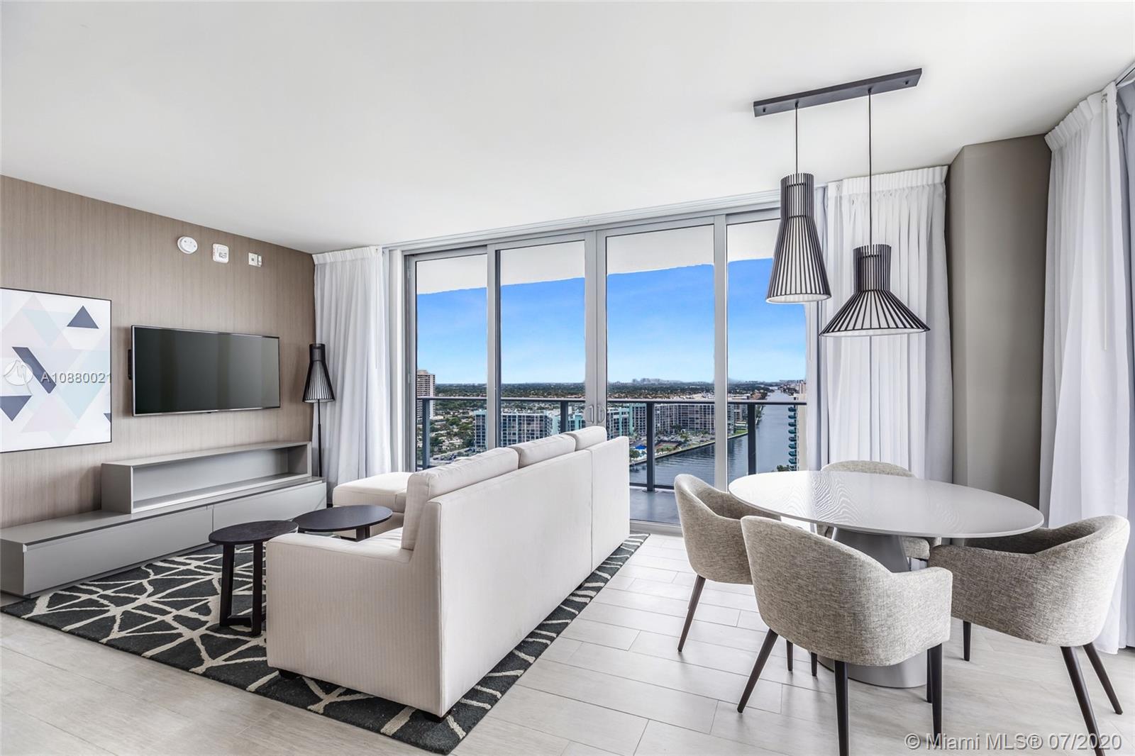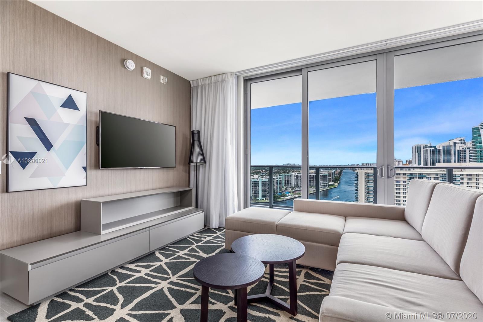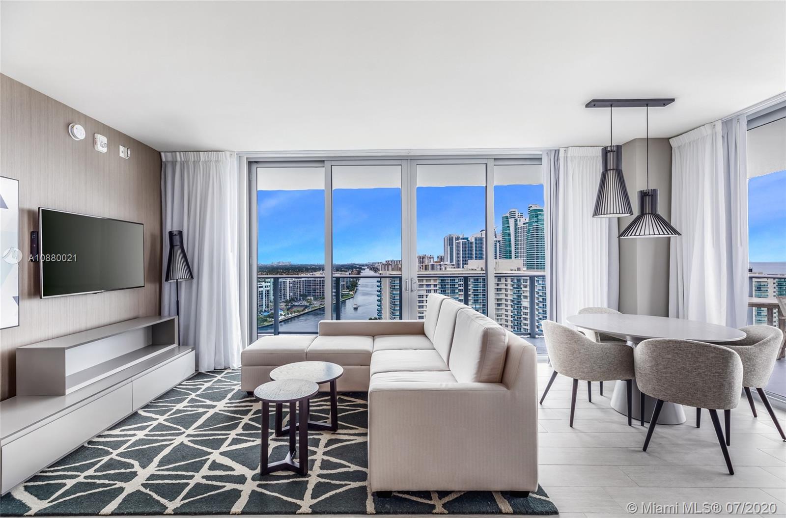 Bright Corner fully furnished condo at Hyde Beach House with Ocean & Intracoastal Views. Hyde a Chic & Modern Hotel, features the most favorable, restriction-free, Hotel Rental program. Enjoy Room Service and Daily Housekeeping. Interior features include a master bedroom & bath with soaking tub and shower, owner’s privacy closet, Tile with a cozy wood-looking floors. European style cabinetry, imported quartz counter tops. Tons of closet space. Designer kitchen w/convenient breakfast bar, appliances. Resort style amenities, VIP access to Beach club across the street, beach & concierge services, restaurants, Spa, Lounge, Sports club (jet skis, paddle, kayaks, etc) bar, roof top lounge, gym, open theater, valet, security, and much more.. EZ to show.