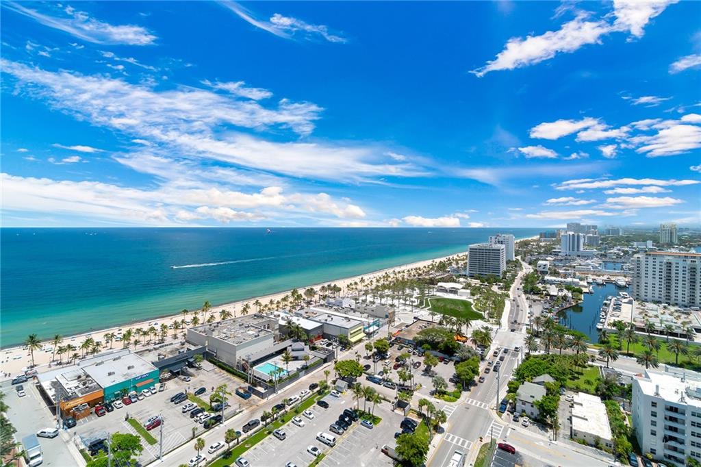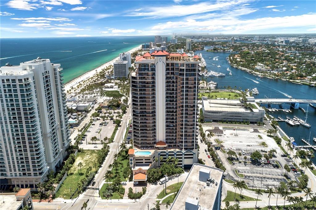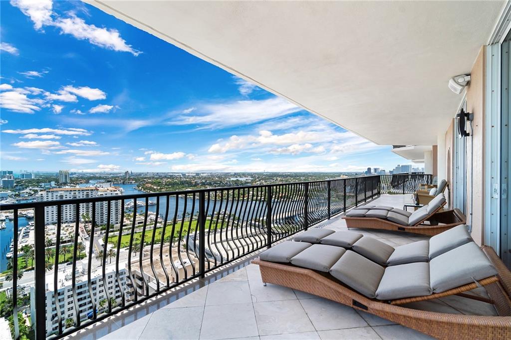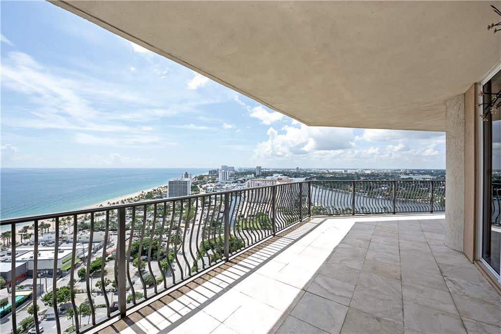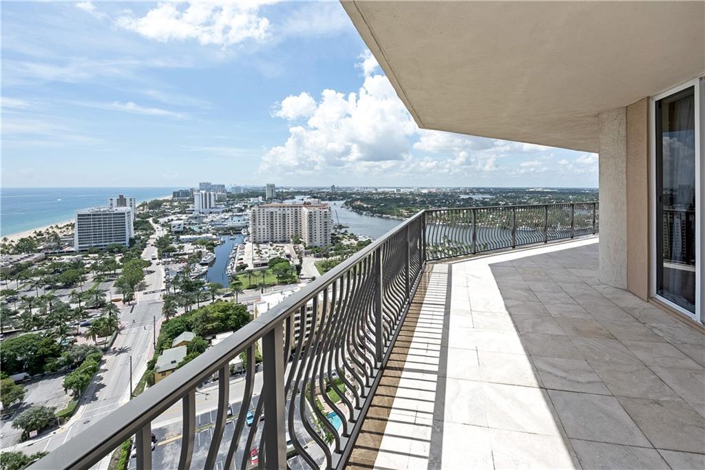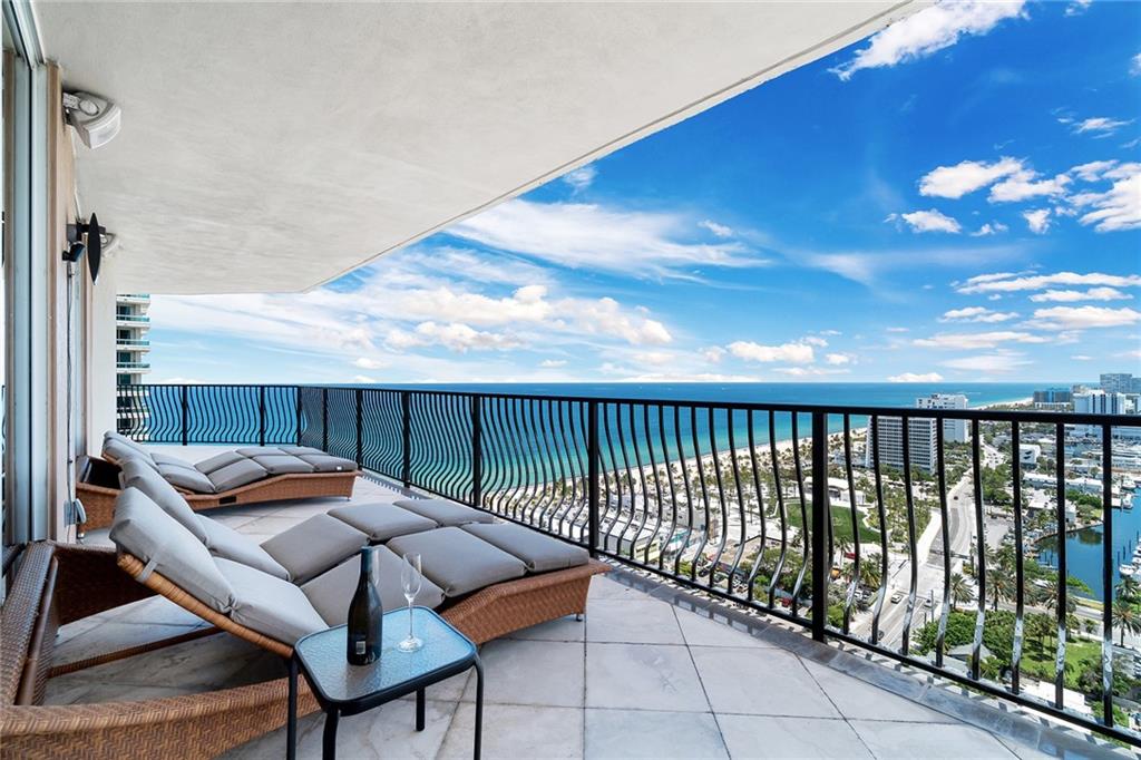 IF YOU ARE LOOKING FOR AN OUT OF THIS WORLD VIEWS - YOU FOUND IT HERE! This SE corner residence is on the 24th floor has 2 Bedroom + Den, 2.5 Baths with spectacular Ocean, Intracoastal and city views. 1100 sq.ft. of incredible wraparound terrace great for entertaining and outdoor living room. Direct elevator access from lobby and garage into a private foyer in the residence. Building is one block from the beach, Las Olas City Marina, water taxi stop, shops and restaurants. Amenities: security, valet, pool, jacuzzi, steam room, sauna, billiards room, gym, club room. 2 pets are welcome!