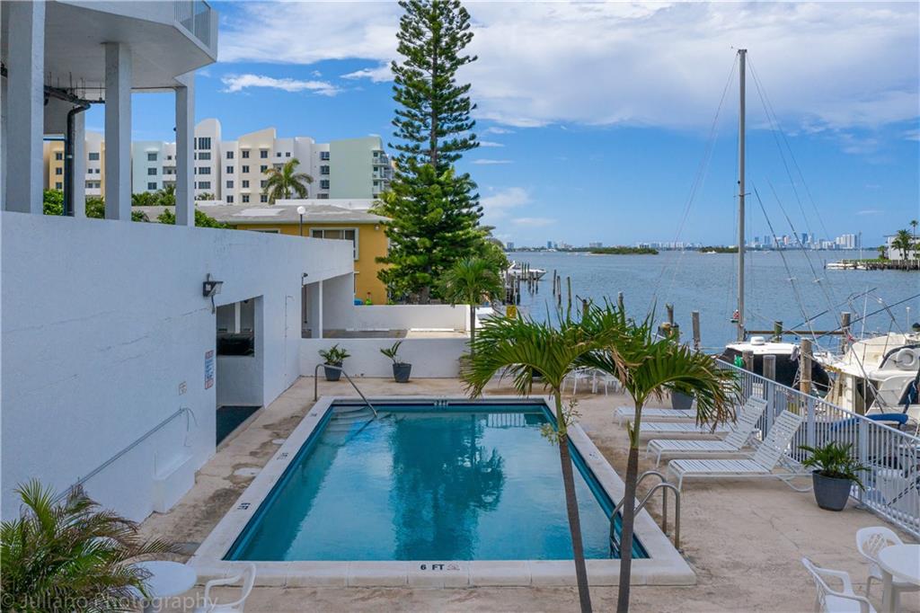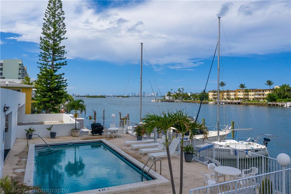 Watch the sunrise from your East facing balcony, with exceptional views of the water and the beautiful bayfront pool, or you can wave to your neighbors on their jet skis. This residence features private balconies in each bedroom, tiled floors throughout, a subway tile backsplash kitchen with cherry wood cabinets, and a wall-mounted wine rack. Located in Magaluf Towers, a boutique building in lovely North Bay Village with only 34 residences. There are only four residences per floor, with a washer and dryer on each floor. The building is very quiet, private, and pet friendly. Available assigned covered parking and guest parking. Minutes from Miami Beach, Upper Eastside, Little River, Design District, and Wynwood. It can be rented right after closing, assessment will be paid off by seller.
