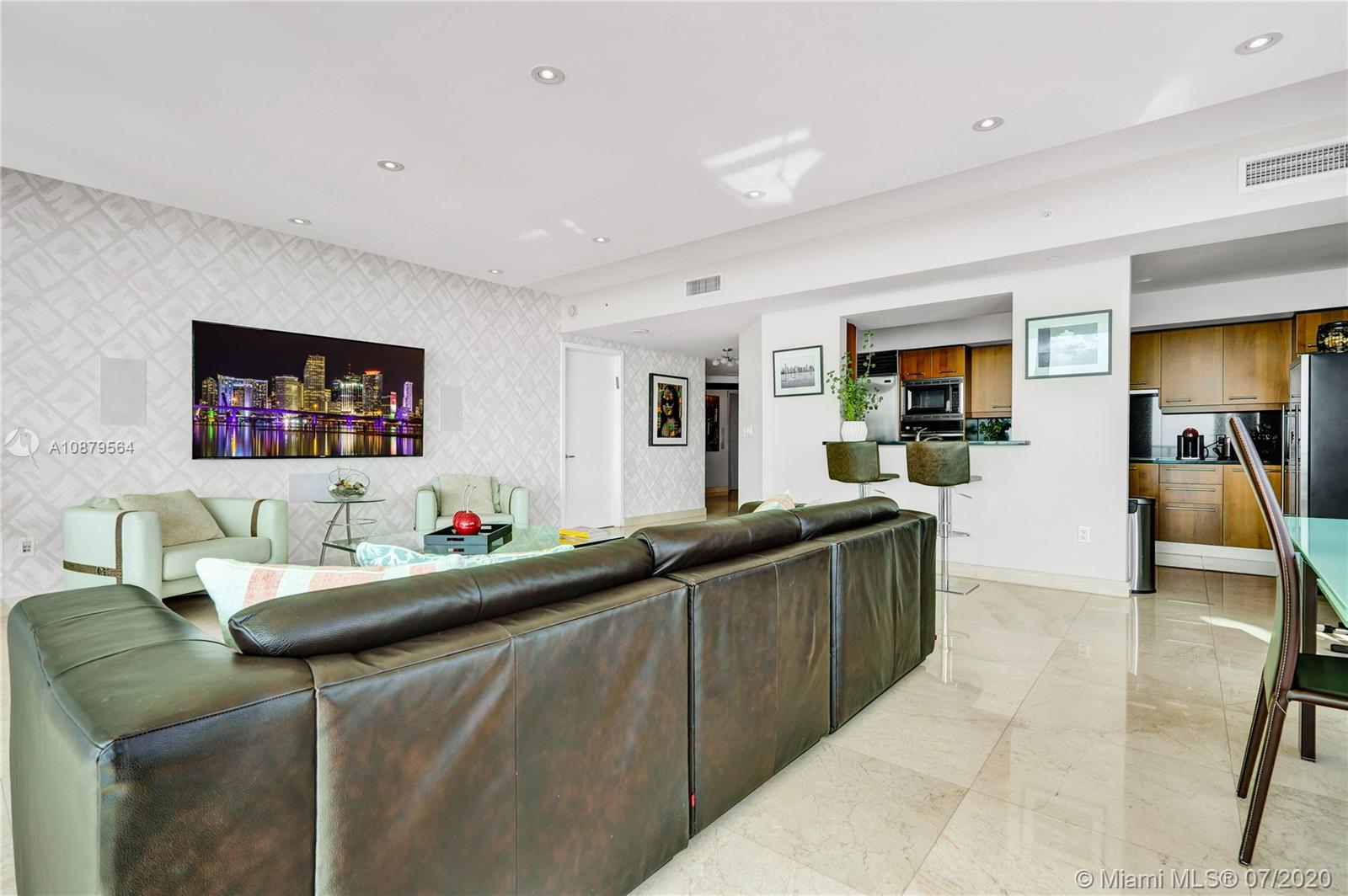 Most sought out corner unit in Miami. This 2/2.5 condo with unobstructed panoramic views of bay, ocean, and city. Approximately $150,000 worth of upgrades/additions, including surround sound system, high-end kitchen appliances — Subzero and Miele, Hunter Douglas window shades and walk-in California Closets (original brand). Italian designed Murphy/Sofa bed by Anima Domus, Bo Concept designer shelves, and a Gary Shear designed drop ceiling! Light beige marble floors and hardwood floors in the bedrooms. Living area sq footage of 1878 sq ft plus a gorgeous 360 sq ft balcony! Maintained in immaculate condition by the owner/occupier since purchase in 2013 and never rented out. Only 1 owner ever that lived here.