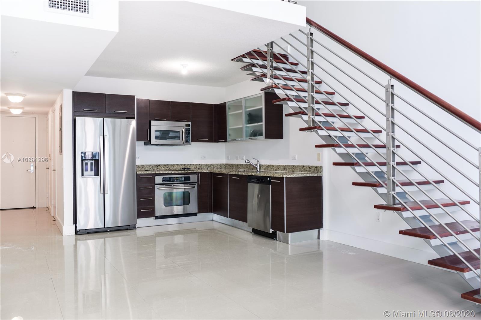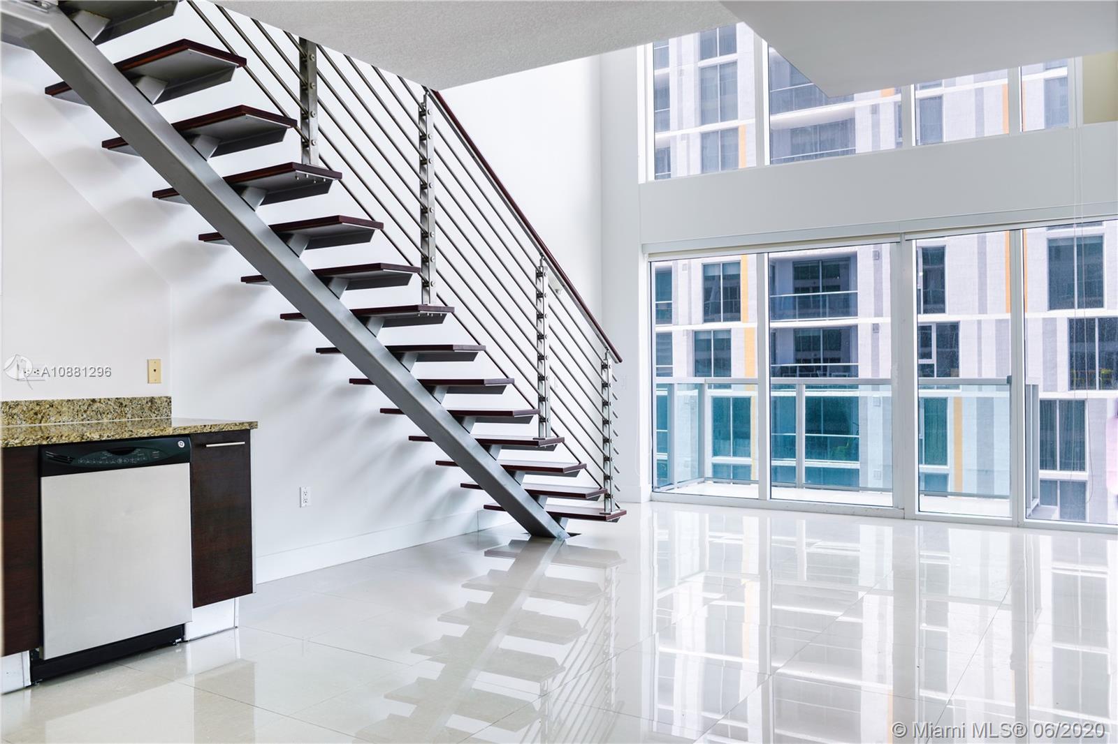 Amazing two story loft condo with city & river views. Spacious & very bright, 1 Bedroom, & 1.5 baths. Large open master suite upstairs with huge walking closet & master bath with double vanity, shower/jacuzzi tub, & washer/dryer. Plenty of room downstairs, 1/2 guest bathroom on entry level with open kitchen & living space. Tiled throughout & blacks outs from floor to ceiling. One assigned parking space. Valet parking for guests. State of the art amenities, heated pool, fitness center, SPA, 24 Hour Security, among others. Next to metro mover station, Brickell City Center, restaurants, shops & night life. Easy to show!
