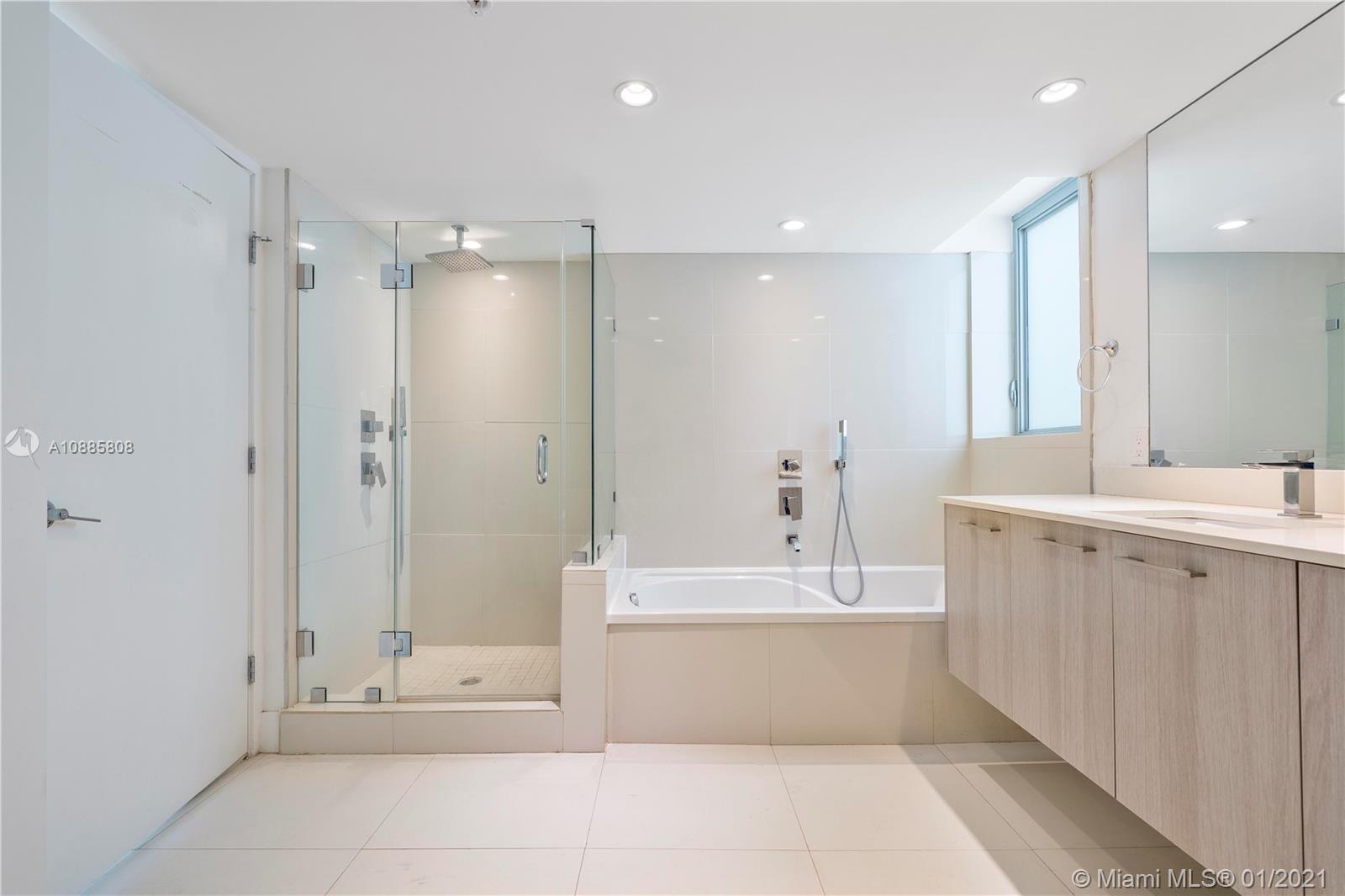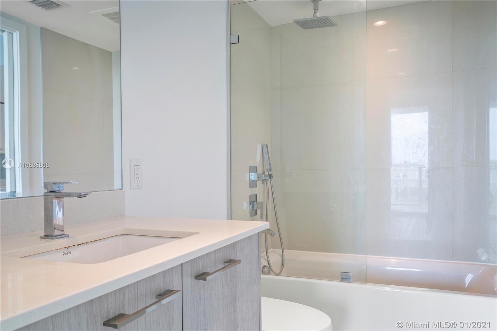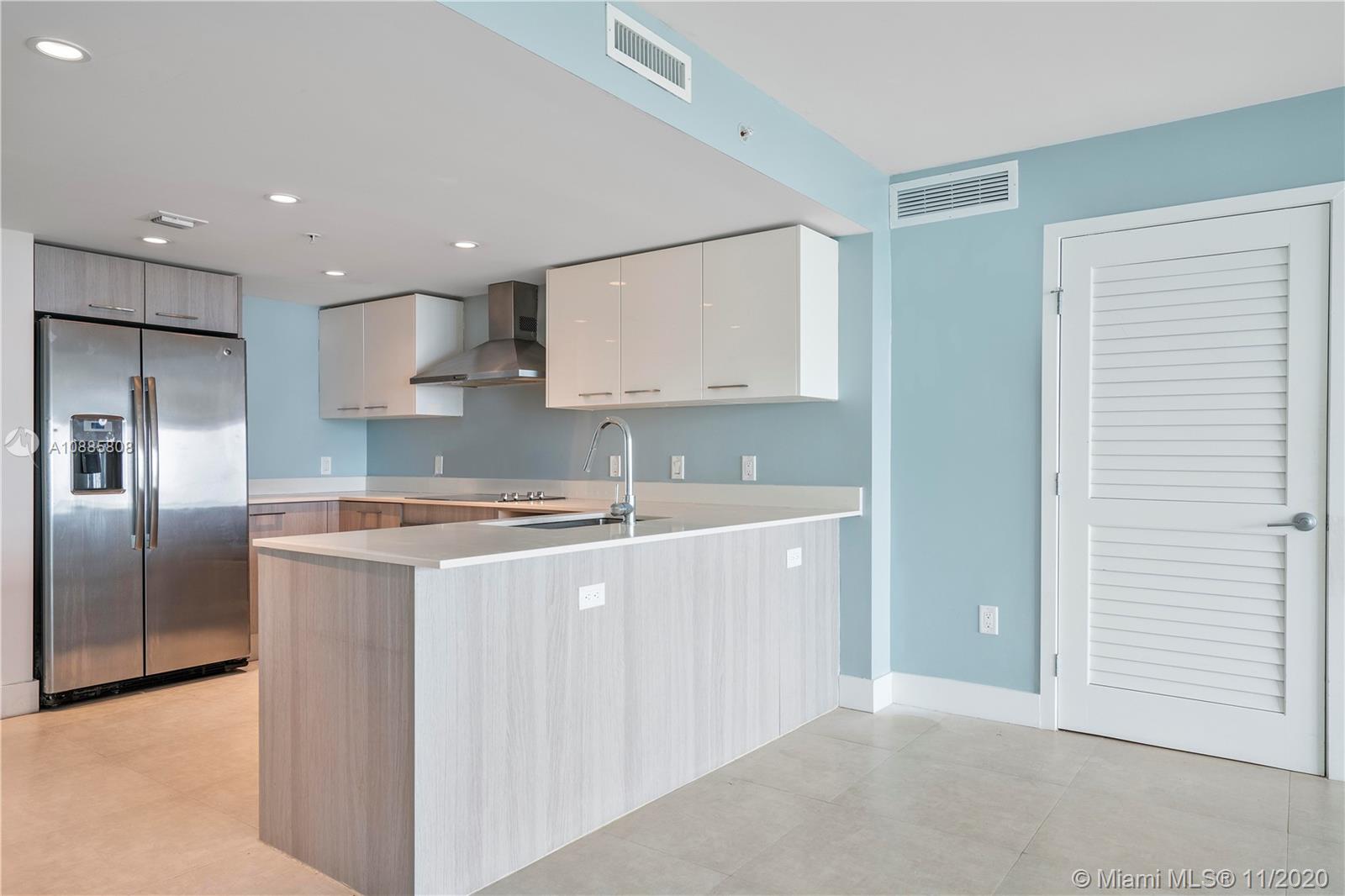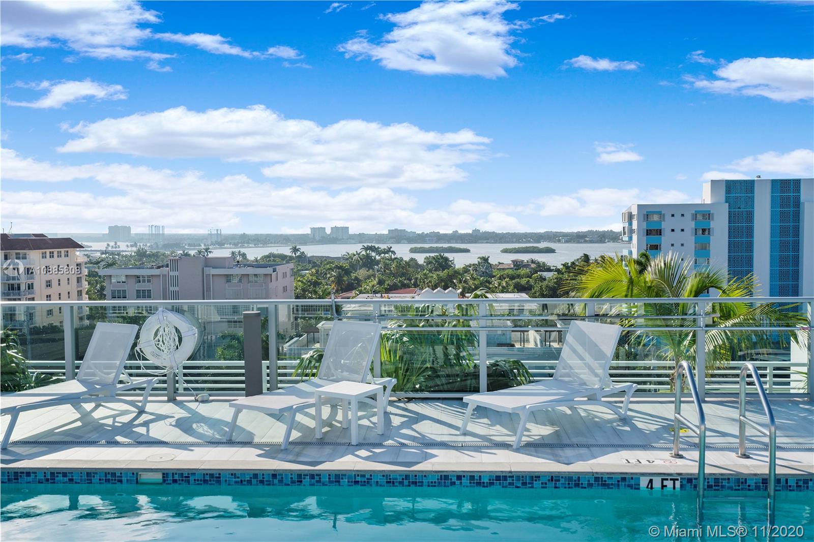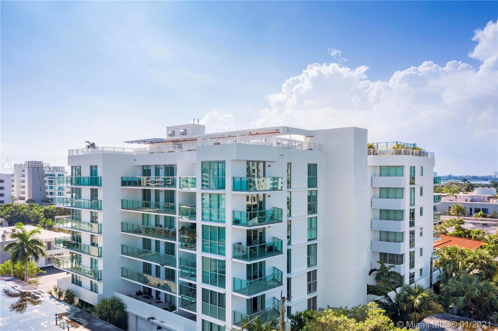 Built in 2018, this luxury boutique style building is located in the perfect location. This unit has 2 bedrooms and 2 bathrooms plus a den/third bedroom with custom glass sliding doors. Modern kitchen with European stainless steel appliances, floor to ceiling impact windows, tile throughout, washer and dryer inside, built in wine refrigerator. Gorgeous sunset views from the oversized 28 foot terrace and from the rooftop infinity pool and hot tub. Unit comes with 2 assigned parking spaces with a storage cage in the garage. Walking distance to shopping, places of worship, and A+ Bay Harbor K-8 Education Center. Great for investment opportunity. Unit is currently rented through November 2021 at $2,700 per Month. 24 hour notice needed for showing.