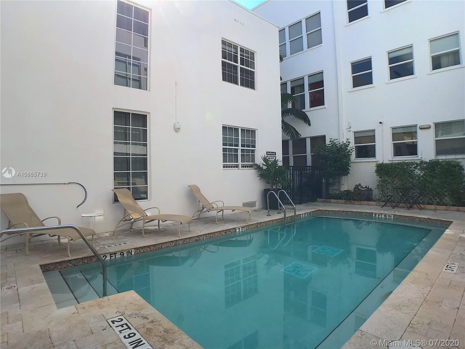Priced to Sell! Two-story condo just 3 blocks from the beach & in the neighborhood of South of Fifth. Condo features an abundance of natural light, 20 ft ceilings, impact windows & door, open kitchen, washer/dryer and travertine flooring. Building offers a heated pool, barbecue area, bicycle parking and tranquil & lush landscaped grounds for its resident & guest. The Fountain is a timeless Art Deco boutique building, completely rebuilt in 2007 & is meticulously maintained & well managed. Next to A-rated South Pointe Elementary, the best restaurants and nightlife all within walking distance. Income producing investment opportunity with flexible rental policy as per condo docs & association.