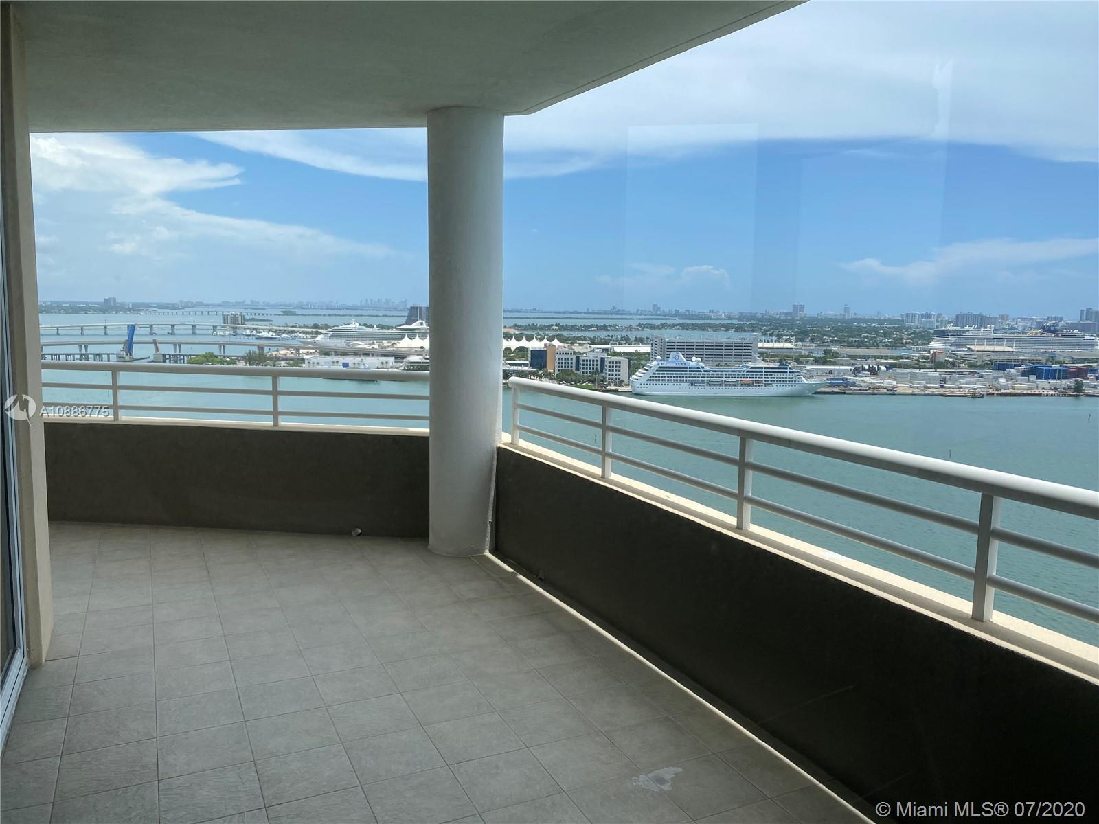 Enjoy Brickell Key Living!! Luxury and private condominium with breathtaking unobstructed water views overlooking Biscayne Bay, Port of Miami amazing 3BD/2.5BA, 400 sqft wraparound balcony with panoramic views, high ceilings, wood floors, spacious kitchen with granite countertops, split floor plan with oversized master bedroom, walking closets and more. 2 parking spaces assigned and all the amenities of a Luxury high rise. Two Tequesta includes 24h security, Concierge, valet, pool, tennis court, squash, 2 level fitness center and more. Easy to show.