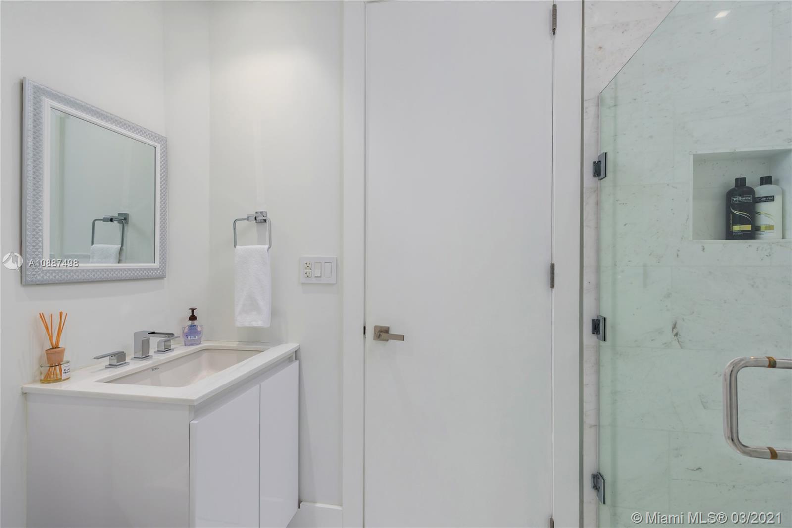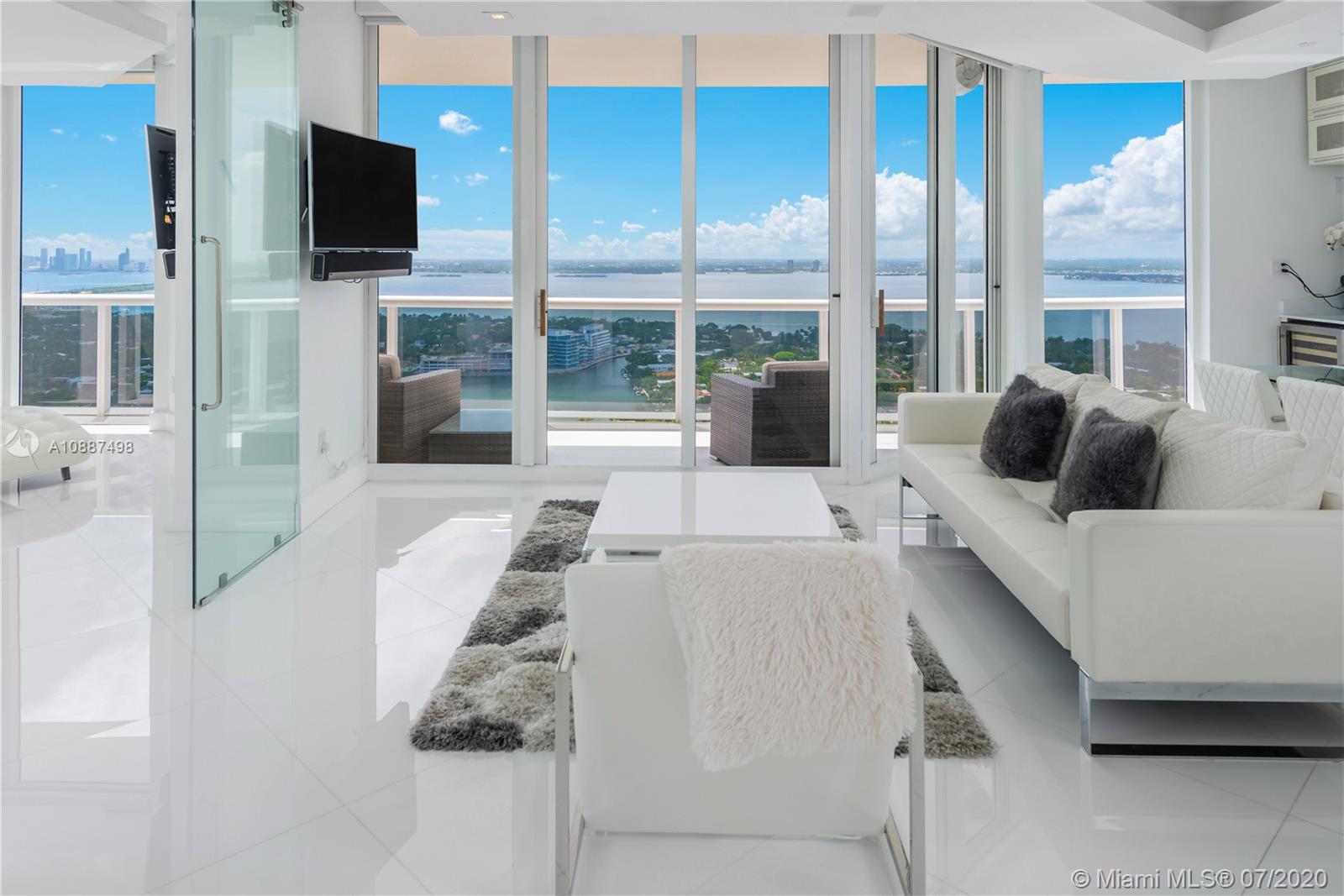 Enjoy breathtaking views of the bay and city skyline from this one-of-a-kind designed penthouse. Throughout the condo are coveted features including floor- to -ceiling windows providing plenty of natural lighting; electric shades; LED custom lighting, high ceilings & marble floors throughout. The kitchen opens to a large living and dining room area, with top of the line appliances. Expansive suite bedroom is a showcase. Being offered furnished. The Blue Diamond Condo is one of Miami Beach’s most sought after addresses. Enjoy luxury beachfront living with five-star resort-style amenities.