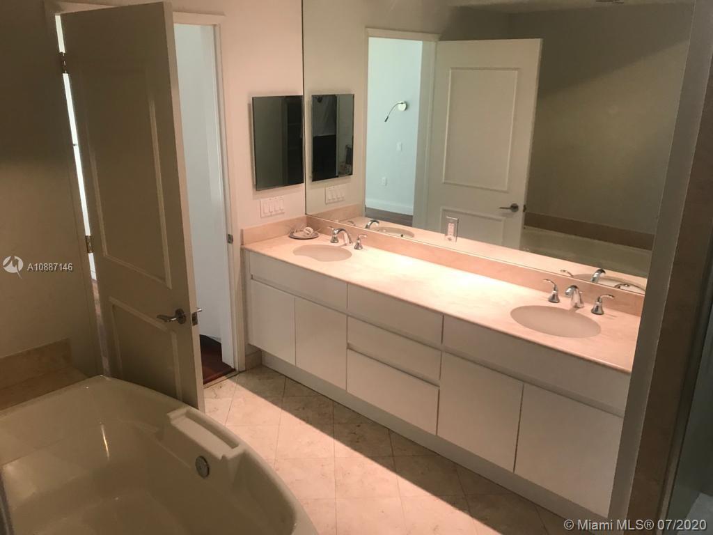 Unique Penthouse plan offers a spacious & very bright 2 bed / 2 bath unit in exclusive Ocean Club. Private elevator into unit; distinct floor plan to other units - doesn't have the hallways that overlook into the 2nd bedroom windows providing more privacy. Beautiful wood floors, open kitchen, split plan; each bedroom has a balcony. Master bedroom & living room balcony have great views overlooking the lake, & 2nd bedroom balcony & kitchen face the palm trees & the Miami downtown/Brickell Skyline view. Two parking spaces assigned; one covered, & one outside. Includes separate storage in the garage level. Per tax rolls 1450 sq. ft., but Seller believes it to be 1572 sq. ft. Enjoy full resort style amenities including full service spa, gym, tennis restaurant, beach, Olympic pool, & more.