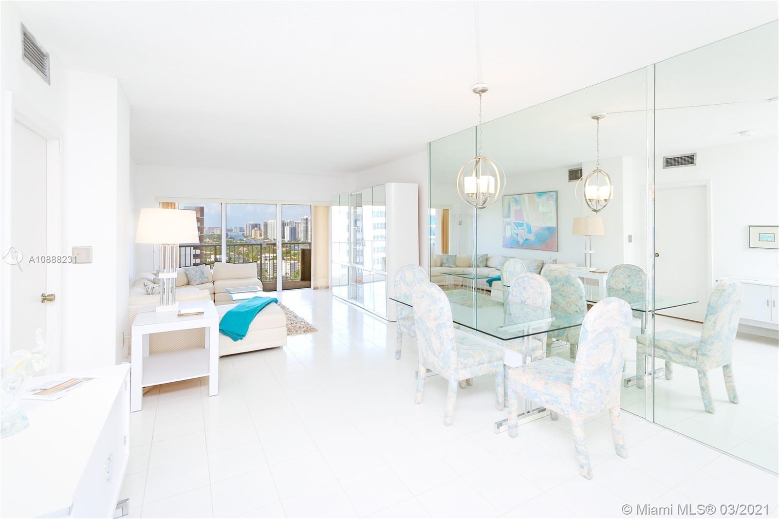 IT'S ALL ABOUT THE VIEW! From the moment you walk into the unit you see a spectacular view from the 21st floor. Resort style amenities include, Beach Access, 2 Restaurants, 2 heated pools, snack bar, 2 mini-marts, 2 Fitness gyms, Sauna & Steam rooms, Beauty salon, Tennis courts, Marina w/dock available, putting golf, Billiard rooms, Shuffleboard, Basketball, kids playground, barbecue area, Beach Service, 24 hr Security, Valet. Air conditioning, Basic cable and internet included in the maintenance. EASY TO SHOW ON LOCKBOX go on show assist.