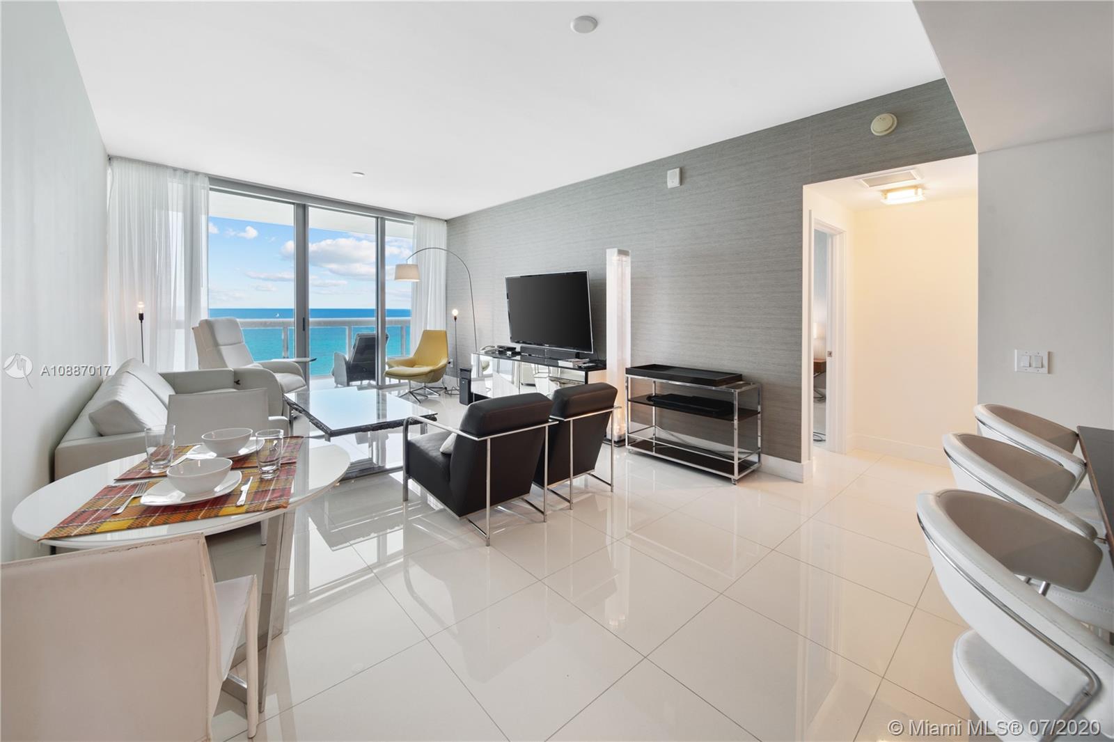 Direct ocean and sunset intercostal views from this beautiful 3 bed/ 3 bath flow through unit. Floor to ceiling windows throughout with powered window treatments. Fully equipped Kitchen with top of the line appliances including sub zero refrigerator and Italian cabinetry. Gorgeous interiors. As an owner, you’ll enjoy every luxury of oceanfront living with privileges to Carillon Resort's exclusive services and amenities which has been voted as a number 1 Resort in Florida. Private restaurants, four resort style pools, health wellness center, 24-hour lobby service. Convenient location to Publix market and several restaurants and cafes. Quick uber ride to South Beach, Wynwood, Downtown Aventura and airports. Unit is rented until April 25, 2021