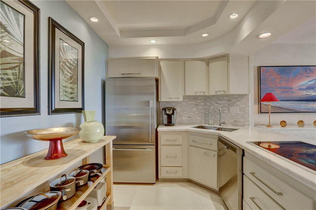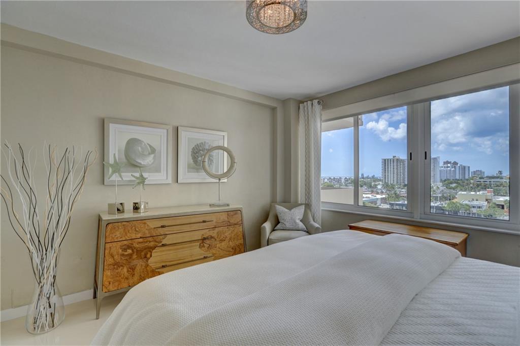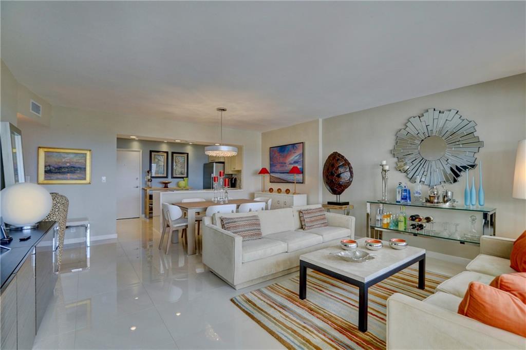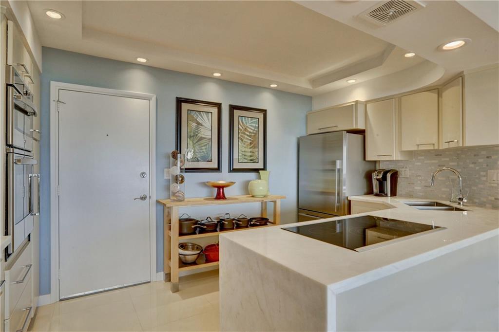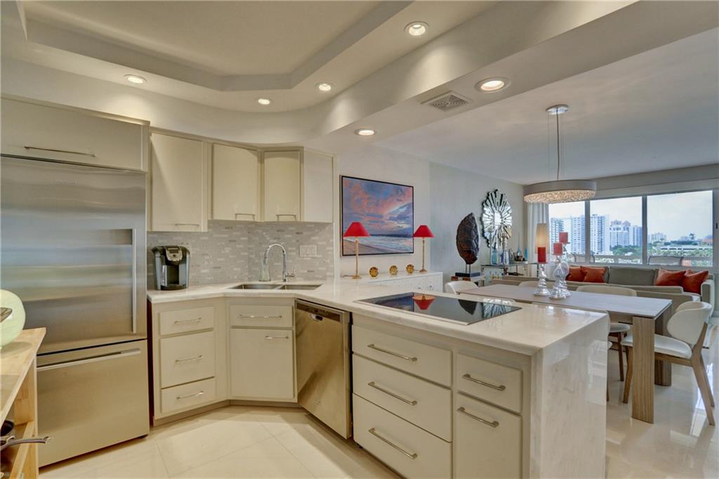 This impeccably designed, meticulously maintained, jewel of Coral Ridge Towers is ready for you to make it your own. From the moment you step through the entry foyer until you reach the generously sized master bedroom it truly defines modern elegance. The stainless-steel appointed kitchen opens directly into the living areas grounded by a beautiful white quartz waterfall counter. The huge walk-in frame-less shower with its European inspired finishes and shower panel massage tower, truly make this a complete package of all-in luxury. To top it off, there is the spacious balcony offering a wonderful place to relax with inspiring southern facing ocean and seaside town views. ***Dining Room Chandelier is not included in sale.***