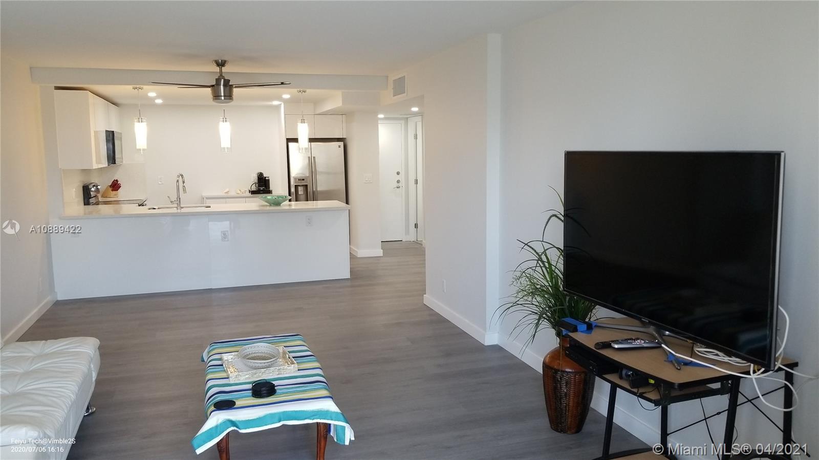 Amazing totally renovated 1 bedroom & 2 full baths, just steps to the beach across the street, new contemporary kitchen & bathrooms, new flooring, doors and fixtures, enjoy the pool facing the intracoastal, full equipped fitness room, great location, 2 minutes to Hollywood Beach Board Walk, restaurants, banks and shopping, security on lobby, easy to show