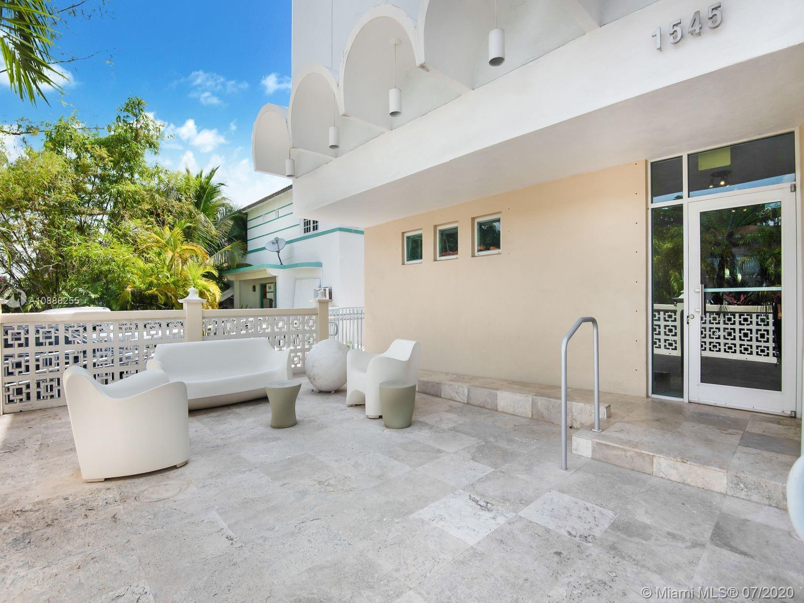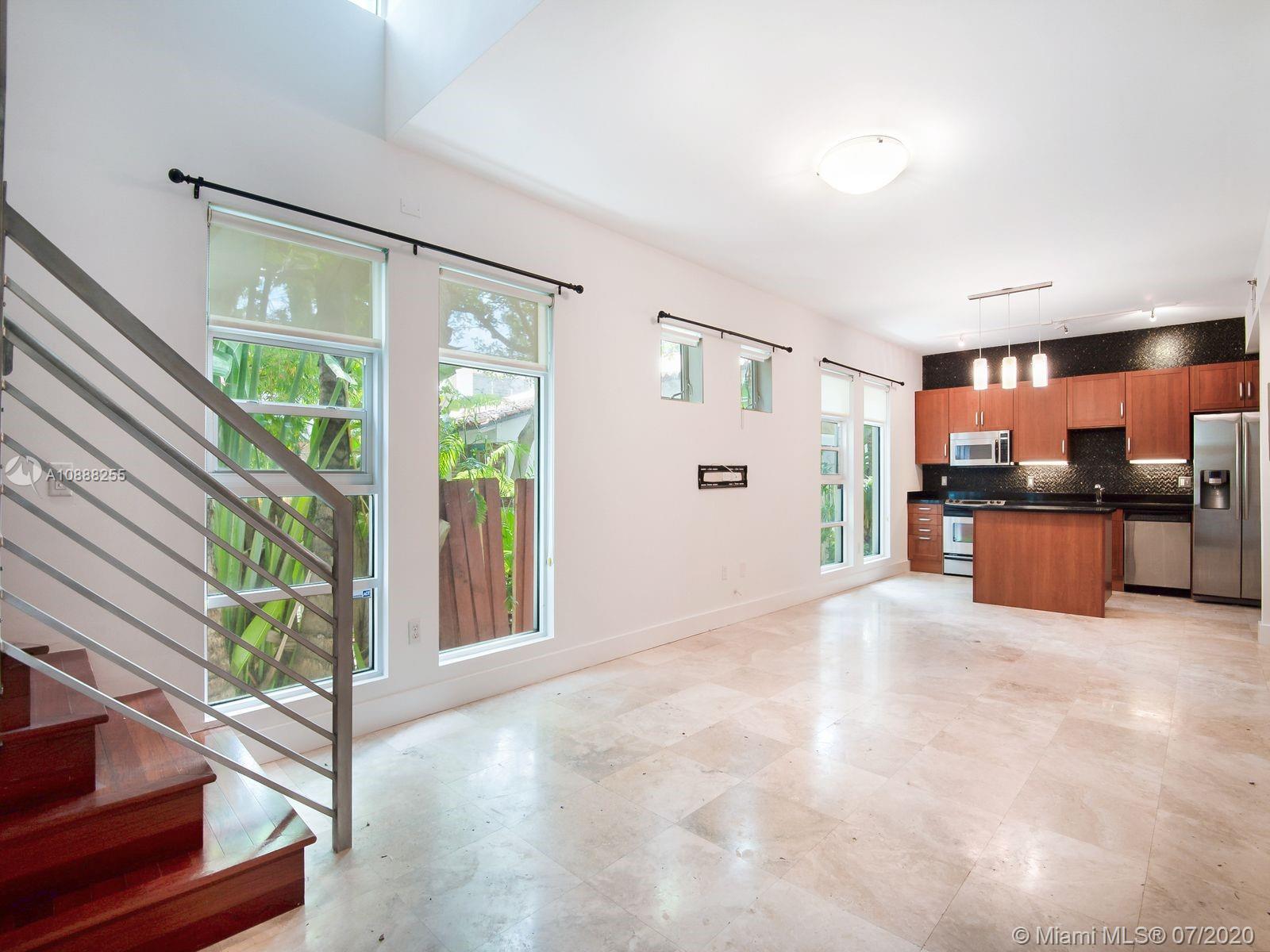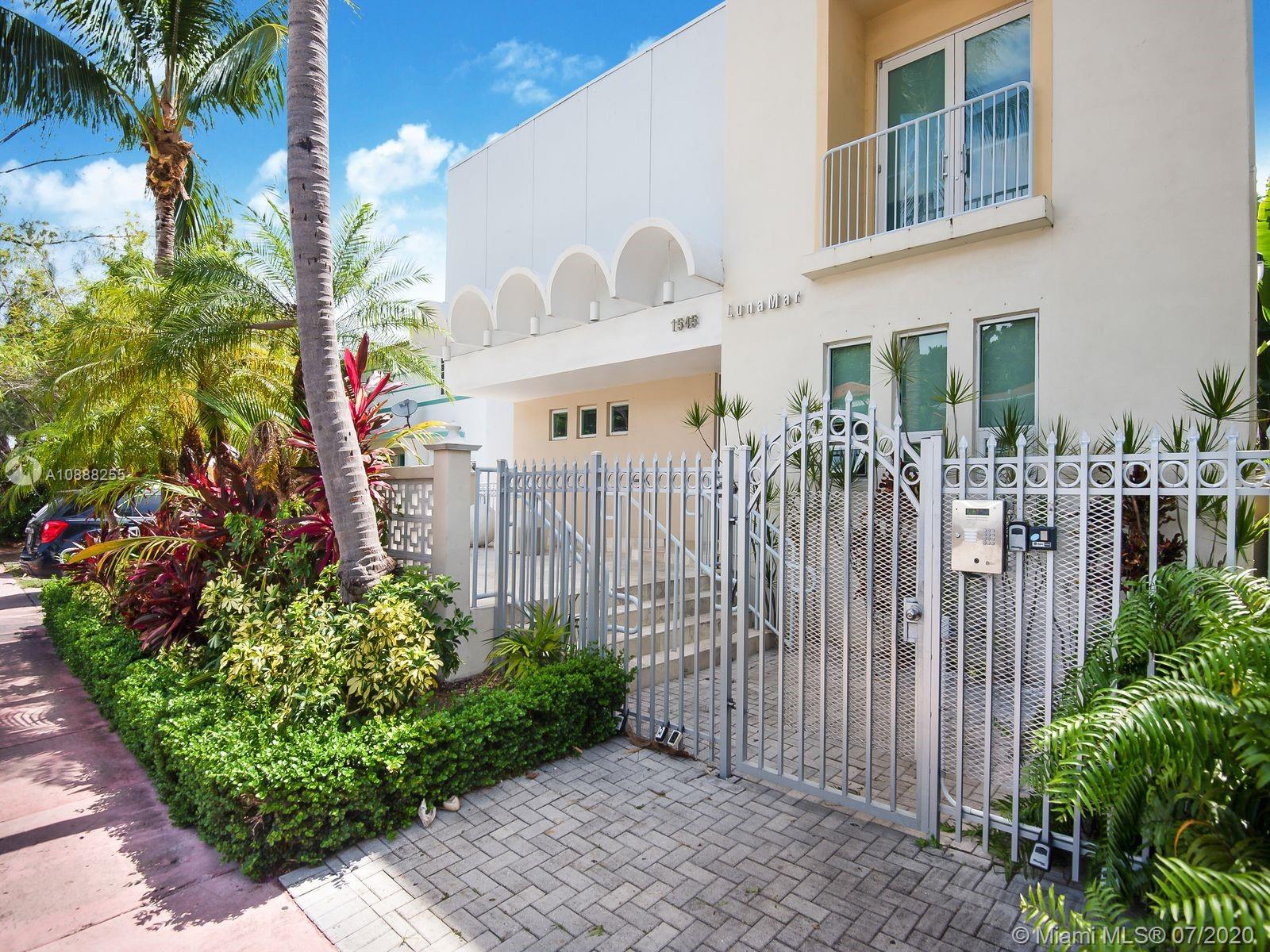 This spacious 2 Bed/2.5 Bath Lunamar Loft is one of just eight townhomes located in one of South Beach's historically restored temples. The first floor features an open kitchen overlooking the living room with travertine marble floors and, 1/2 bath, and 12 foot ceilings. A modern brushed aluminum staircase leads to the 2nd level featuring Brazilian cherry wood floors, a master bedroom suite w/bathroom & guest bedroom with additional full bathroom. Located just steps to Lincoln Road, Espanola Way, and all that South Beach has to offer. Pet friendly and easy to show.