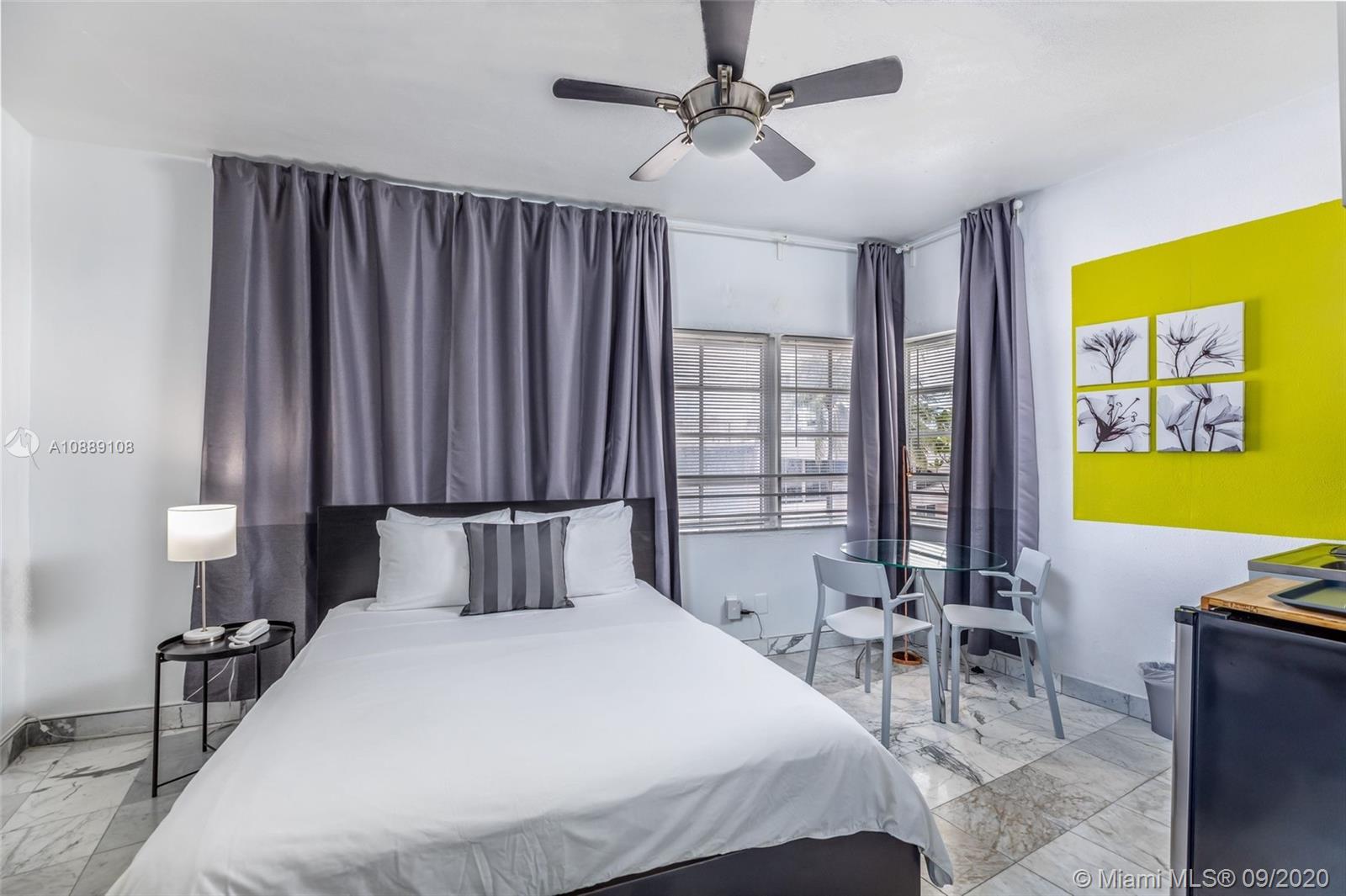 Historic Art Deco Building, Lobby, 24/7 concierge, Elevator, Security cameras, Two blocks from beaches and Ocean Drive Art Deco District, Optional Hotel Program, NO RENTAL RESTRICTIONS. Rent daily/weekly/annually. Sunny and bright fully decorated furnished and equipped studio. Corner facing east and south of Washington Ave. Excellent condition, split air conditioning, Maintenance includes: Building insurance, waste removal, water, hot water, electricity, Cable TV, Internet/Wi-fi, Check ins and Check outs. Full service hotel program available or partial service including: Cleaning, linen, towels, beach towels, shampoo, paper towel, luggage storage.