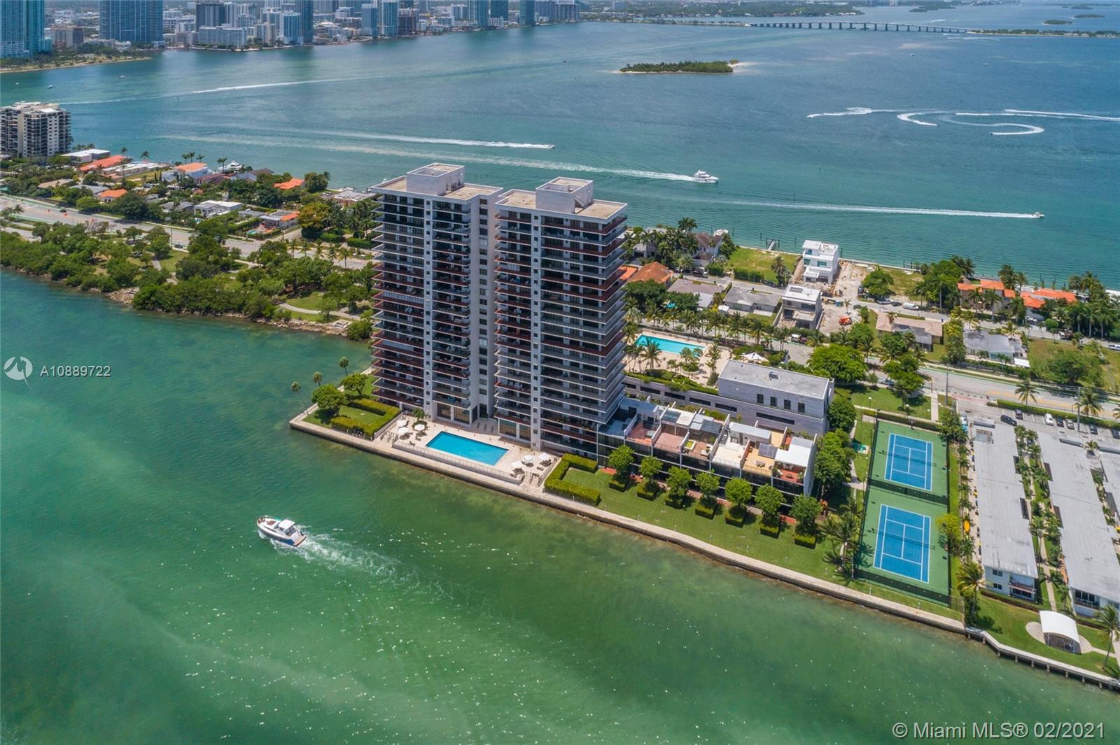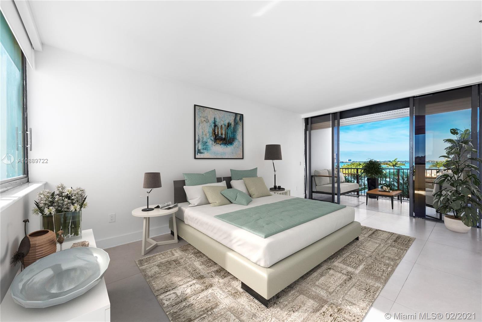 Light & bright sleek white modern residence boasts 2 beds plus den, 2.5 baths, 2,010 SqFt & nearly 700 SqFt of 2 wide terraces overlooking Biscayne Bay, Cruise Ships & Downtown Miami Skyline. Enter through the semi-private elevator landing (only 2 units) into an expansive combined living/dining room area with unobstructed views, a perfect place for a quiet night in or entertaining guests. Enjoy a custom Italian Kitchen providing ample storage space, professional appliance suite & a generously sized stone topped center island. Spacious master offers the ultimate in privacy and magnificent water views through floor-to-ceiling glass doors. Amenities include double height gallery-like lobby, 24 hour security, valet, 2 bayfront pools & tennis courts.. One of the best building in Miami!