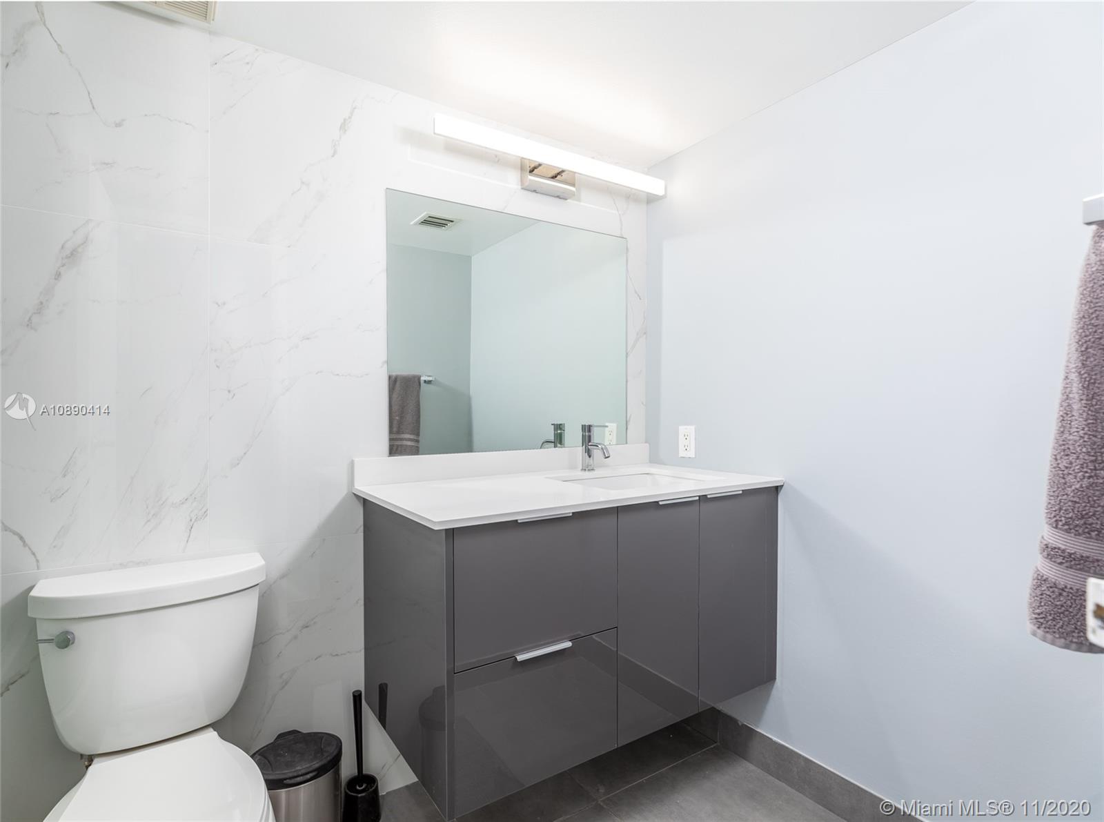 Chic, fully renovated two bedrooms located in the desirable North Bay Village! Enjoy scenic south views of Biscayne Bay and Miami Beach from its vast balcony, accessible from all living areas. Spacious split floor plan for privacy and peace of mind. The kitchen is fully upgraded with maple wood cabinetry, stainless steel appliances, and granite countertops. The unit comes with 2 parking spaces. The building is full of amenities, including 24 hr security, an Olympic-sized swimming pool, Jacuzzi, on-site laundry facilities, stores, a gym, hair salon, restaurants, a marina, and more!