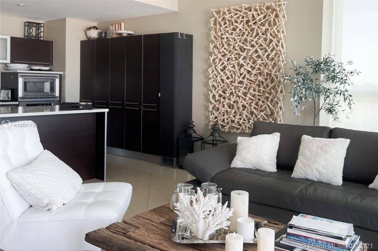 Stunning corner unit 2 bedrooms, 2 bathrooms and a guest bath, with incredible panoramic views. Fully renovated open floor plan kitchen/dining/living, stainless steel appliances, porcelain floors, updated baths, washer and dryer, walk-in closets, central air conditioning, assigned garage space & heated pools, fitness gym, spinning room, sauna, private movie theater & party room,Walking distance to park,American Airlines,Performing Art Center,Design District, Wynwood, and mins from South Beach. Close to Expressways, airport and beach.
