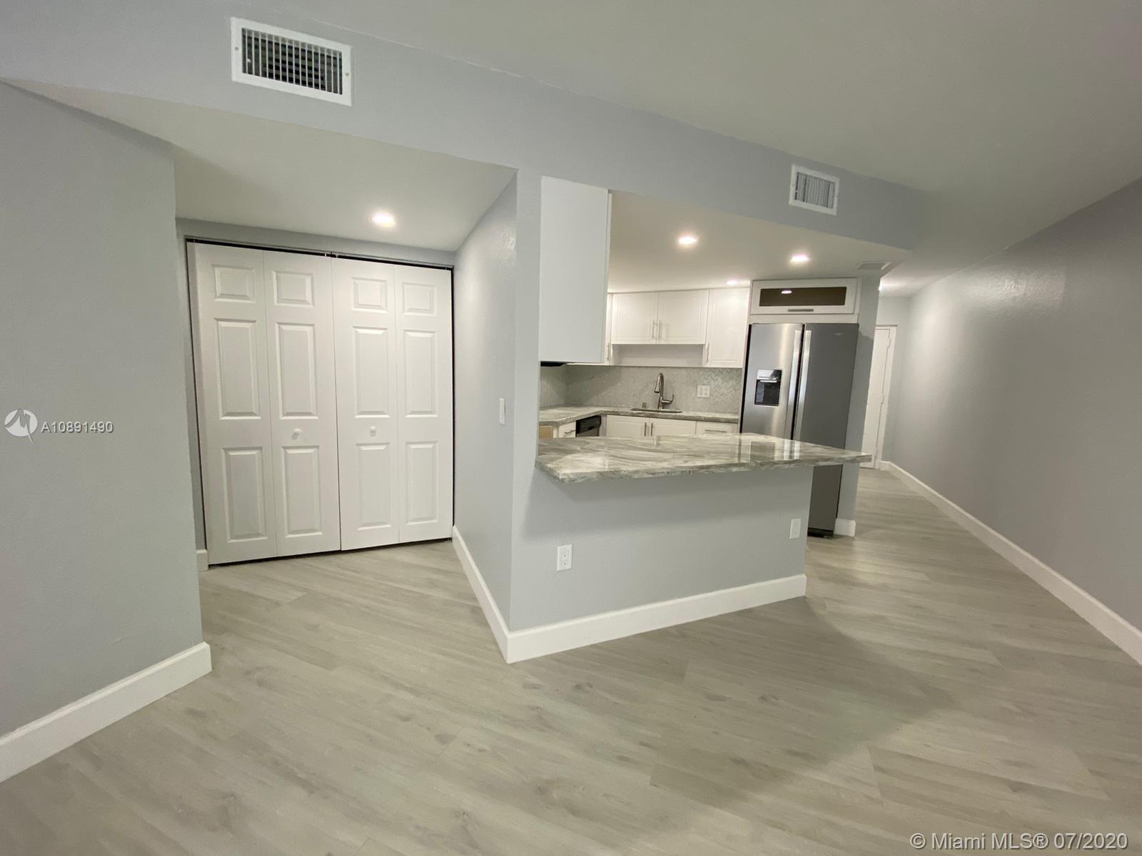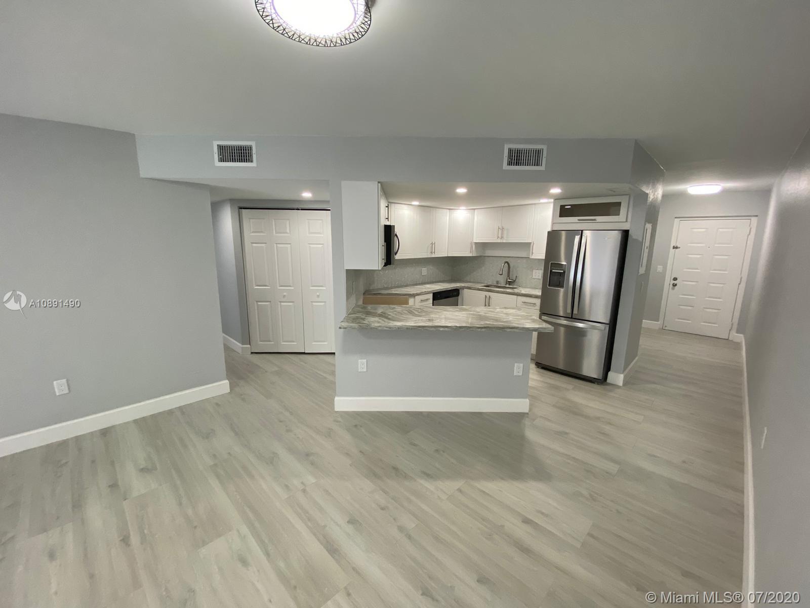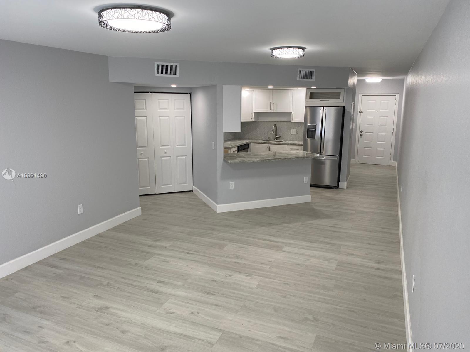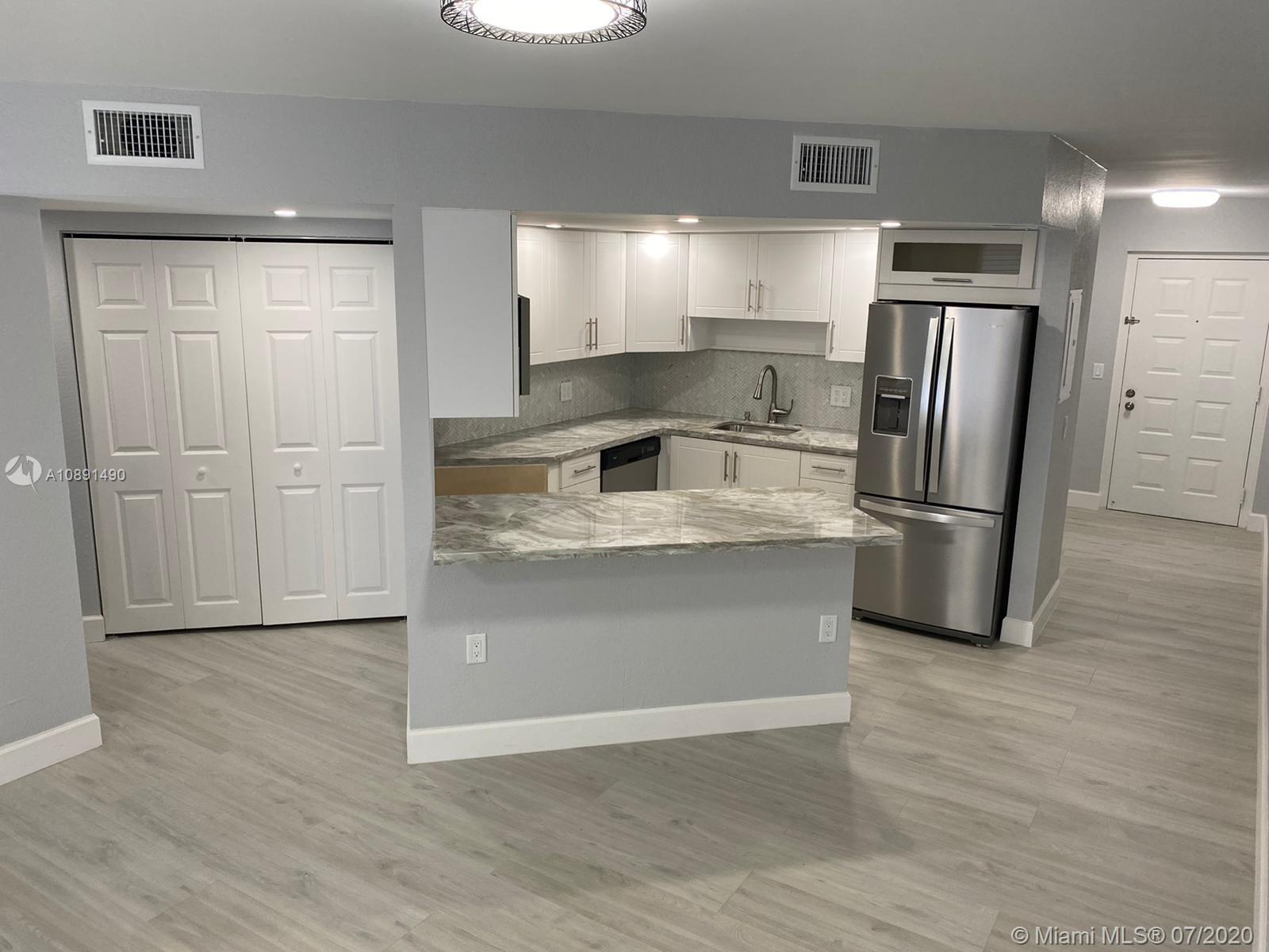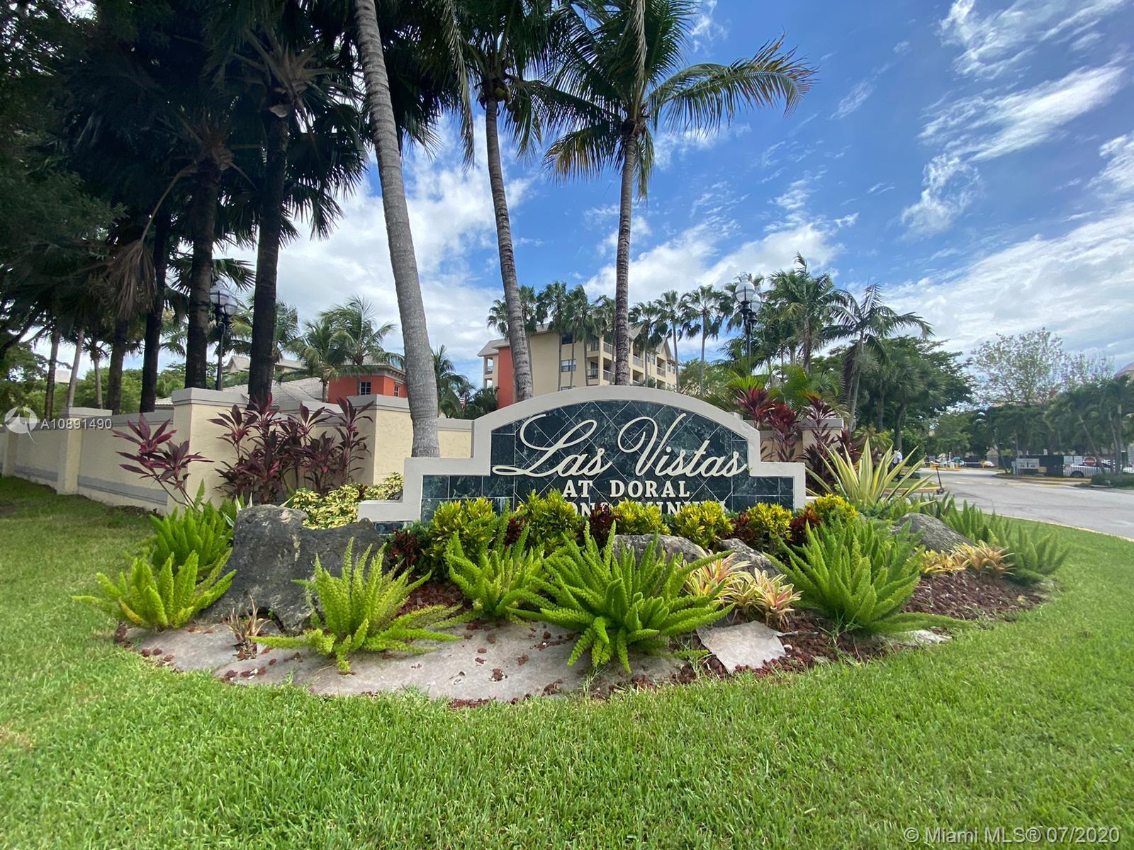 Completely remodeled 2 bedrooms 2 bathrooms in the heart of Doral. Unit features modern kitchen with quartz counter tops, stainless steel appliances, wood grey flooring, zebra blinds, both bathrooms remodeled, very spacious, walk in closets and screened-in porch,inside unit washer & dryer plenty of unassigned parking spaces, 24 hours security, exercise room, lovely pool and hot tub. Easy to show, please call listing agent.