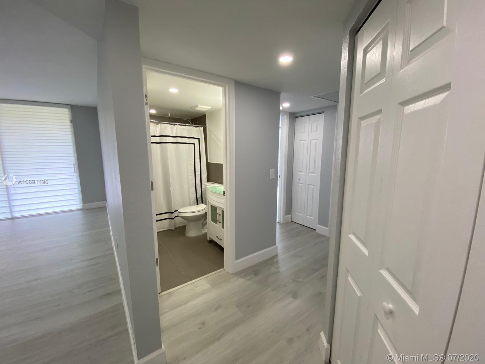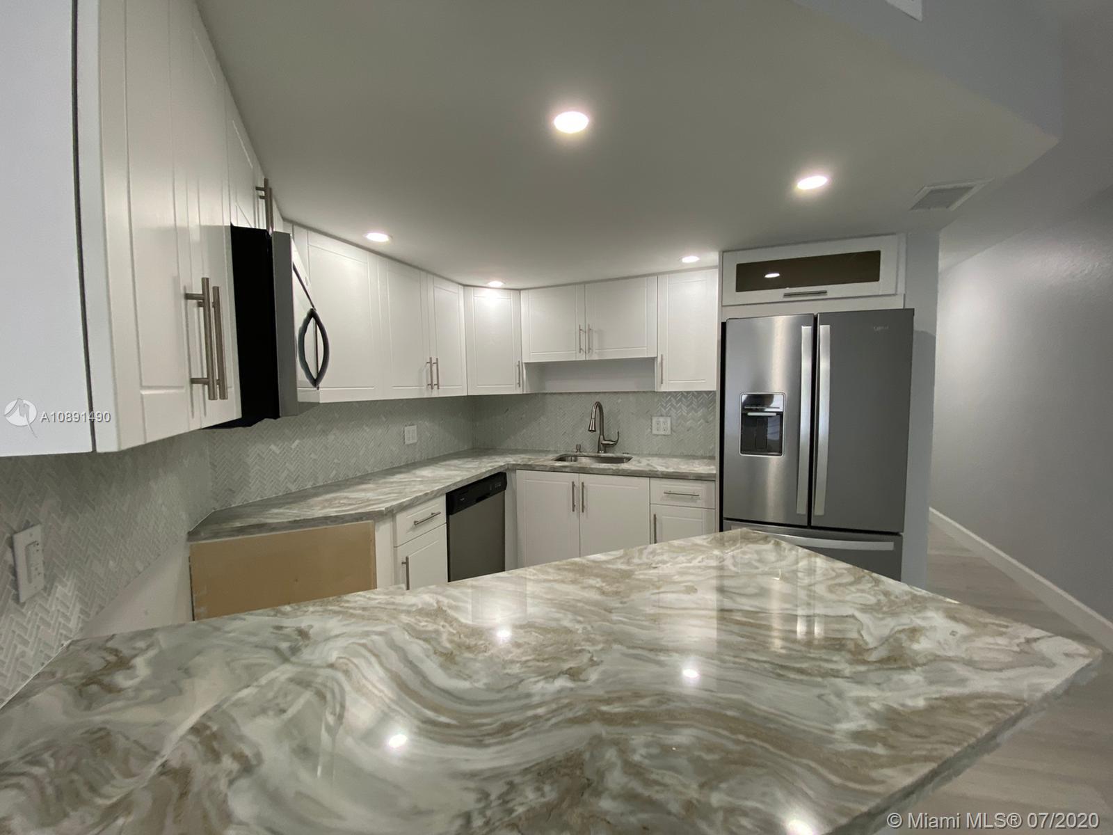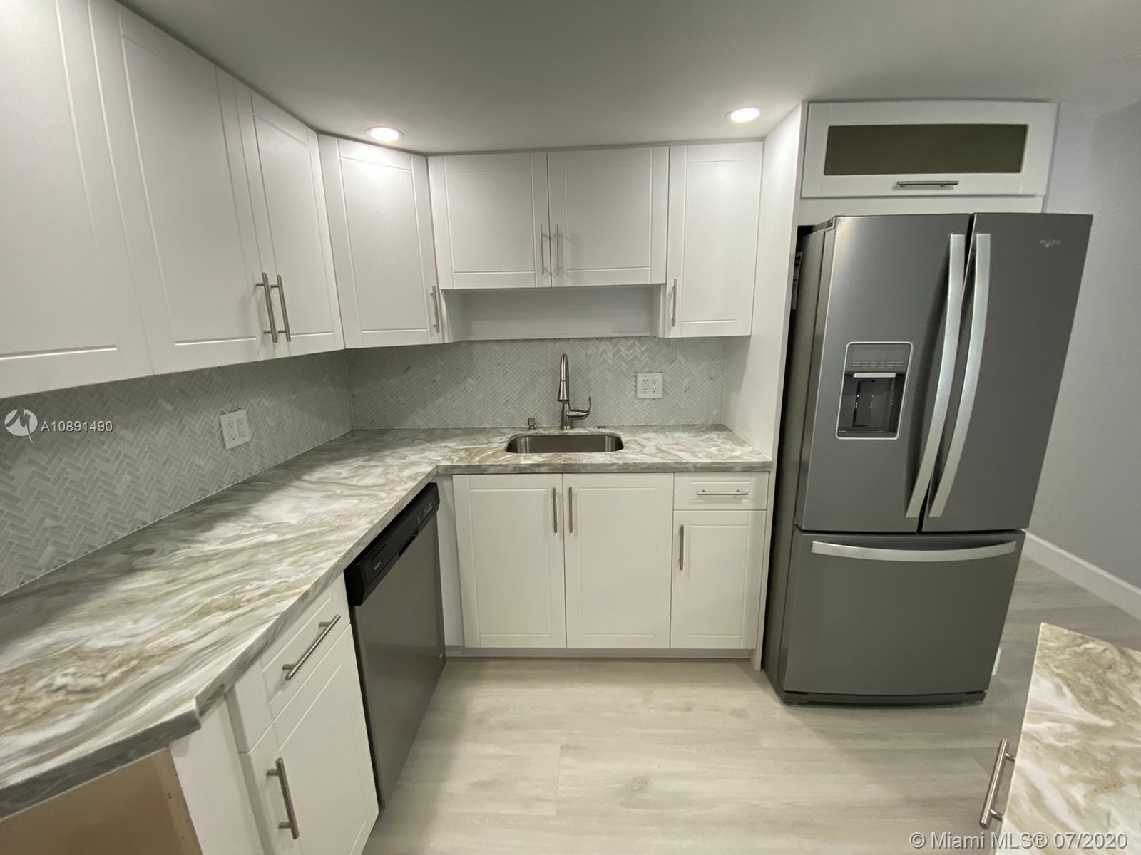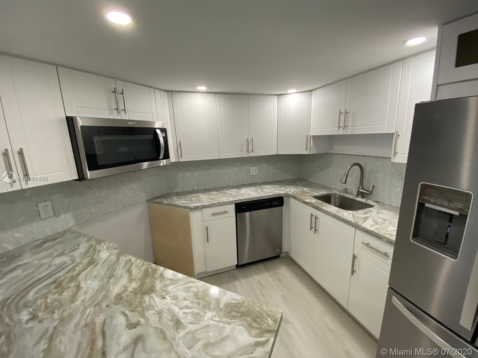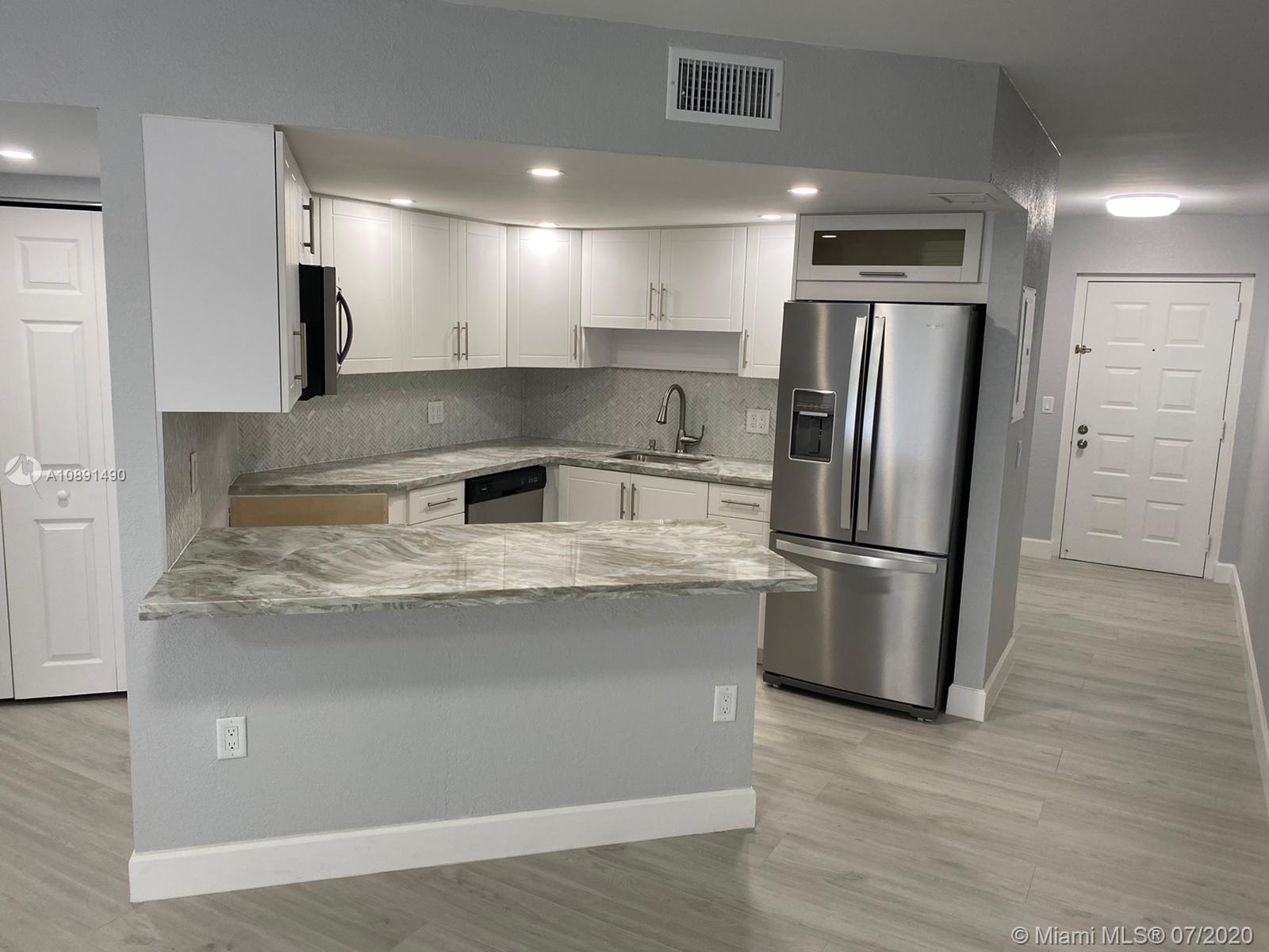 Completely remodeled 2 bedrooms 2 bathrooms in the heart of Doral. Unit features modern kitchen with quartz counter tops, stainless steel appliances, wood grey flooring, zebra blinds, both bathrooms remodeled, very spacious, walk in closets and screened-in porch,inside unit washer & dryer plenty of unassigned parking spaces, 24 hours security, exercise room, lovely pool and hot tub. Easy to show, please call listing agent.