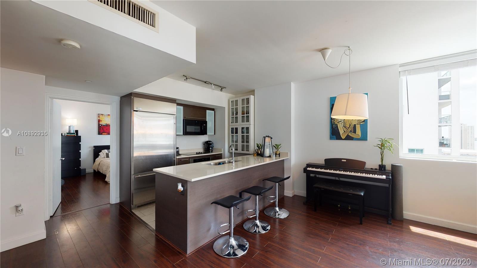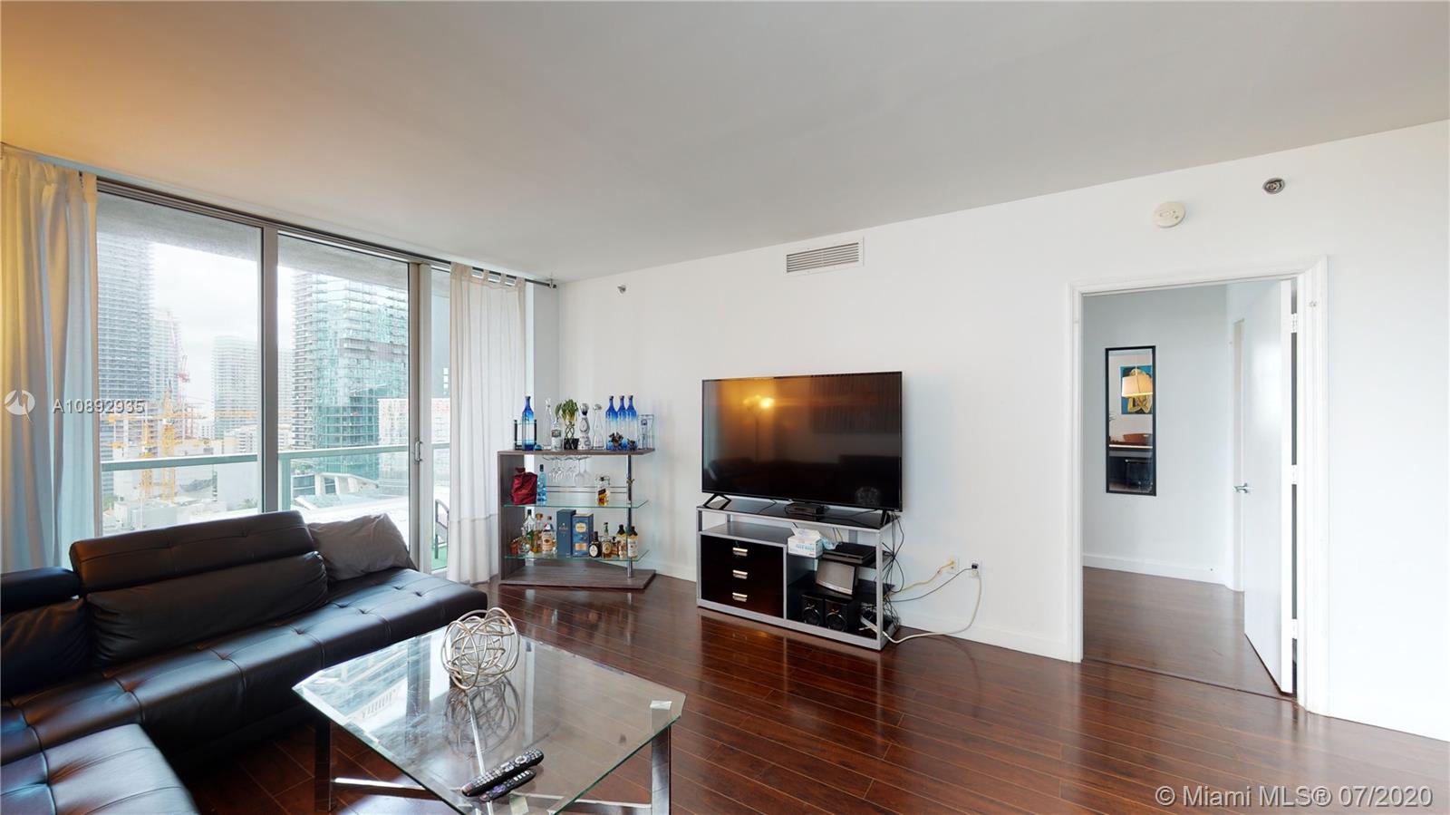 BEST PRICED SPECTACULAR CORNER UNIT! Spacious bedrooms, Wood floors, modern open kitchen with stainless-steel appliances, custom closets. Enjoy beautiful views of Miami River and downtown skyline. Minimum lease term is 30 days- a great option for investors. Centrally located walking distance to the people mover, Brickell financial center, restaurants, Downtown, Marry Brickell Village, the metro mover, and the new Brickell City Center. Minutes away from the New Performant Arts Center, Bayside, and the American Airlines Arena. Enjoy world-class amenities, two swimming pools - including a rooftop pool and sundeck on the 42nd floor, and a swimming pool with poolside cabanas on the 11th floor; concierge 24/7, valet parking, spa, state of the Art Gym, Theater, and a party room; among others.