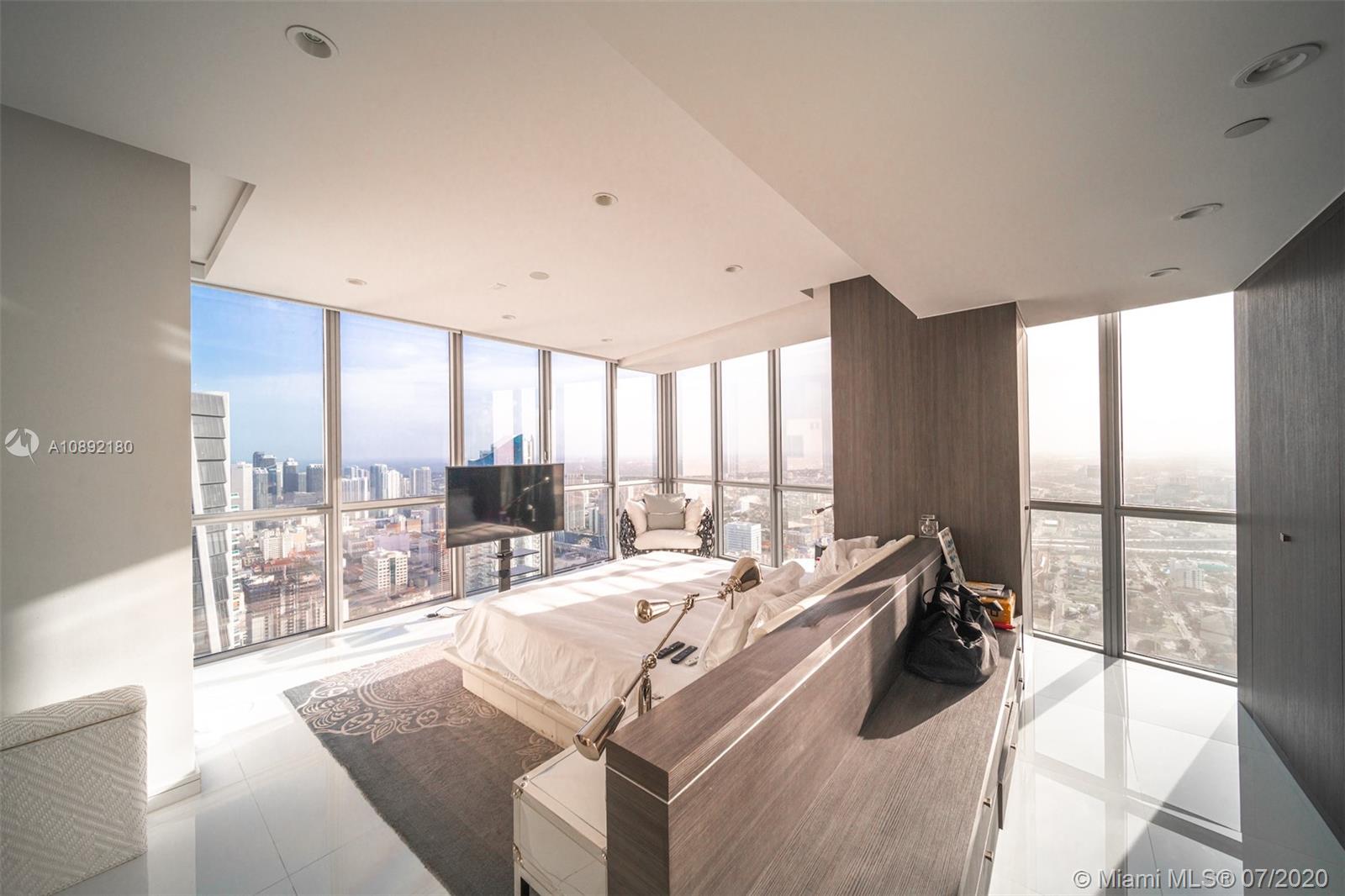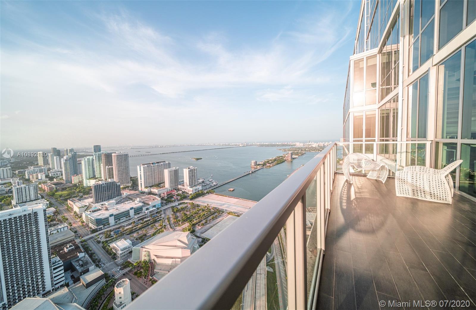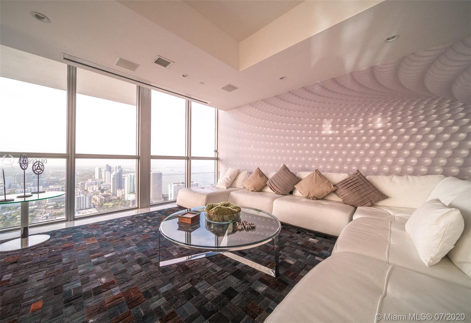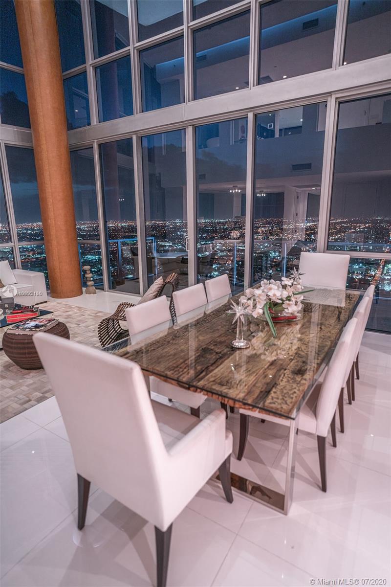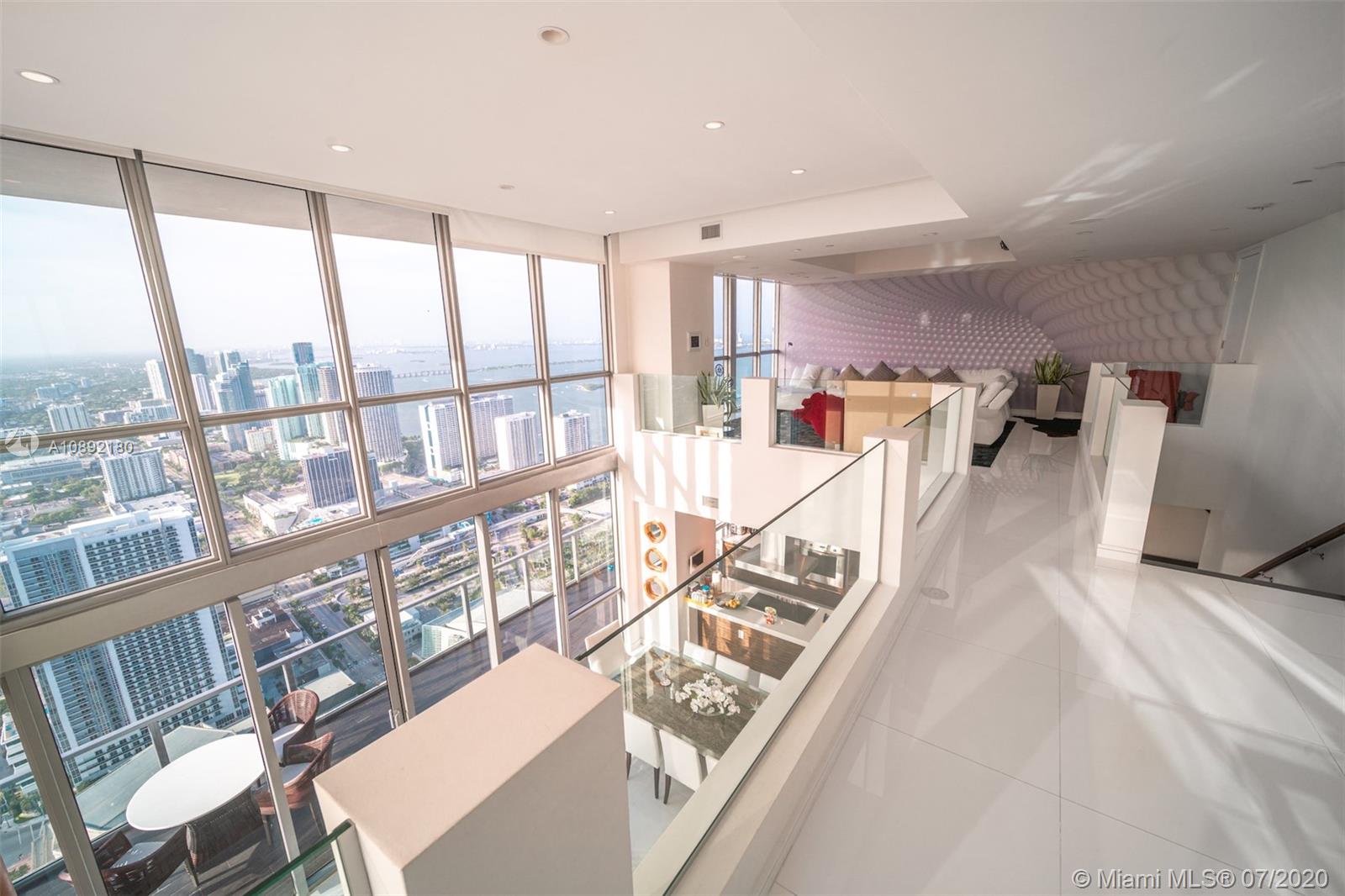 Soaring above downtown from the 63rd floor of the Marquis Miami tower, this magnificent 2-story penthouse captures sweeping 270° views of the city and Biscayne Bay. Two private elevators lead to the 2-bedroom, 2.5-bath condominium featuring 20’ ceilings and floor-to-ceiling window walls. More than 3,000 sq ft of open-plan living space features curated contemporary detail, chef-caliber kitchen with premier stainless steel appliances, a 2nd-floor media room, private view terrace and Crestron Digital System. Residents enjoy the luxury amenities of Marquis Miami, including 24-hour concierge, 2-story spa and fitness studio and 2 pools located moments from the waterfront, Museum Park, the Design District, American Airlines Arena, South Beach and the much-anticipated Miami Worldcenter.
