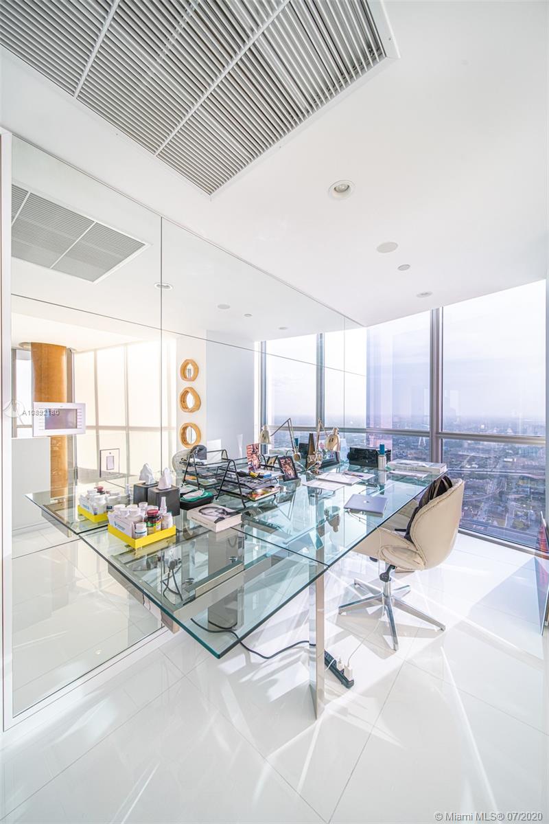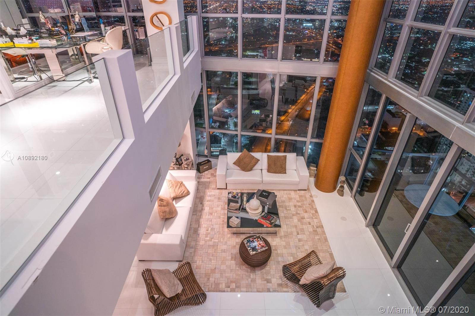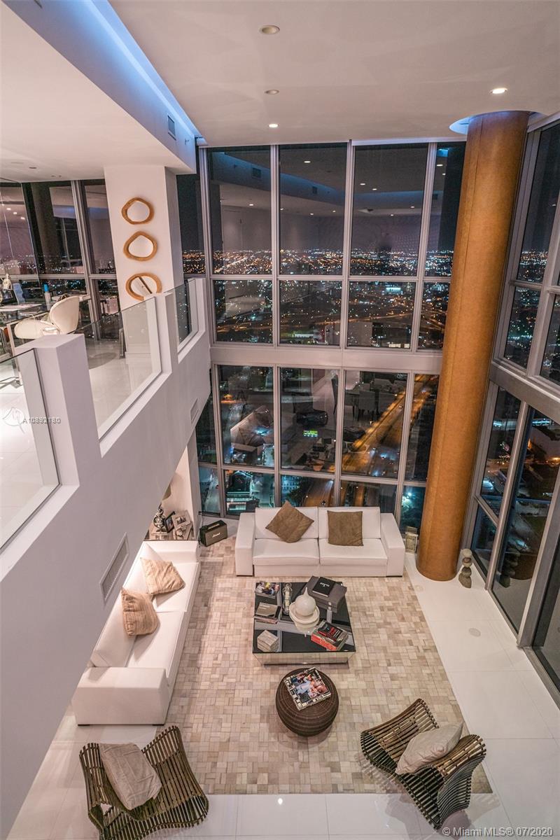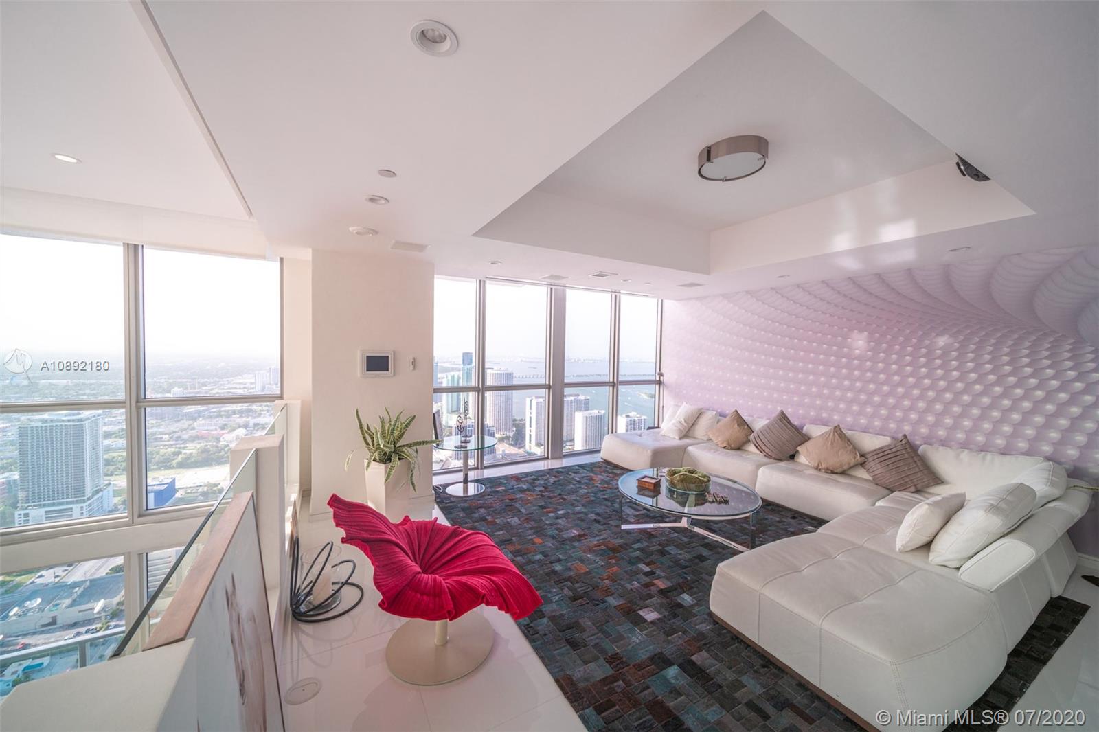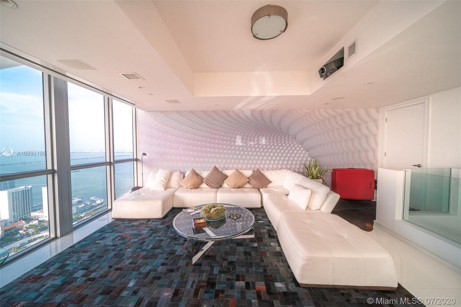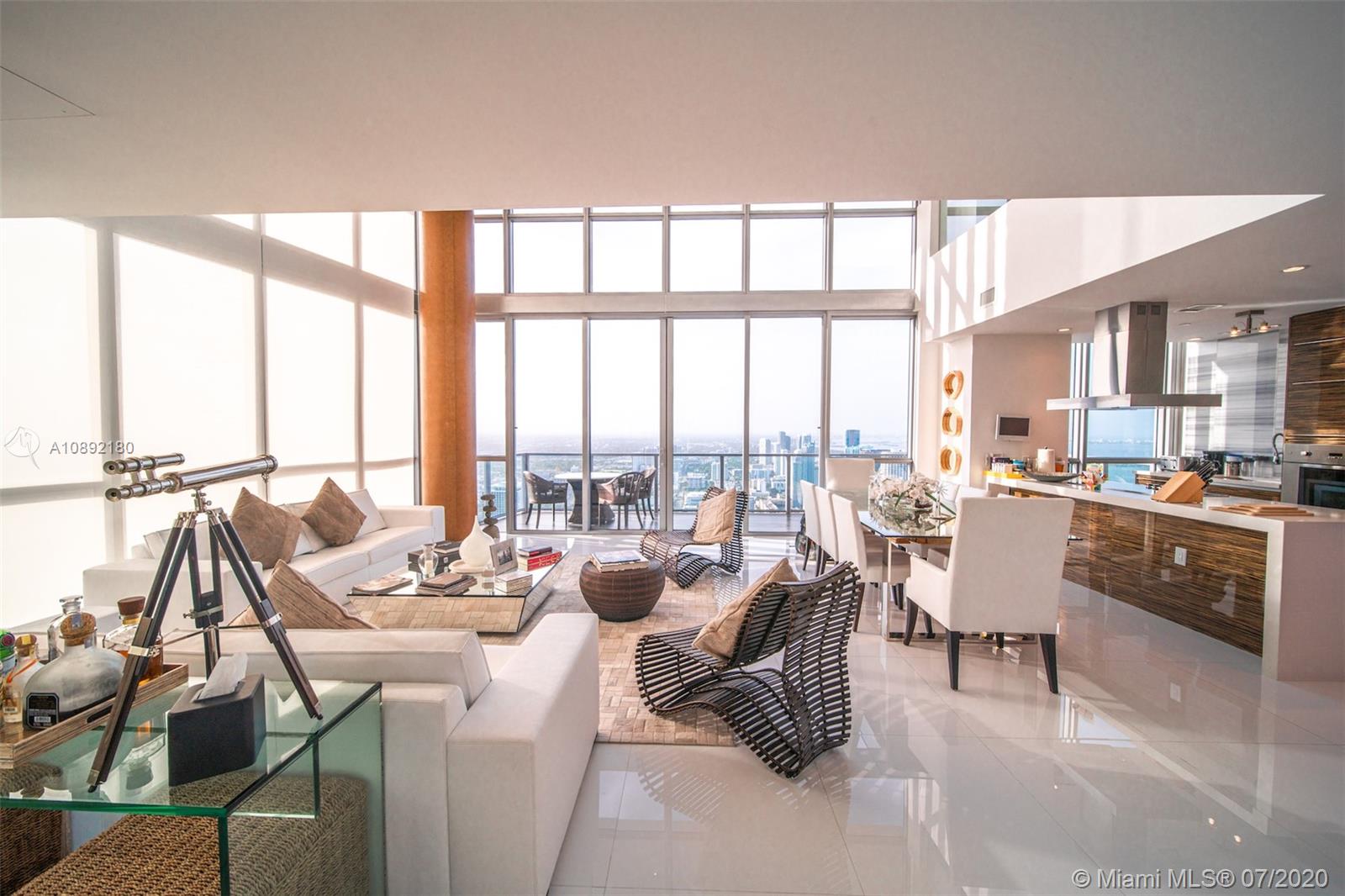 Soaring above downtown from the 63rd floor of the Marquis Miami tower, this magnificent 2-story penthouse captures sweeping 270° views of the city and Biscayne Bay. Two private elevators lead to the 2-bedroom, 2.5-bath condominium featuring 20’ ceilings and floor-to-ceiling window walls. More than 3,000 sq ft of open-plan living space features curated contemporary detail, chef-caliber kitchen with premier stainless steel appliances, a 2nd-floor media room, private view terrace and Crestron Digital System. Residents enjoy the luxury amenities of Marquis Miami, including 24-hour concierge, 2-story spa and fitness studio and 2 pools located moments from the waterfront, Museum Park, the Design District, American Airlines Arena, South Beach and the much-anticipated Miami Worldcenter.