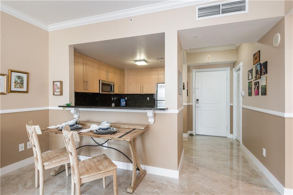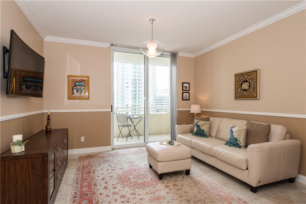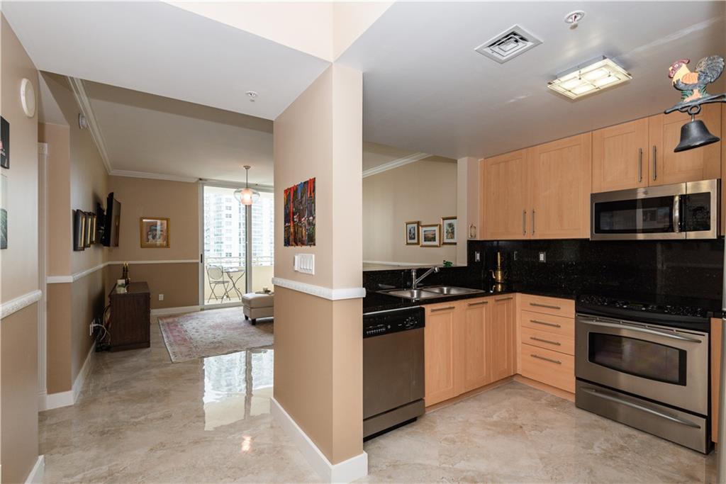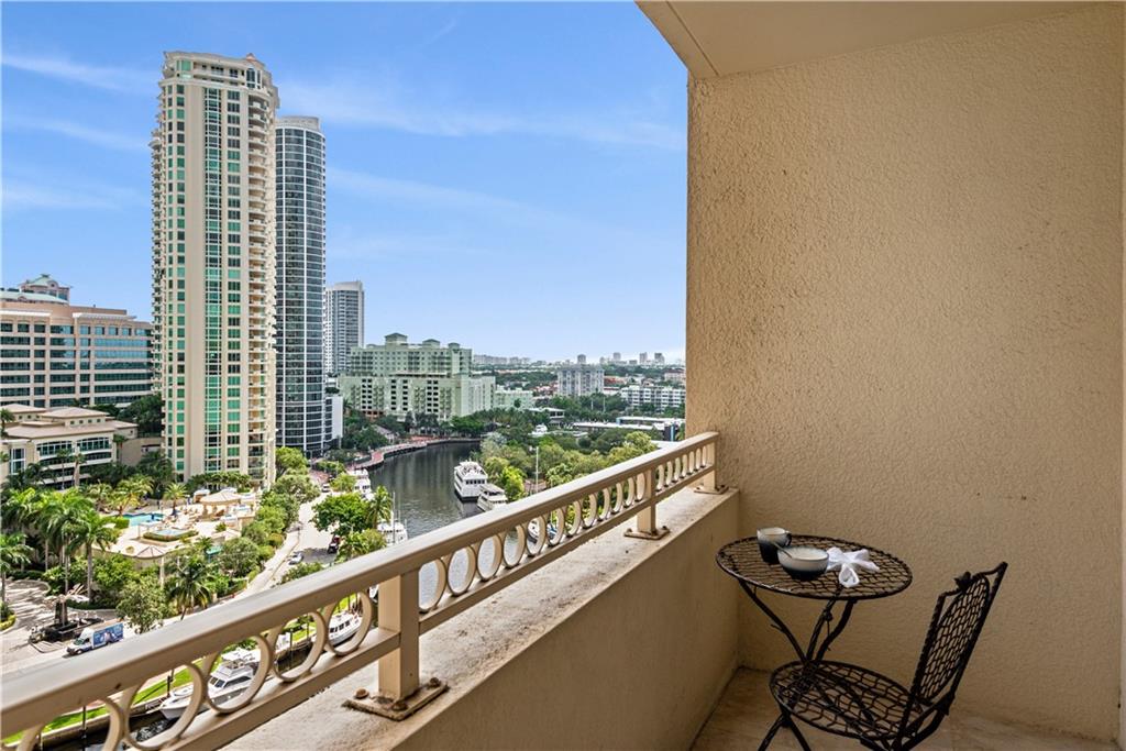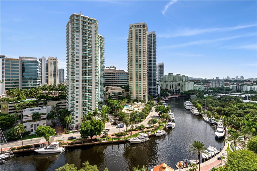 Beautiful, direct river views! Experience the downtown lifestyle with incredible city & river views. This single bedroom residence is located directly along the New River to watch the boats go by and enjoy the Annual Boat Parade from your own private balcony. This residence features oversized, high polish, rectified marble flooring throughout. Owner’s bedroom boasts large walk-in closet. Bathroom has also been completely upgraded with a modern walk-in shower with a clean, modern glass enclosure. Stone countertops & backsplash, Italian shaker style cabinetry & stainless steel appliances in the kitchen. This single bedroom residence has open slider access to a private balcony from the livingroom extending the living space outdoors for morning cofffee or evening cocktails.