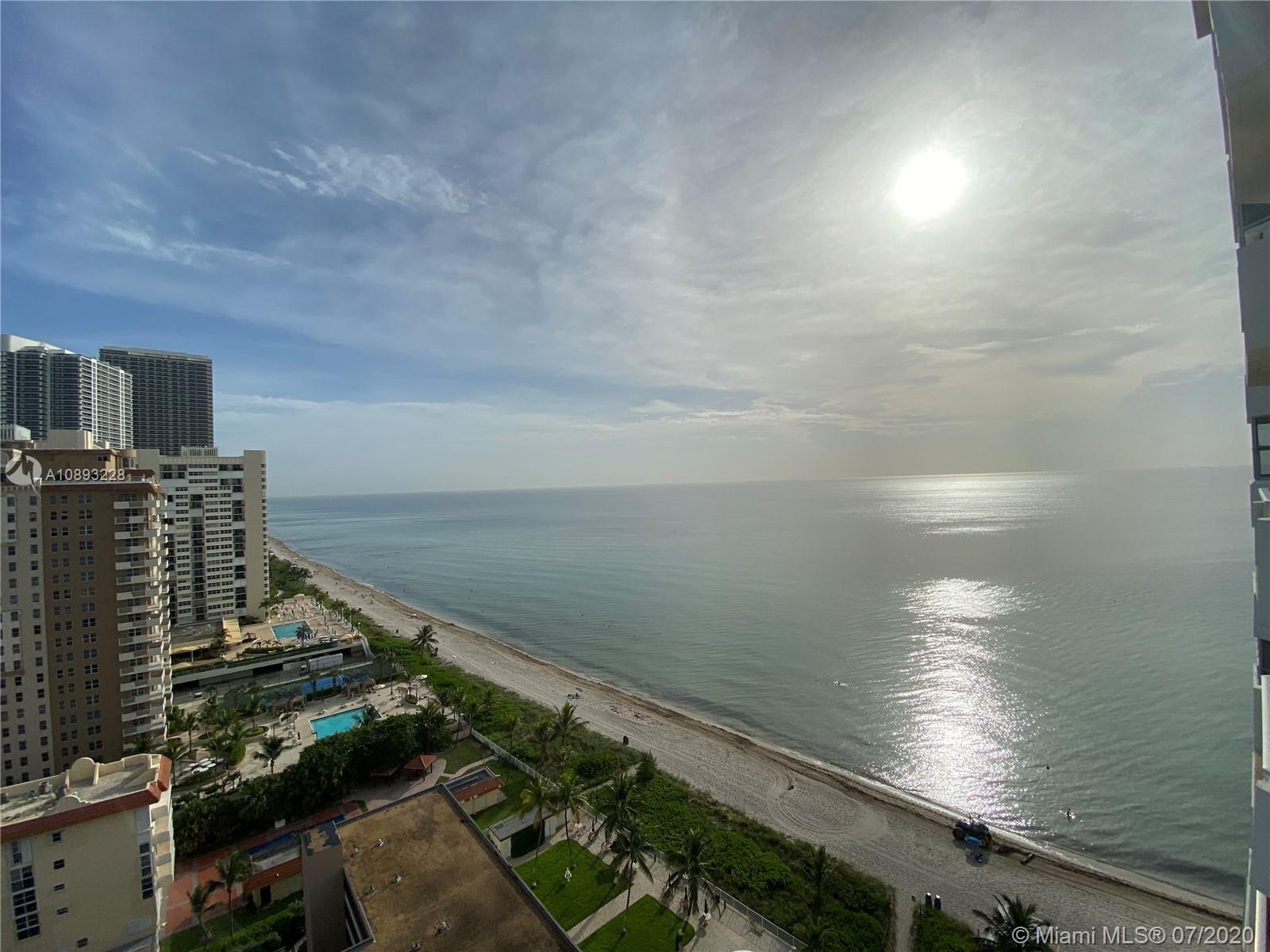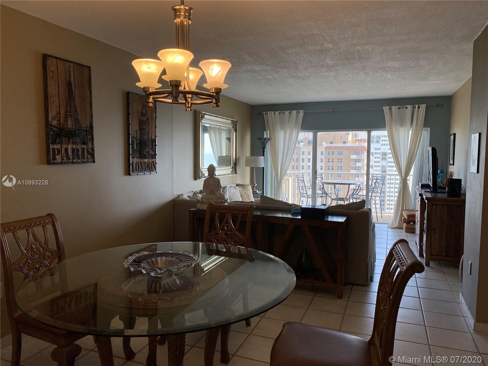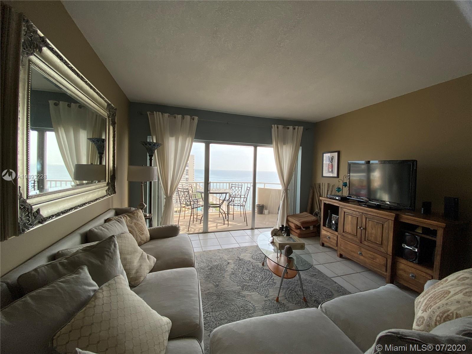 Great amazing view from this 18th floor unit featuring white tile floors throughout, updated kitchen and bathrooms. Owner will consider a trade for a 2 bedroom unit North of the Hemispheres. A/C unit replaced three years ago.