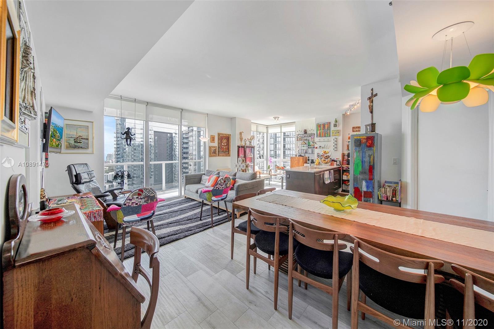 Amazing 2/2 corner high unit with Direct City and River View, extra-wide balcony overlooking Brickell and partial Bay. Split plan bedrooms each with walking closet and bathroom. Very bright unit with the best location across Brickell City Center, Metro Mover, Restaurants, Bars, etc. Short drive to Key Biscayne, Miami Beach, Coconut Grove and Coral Gables. Building has all amenities: Rooftop pool, amazing round shaped pool resembling the building architecture, gym pool, spa, sauna, steam room, movie theater, conference / party rooms. 1 assigned covered parking.