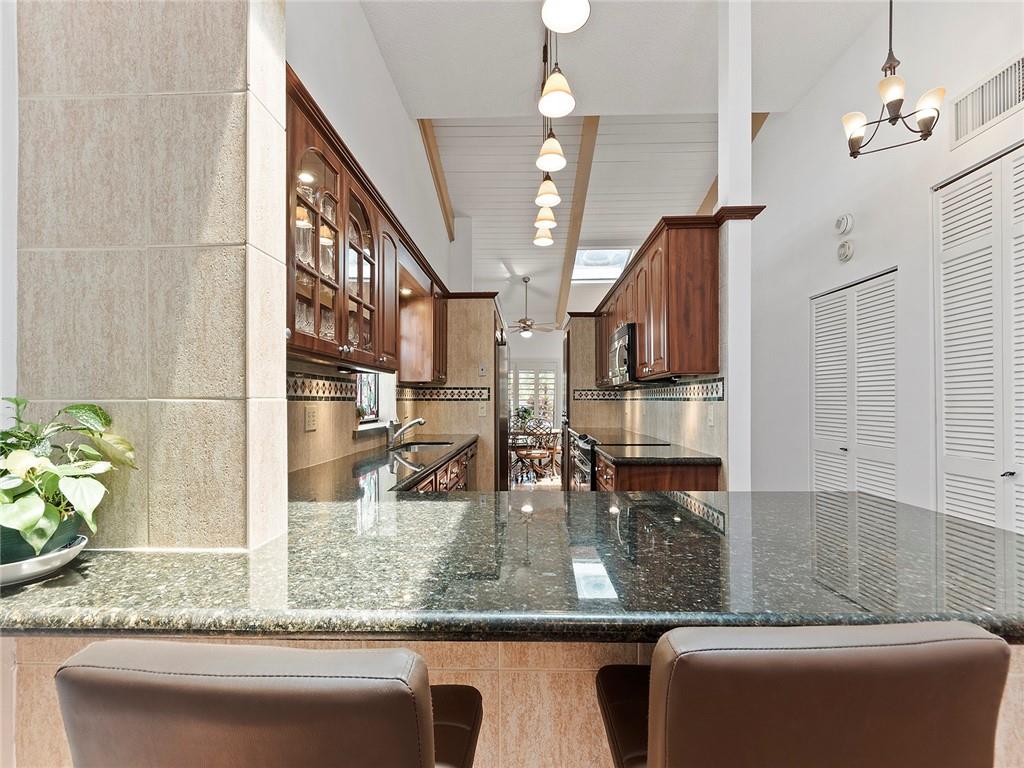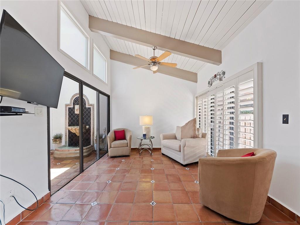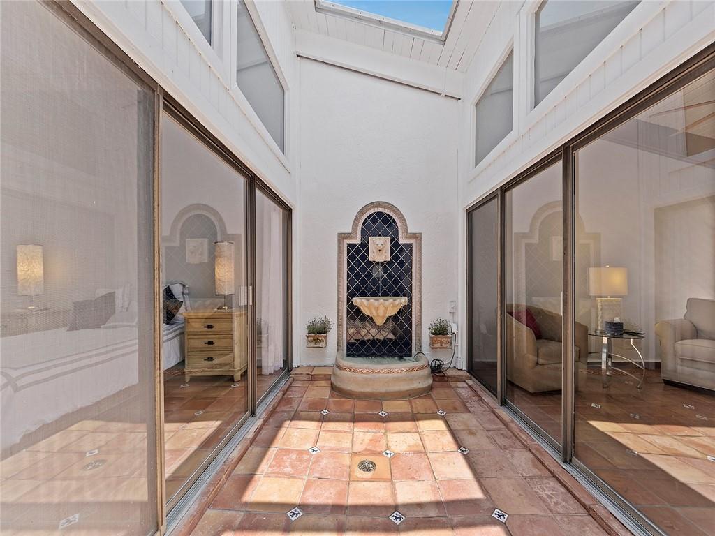 Sought after Three Islands location- This freshly painted 2/2 corner villa is move in perfect incredible natural light enters every room. Split bedrooms each with a designated bathroom. Timeless Mexican Tile throughout. Very large rooms & beautiful high vaulted ceilings. Master bedroom & Family room open to atrium with gorgeous fountain. Extra large Patio perfect for enjoying outdoor living. Upgrades include updated kitchen, under cabinet lighting, crown molding on cabinets. SS appliances & granite counters .Wine Cooler. CHECK OUT 3D VIRTUAL TOUR!! Accordion shutters-MAINTENANCE INCLUDES BUILDING EXTERIOR, CABLE, WATER, LAWN, TENNIS COURTS, POOL, & SAUNA. 2 PARKING SPACES