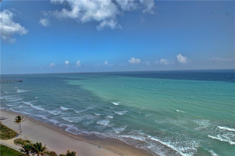 This stunning direct oceanfront residence is bright & spacious w-1,978 sf of sumptuous living & entertaining space. Offering soaring volume ceilings w-walls of glass, this airy residence boasts breathtaking direct ocean & partial city views. Enjoy beautiful aqua blue ocean views & ocean breezes on a large balcony spanning the entire residence. With 2 split bedrooms, a private den/office or 3rd bedroom, 2.5 bathrooms, gorgeous wooden floors, new white paint throughout & new bedrm carpeting, it's the perfect environment for those seeking a piece of paradise. The ocean view kitchen offers granite countertops, double oven & pantry. Enjoy your morning coffee or breakfast in your eat in ocean front kitchen. We encourage you to view this new listing quickly as it's priced to sell at $899,000.