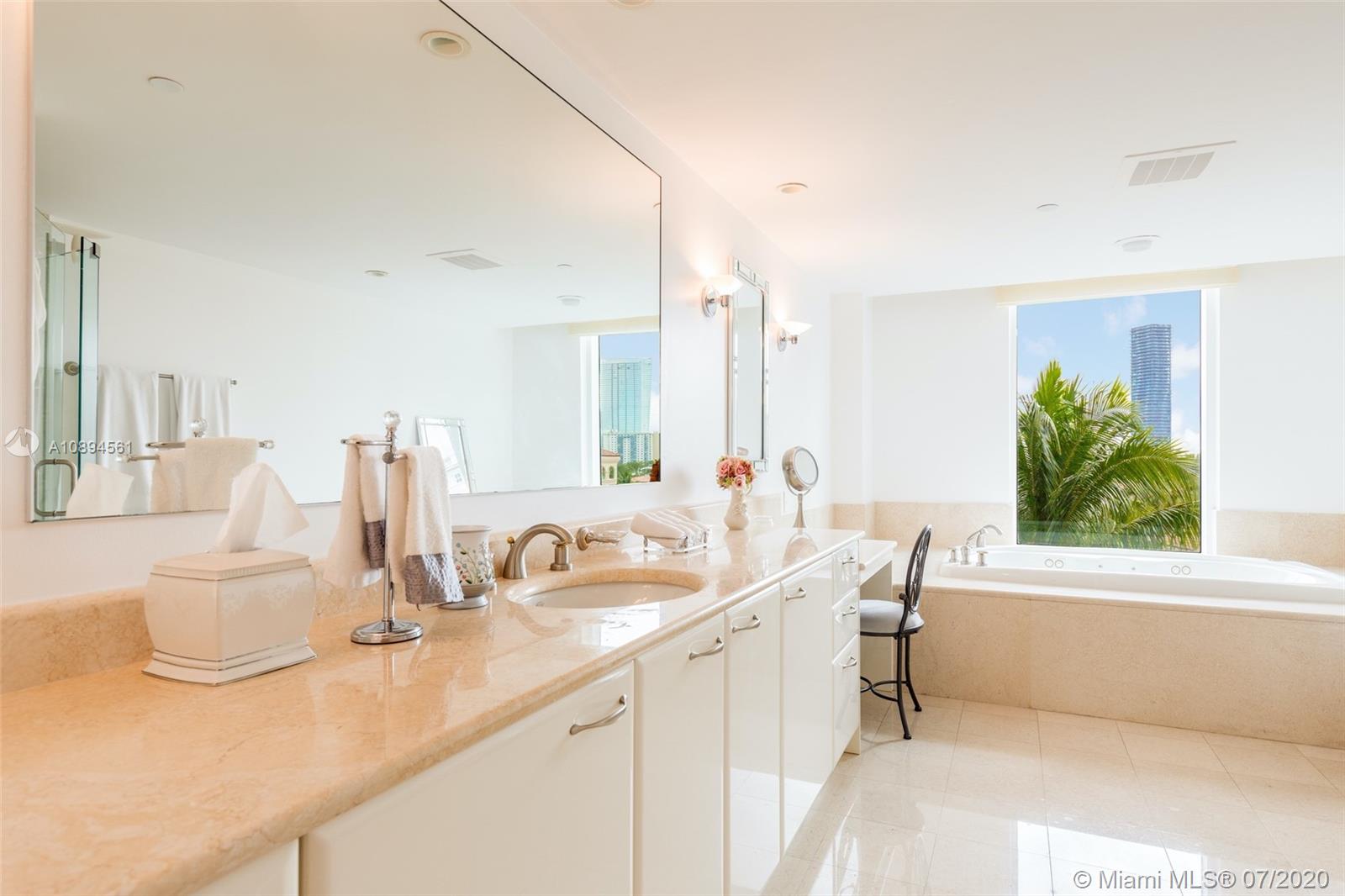 Live in Aventura's most exclusive residences: Porto Vita, a luxurious resort style community nestled between Turnberry Golf Resort & the Intracoastal waterway. Residence #602 in the North Tower, a low floor 3,374 SF flow thru unit, features a private foyer & boasts 3BR/5+1BA + nanny quarters, with garden & golf course views. Spacious living areas & terraces on both sides are great for entertaining. Open gourmet kitchen, marble floors, & separate laundry room. Oversized master suite w/walk in closet. Porto Vita's Villa Grande Club & Spa, the private clubhouse w/resort style pool for residents, has food service, fitness center, ornate 2-story spa, sauna/steam, hair salon, tennis, private marina, & 3 private restaurants.