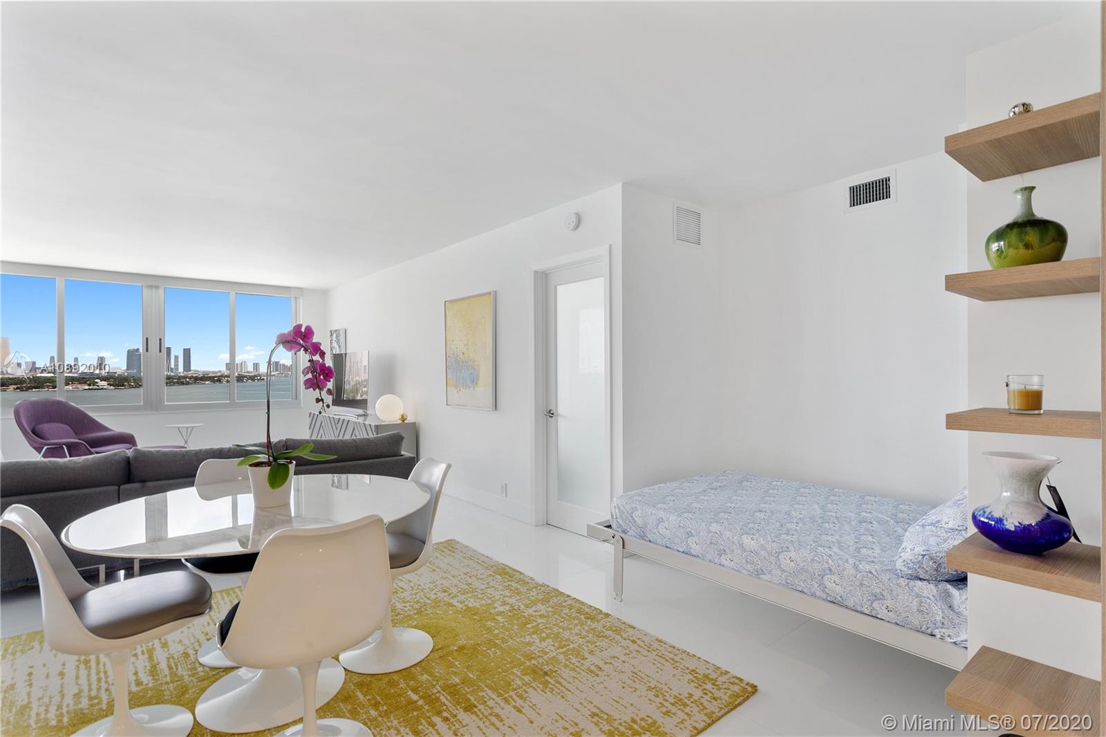 Serenity and endless water views are the words that come to mind when you enter this exquisitely and meticulously designed gut renovated 1 bed + guest area 2 full bath pied-a-terre in the heart of South Beach. Features include glass white tile, new electric and A/C with Nest thermostat, built in hidden murphy bed system for guests, pristine kitchen with Miele appliances, washer/dryer and impact windows. The corner residences boasts the most panoramic views of the open bay from a large picture window with no balcony obstructions. Mirador is a full service building offering top amenities like a state of the art gym, party room, convenience store, 24 hour security and valet, a gorgeous pool deck etc. Sale includes 1 prime covered parking spot. Assessment has been paid in full by Seller.